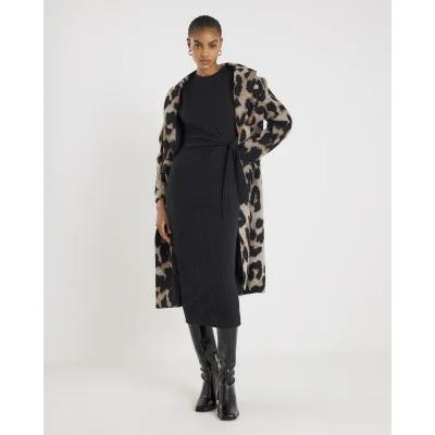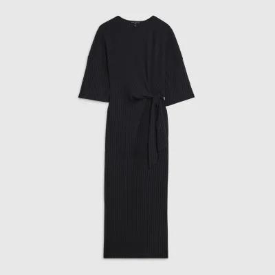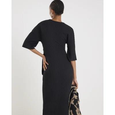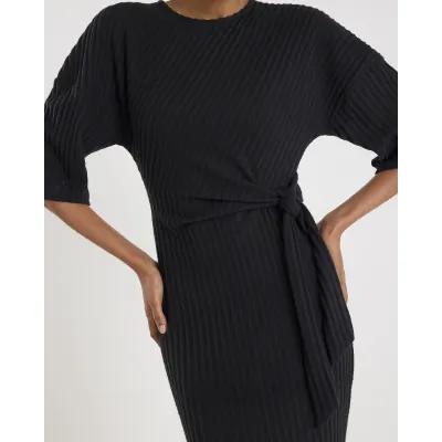 Black Short Sleeve Ribbed Cosy Midi Dress
