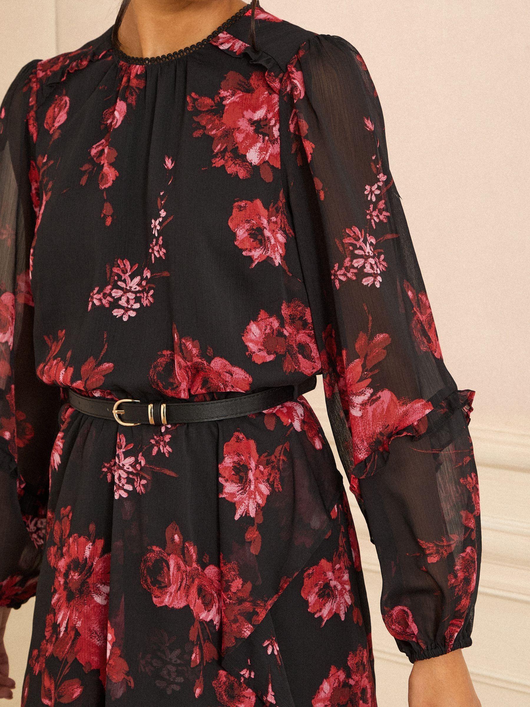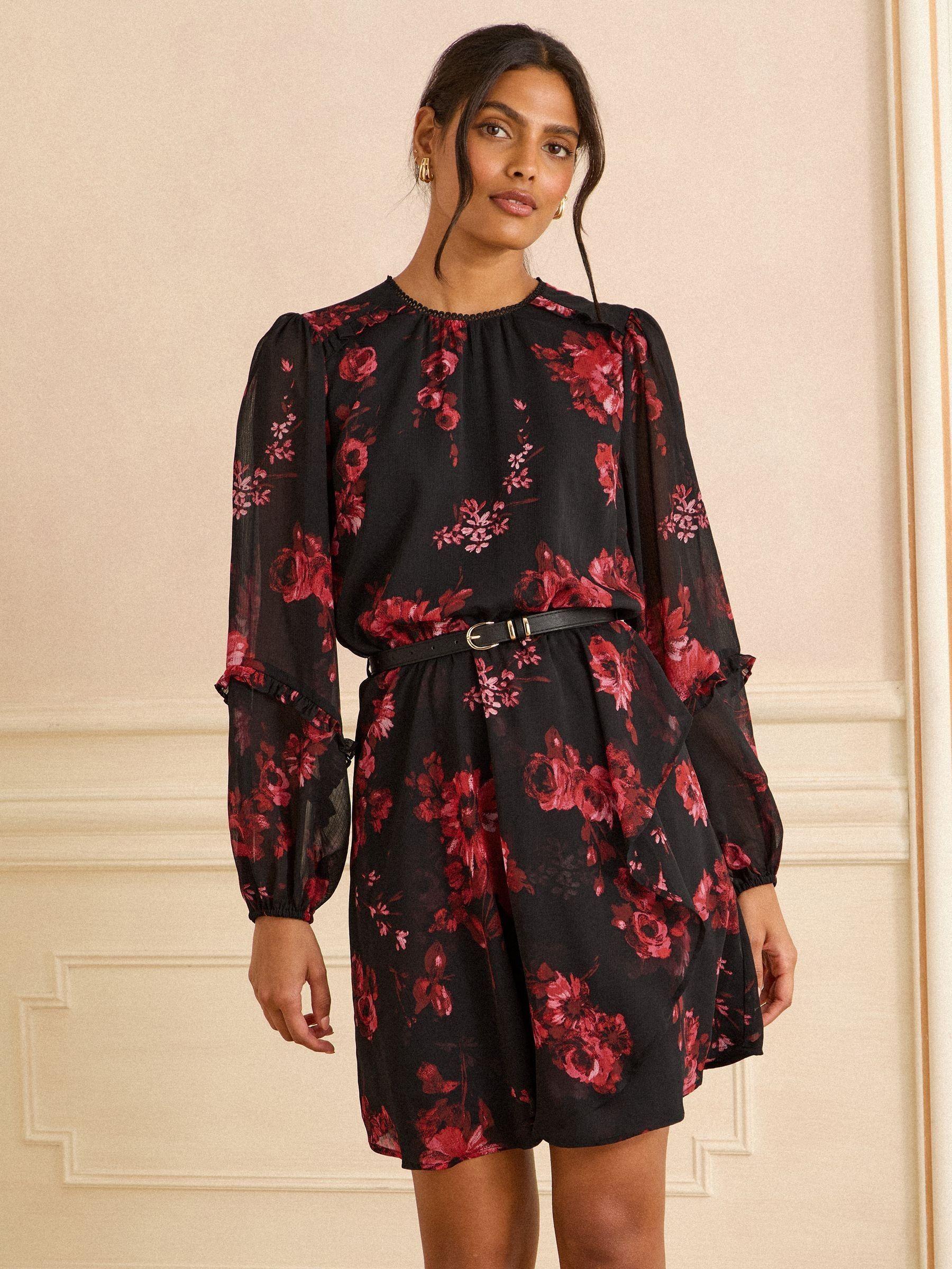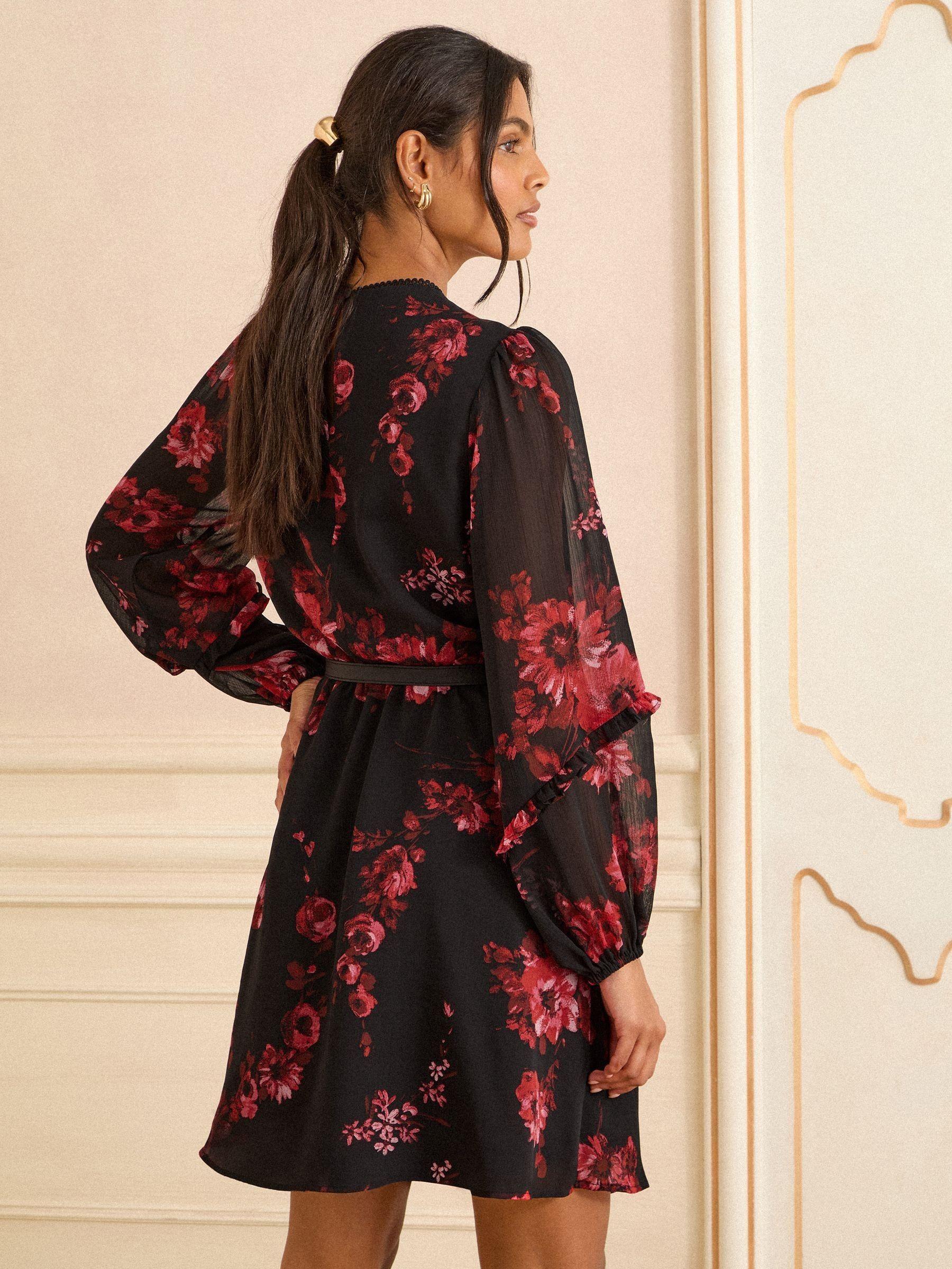 Love & Roses Red Floral Ruffle Wrap Mini Dress
