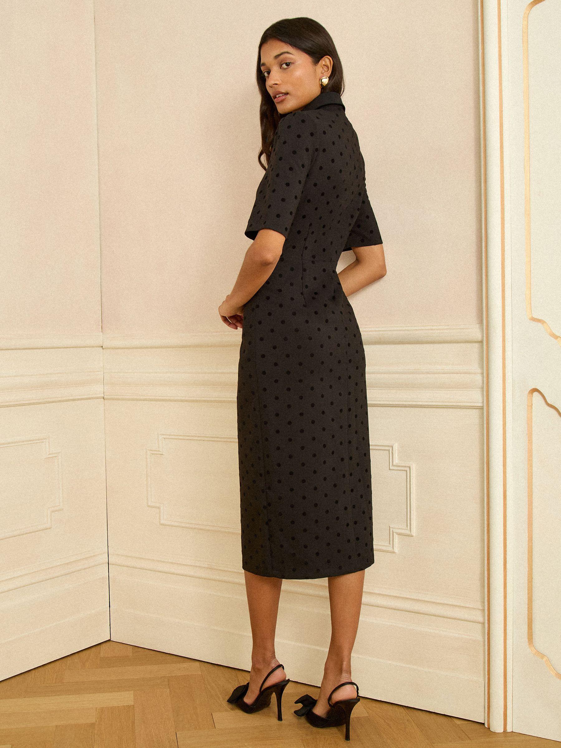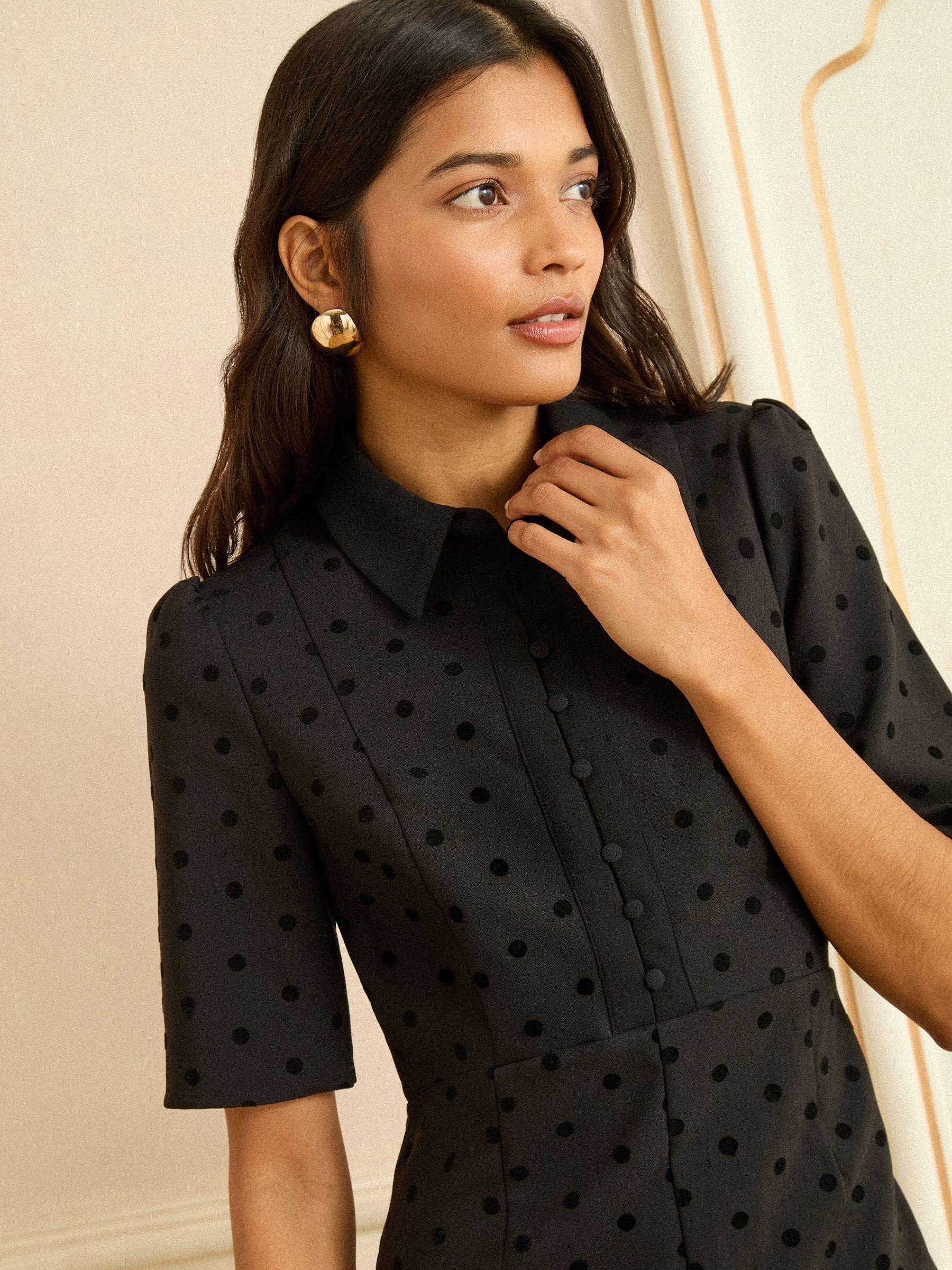 Love & Roses Black Flock Spot Short Sleeve Midi Dress