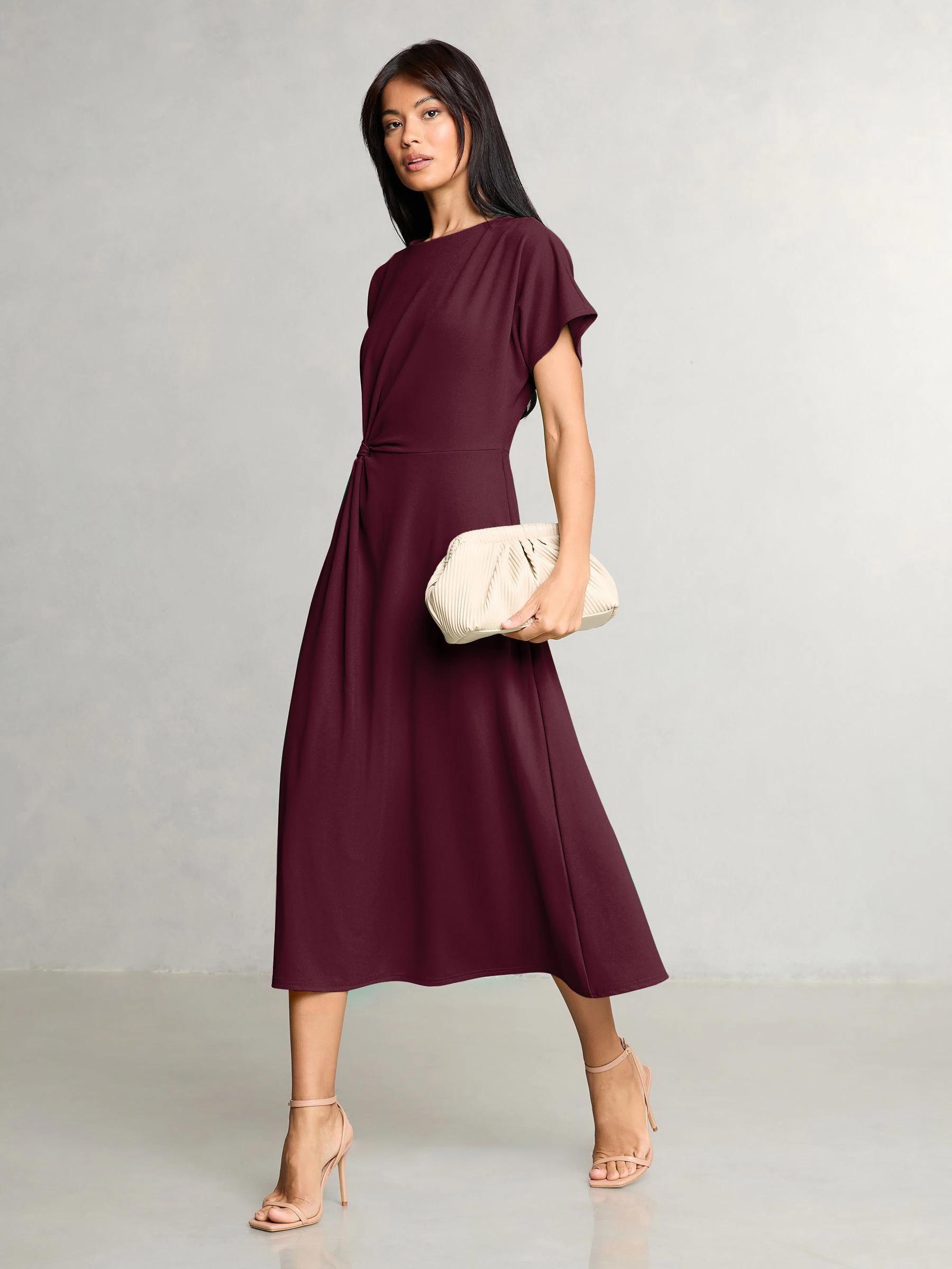 Lipsy Burgundy Red Petite Knot Side Midi Dress
