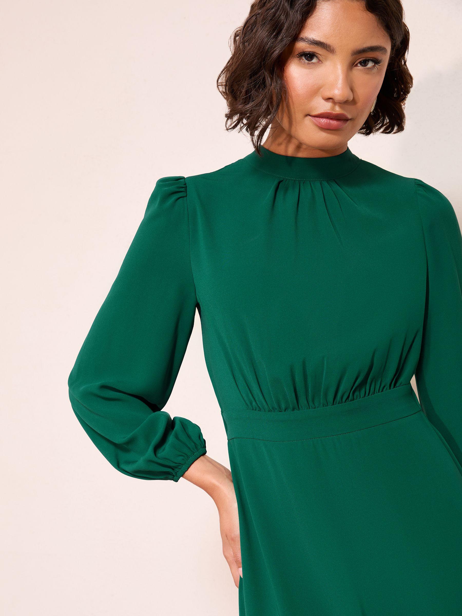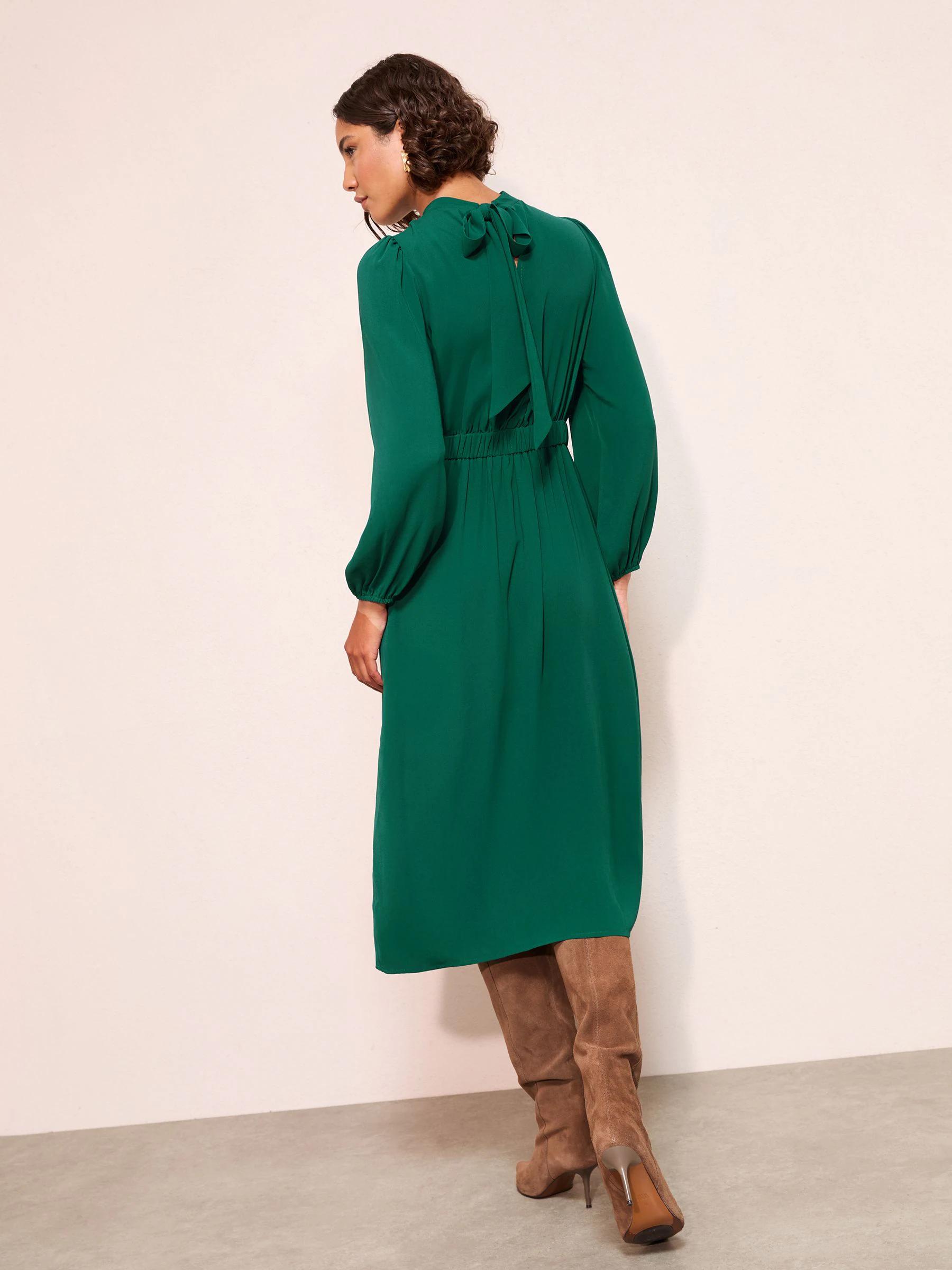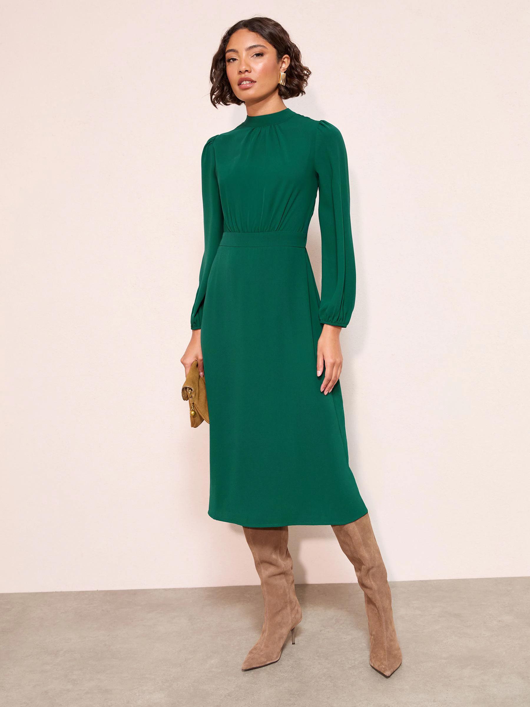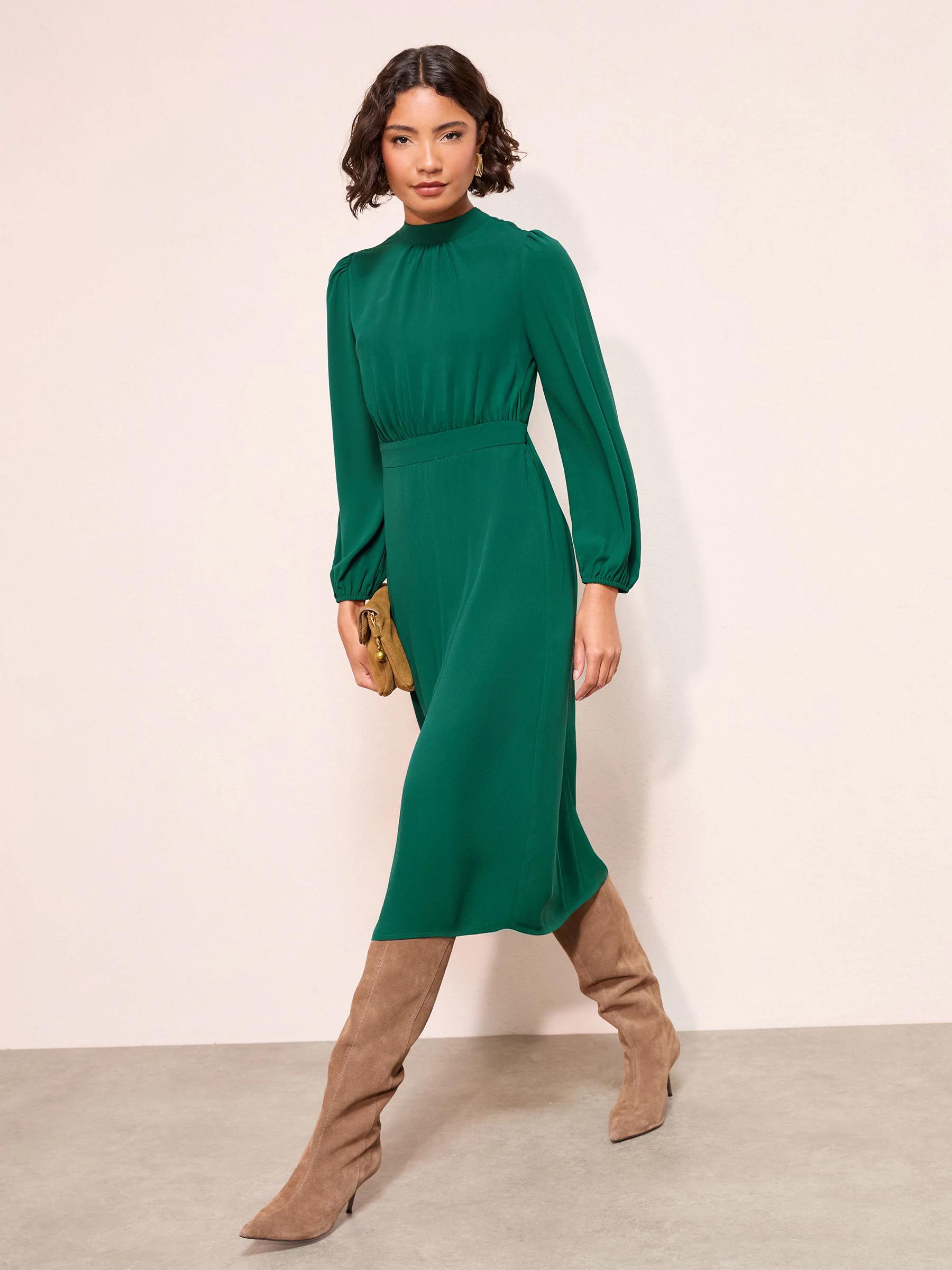 Friends Like These Green High Neck Long Sleeve Midi Dress with Bow Detailing