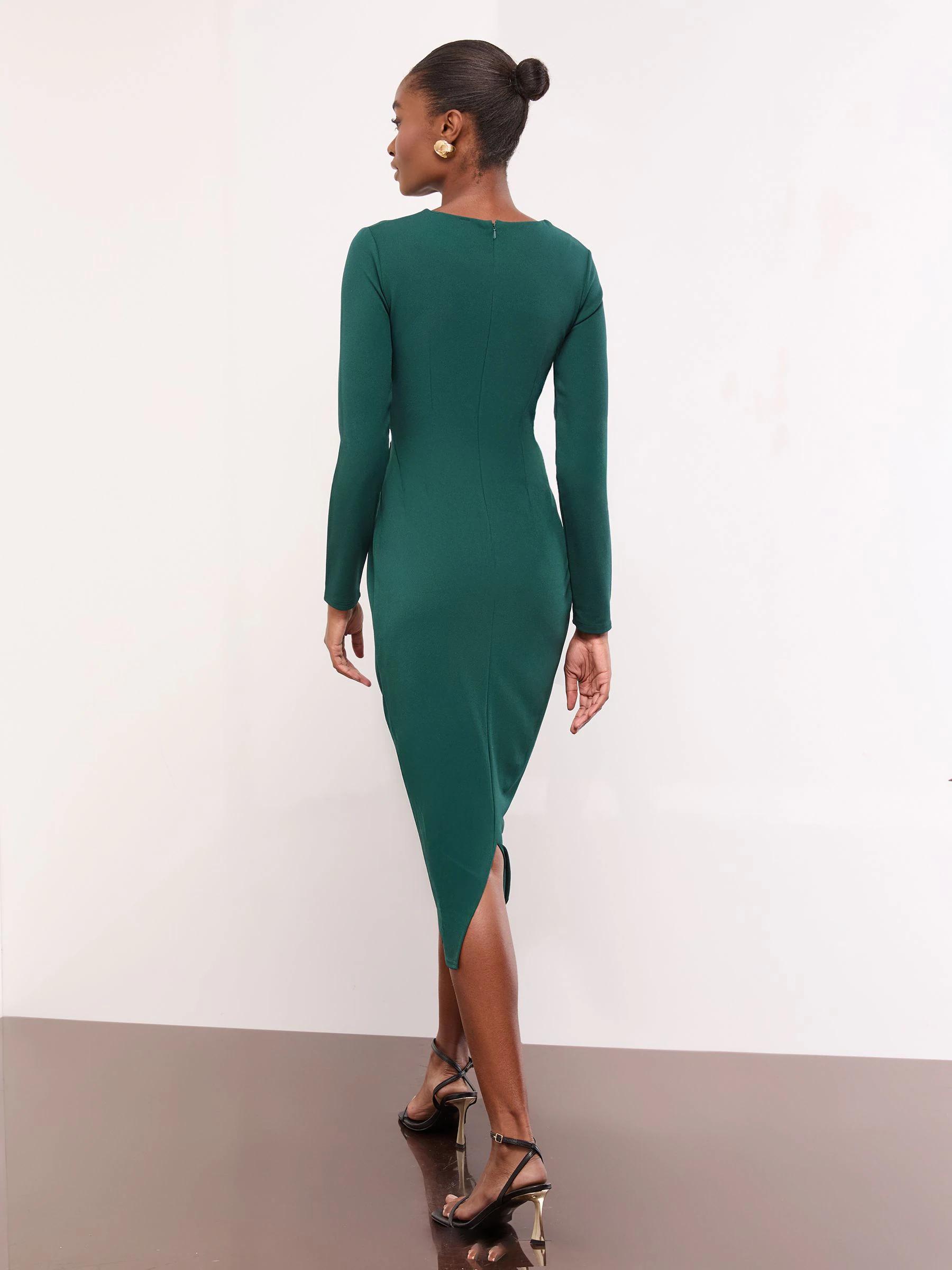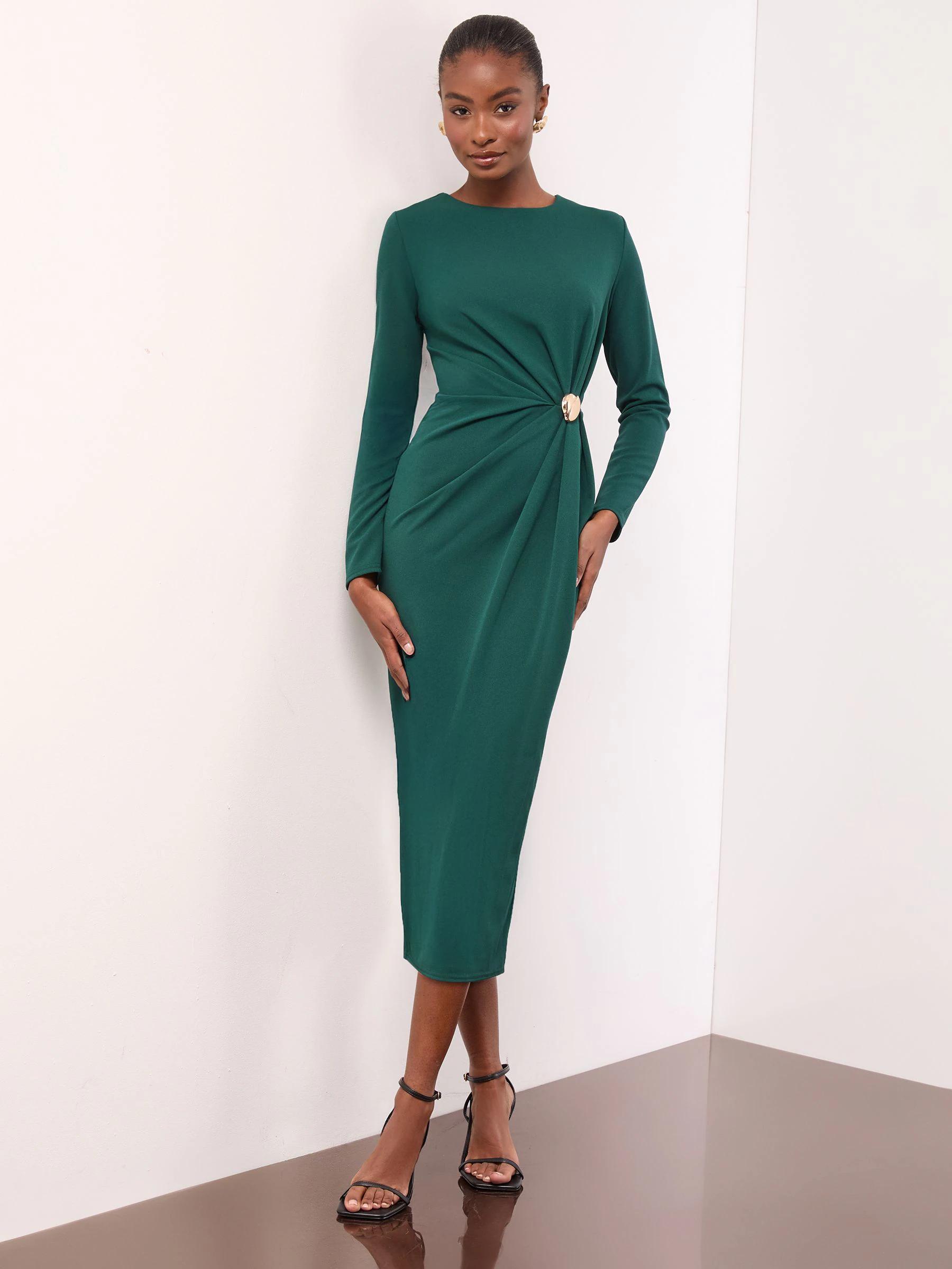 Lipsy Teal Blue Petite Long Sleeve Hardware Detail Bodycon Midi Dress