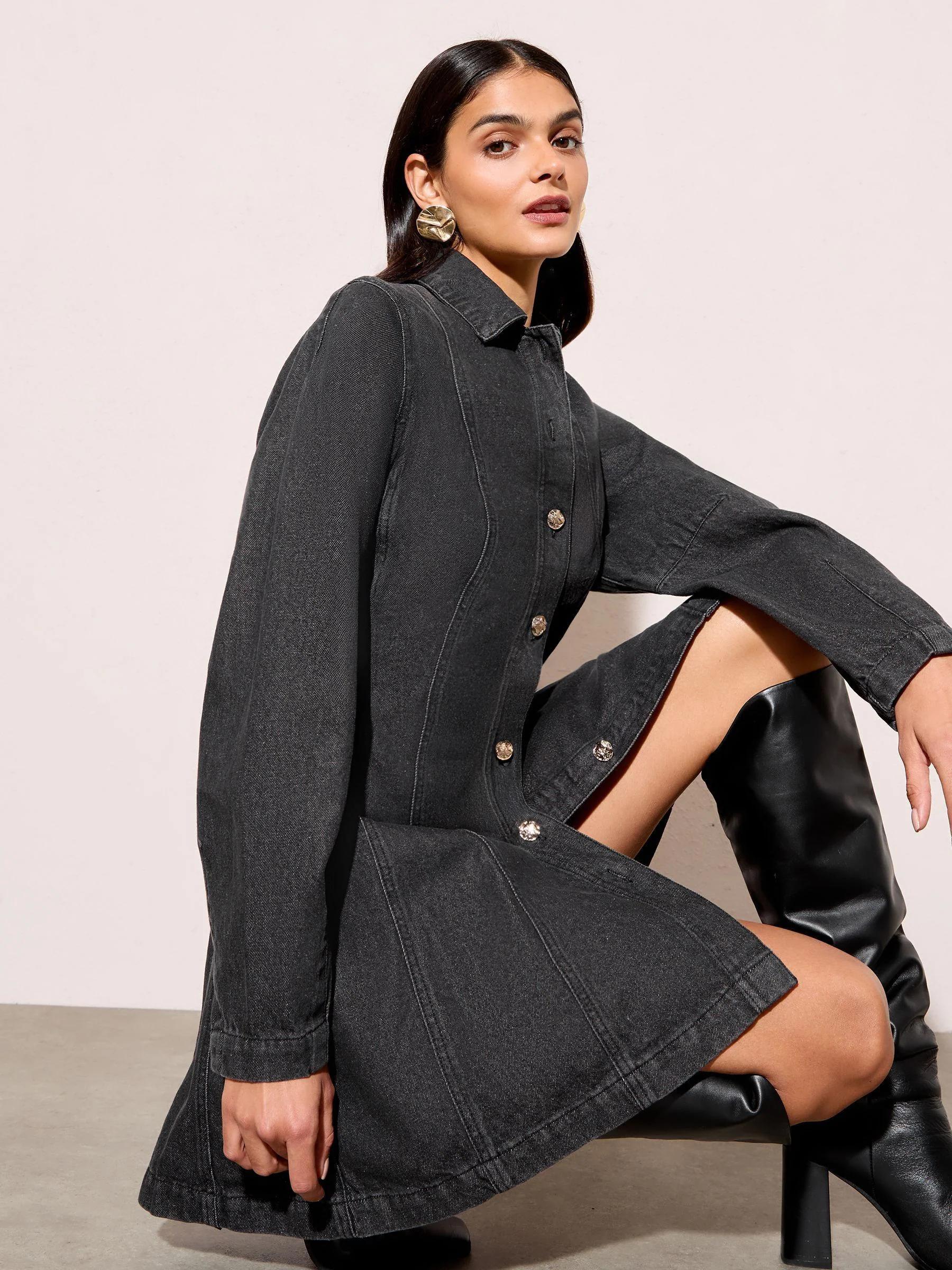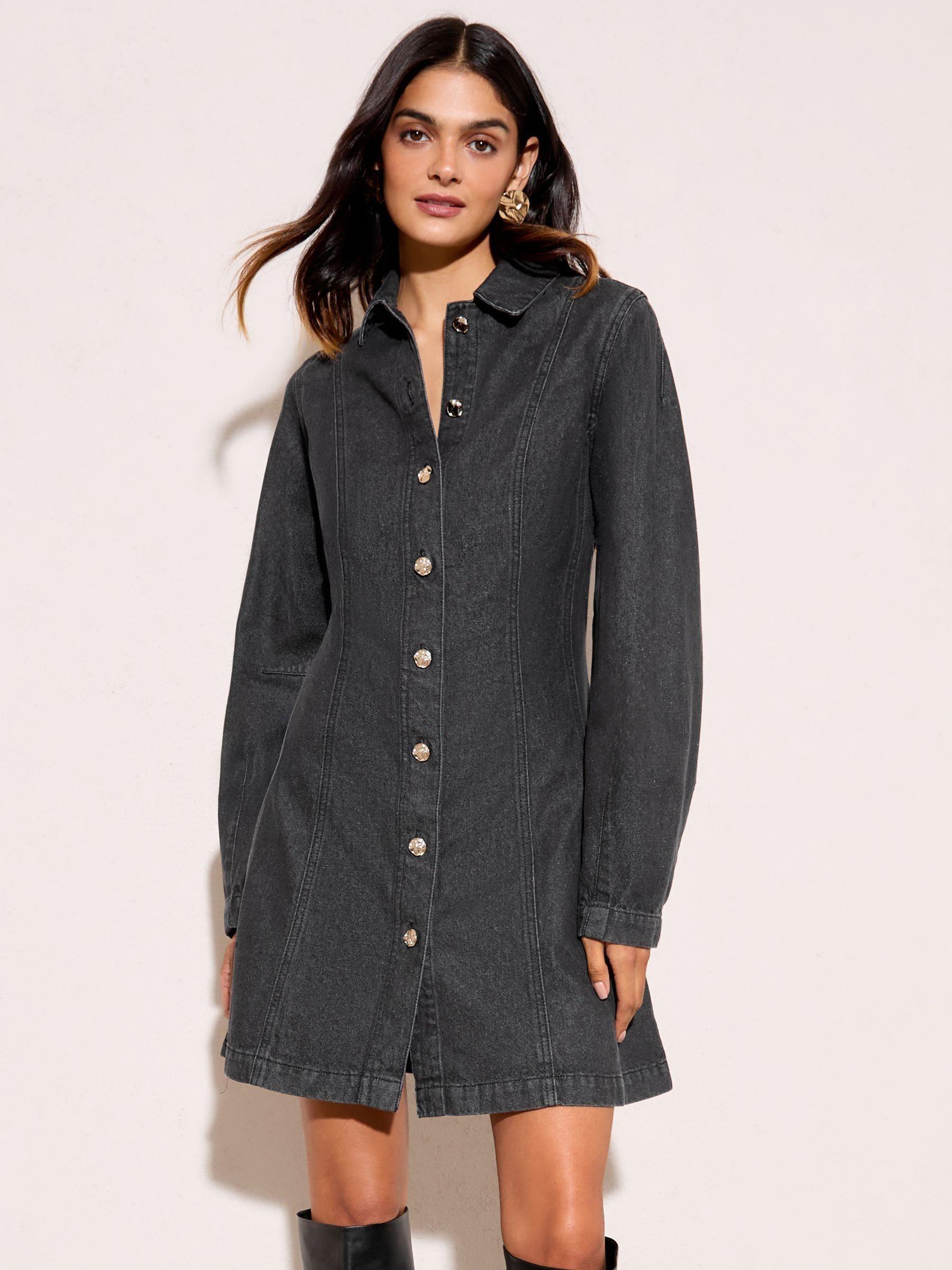 Friends Like These Washed Black Denim Shirt Mini Dress