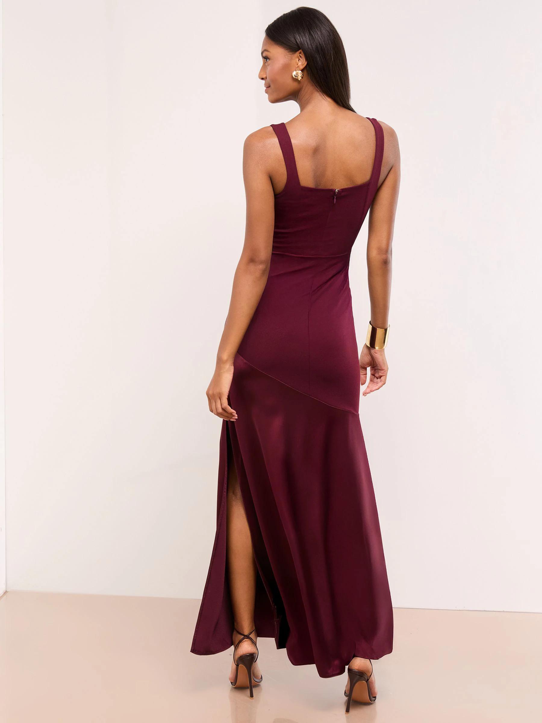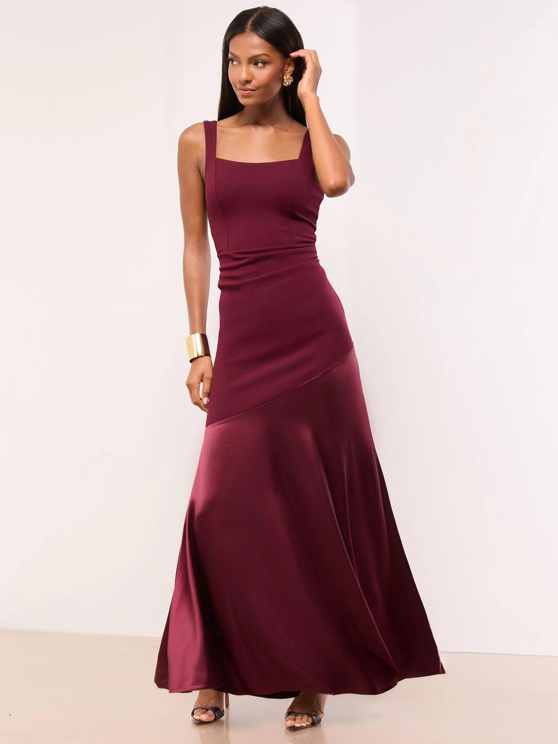 Lipsy Burgundy Red Satin Mix Structured Fishtail Bridesmaid Maxi Dress