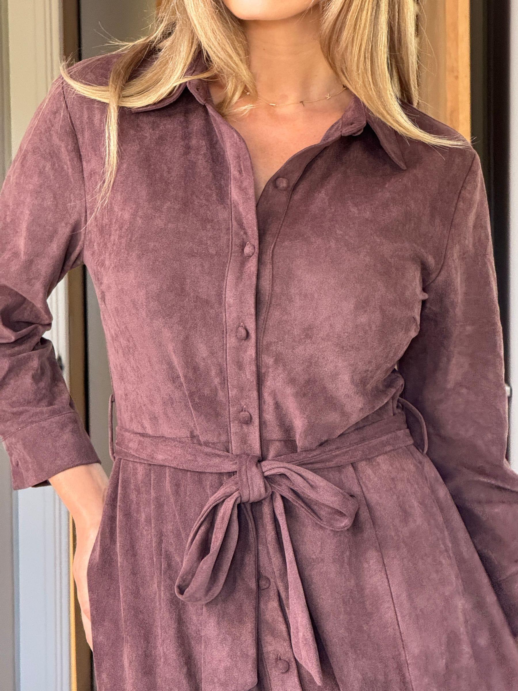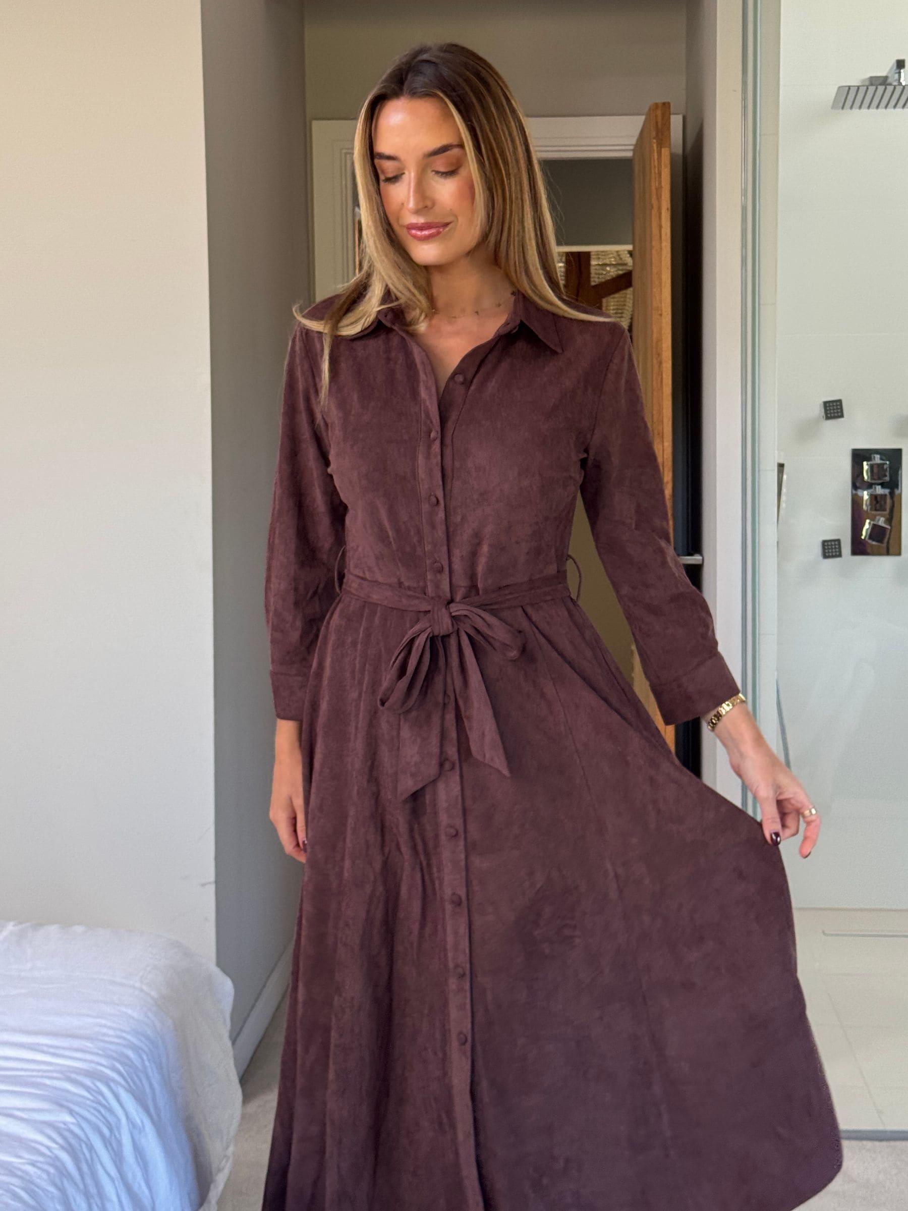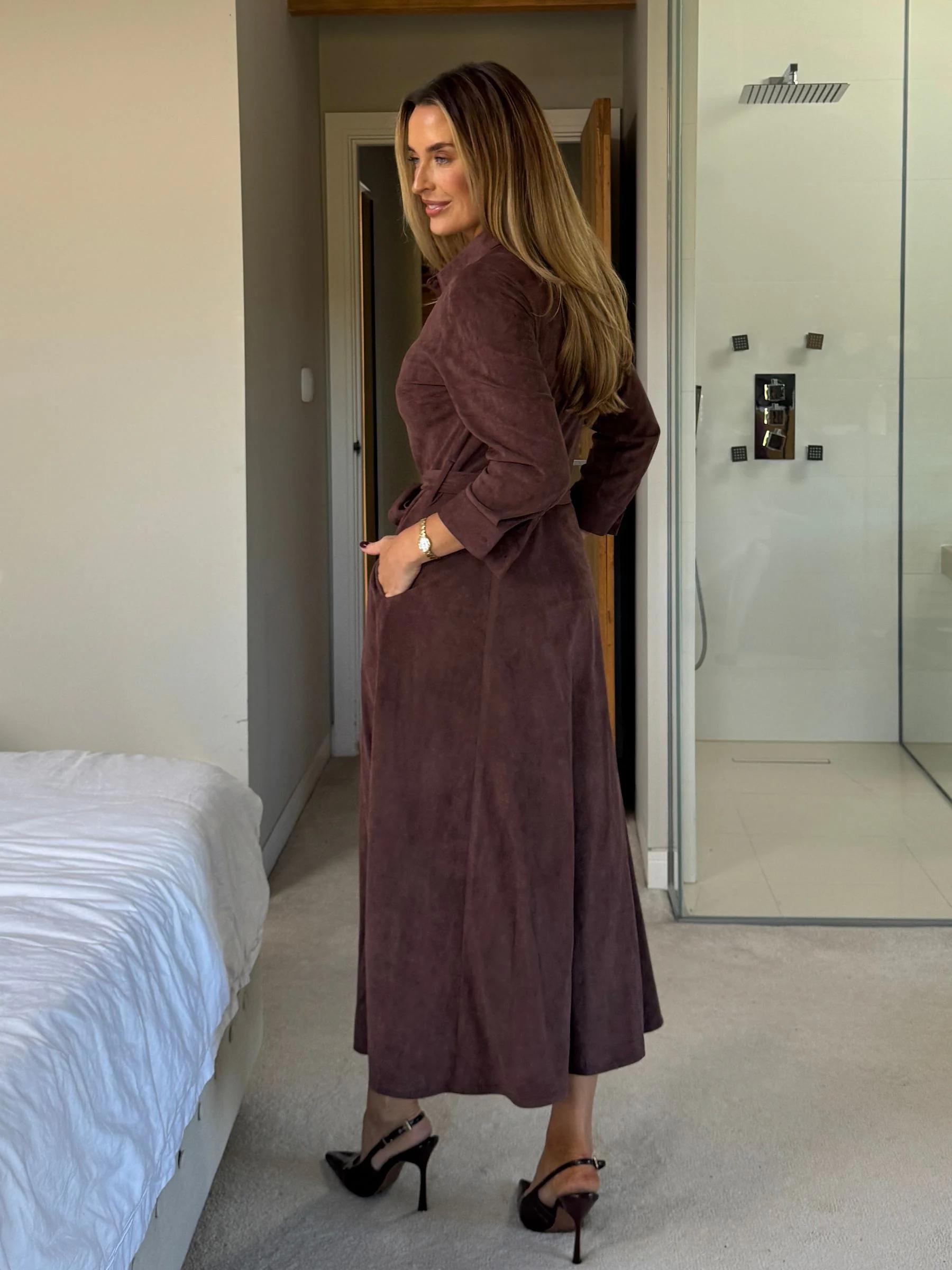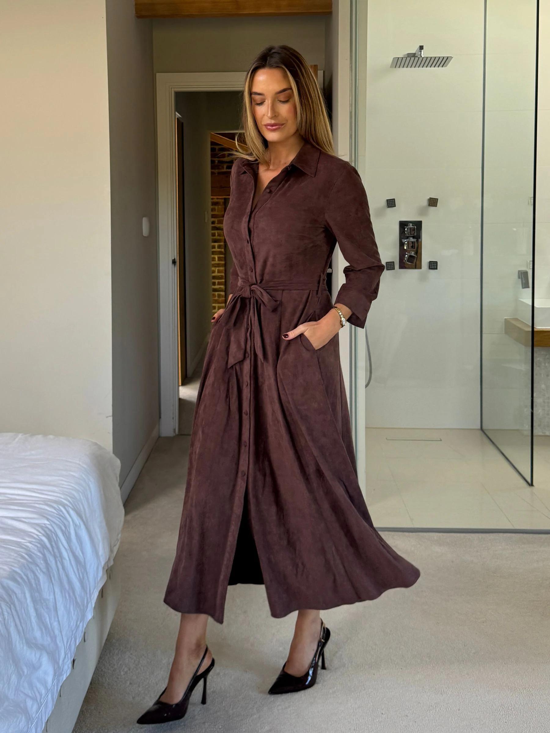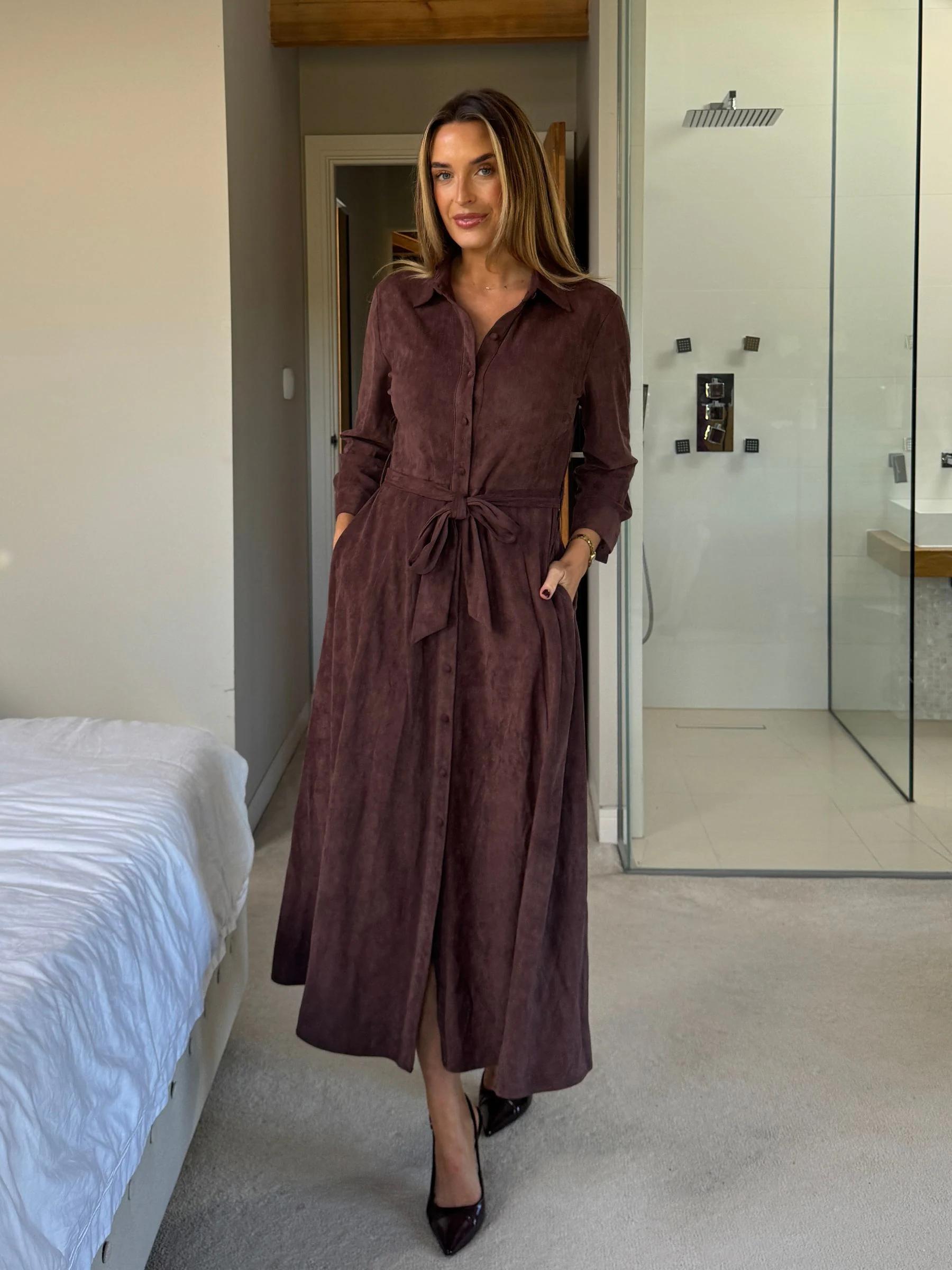 Girl In Mind Brown Angela Long Sleeve Suedette Maxi Shirt Dress