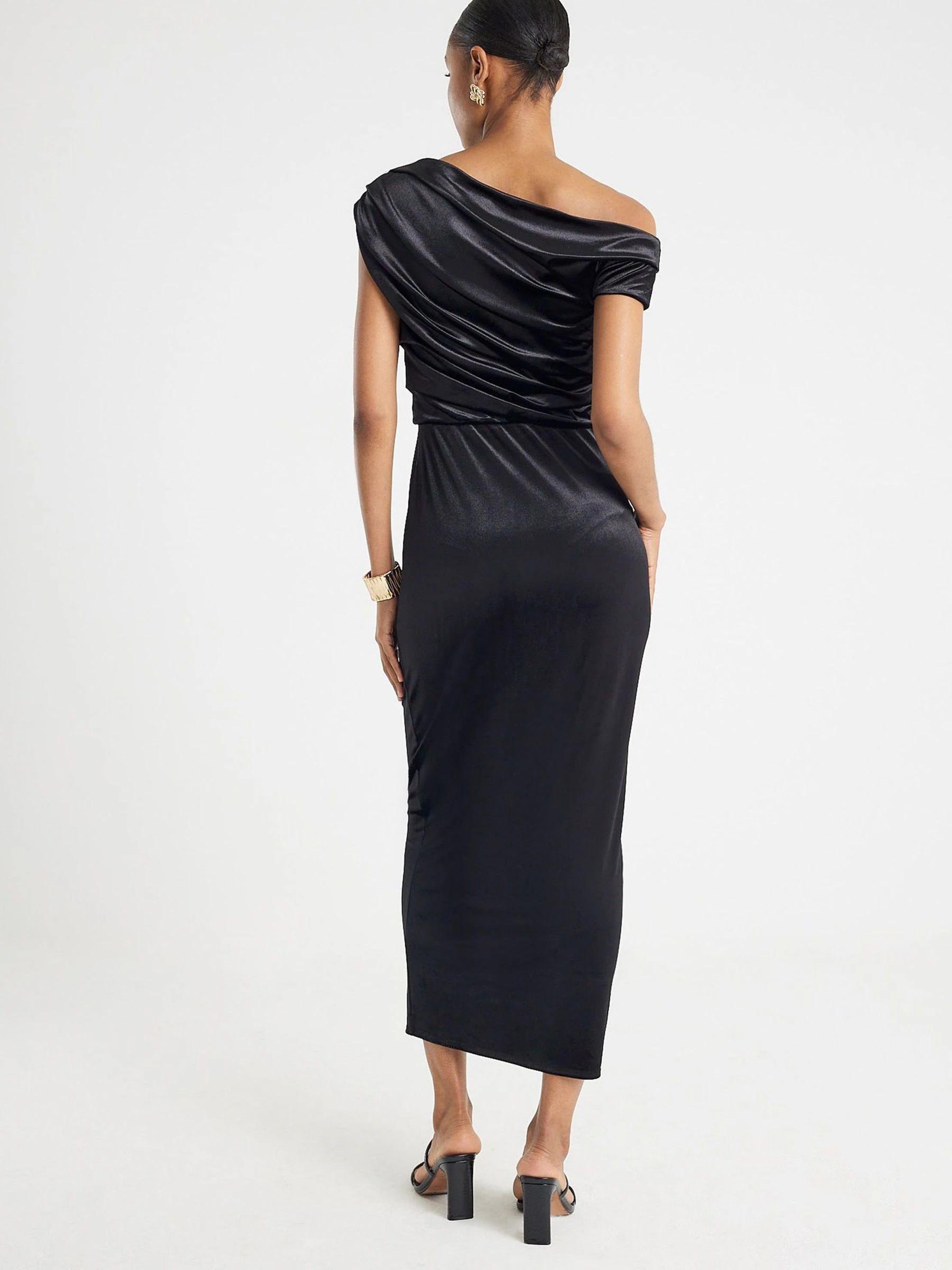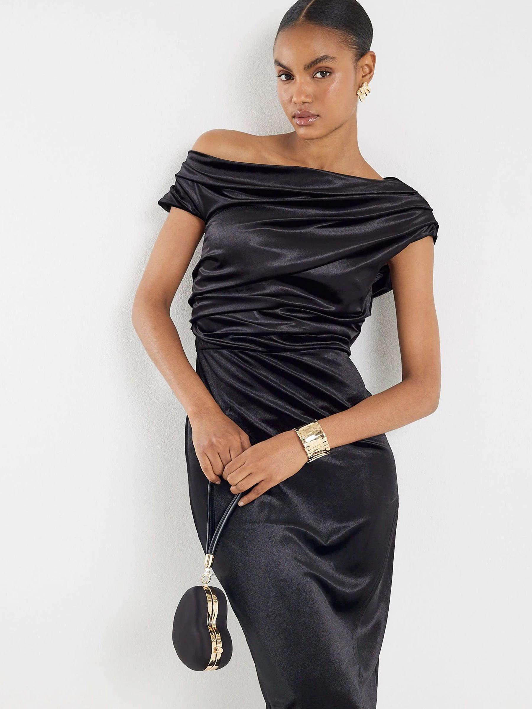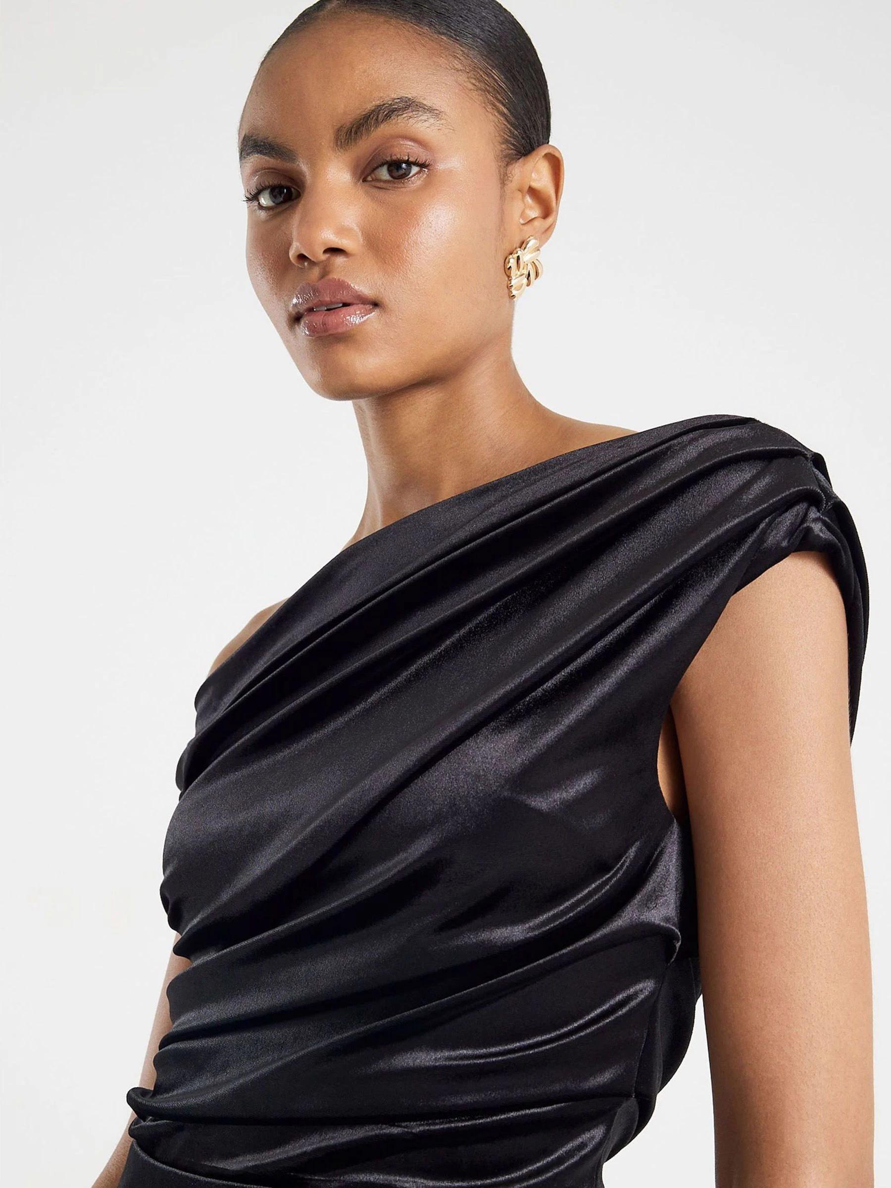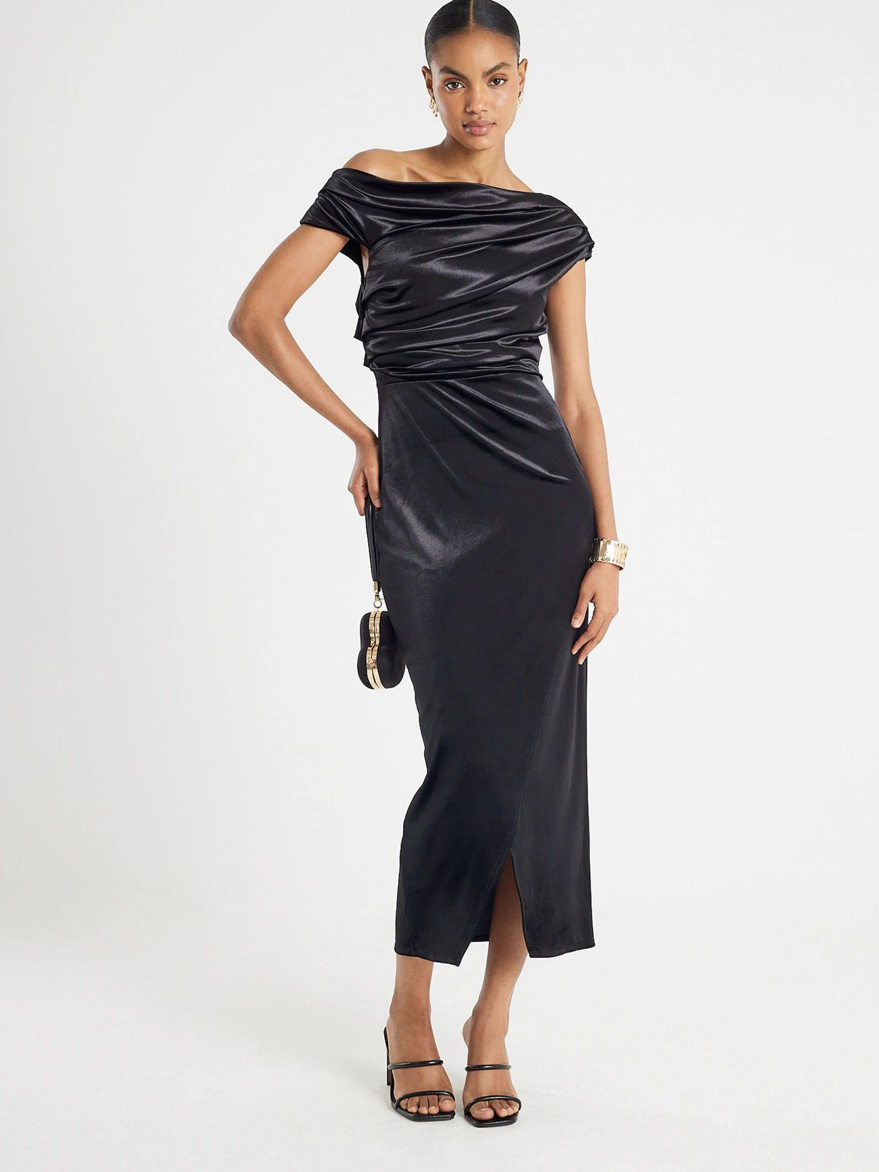 River Island Black Sleeveless Velvet Drape Midi Dress