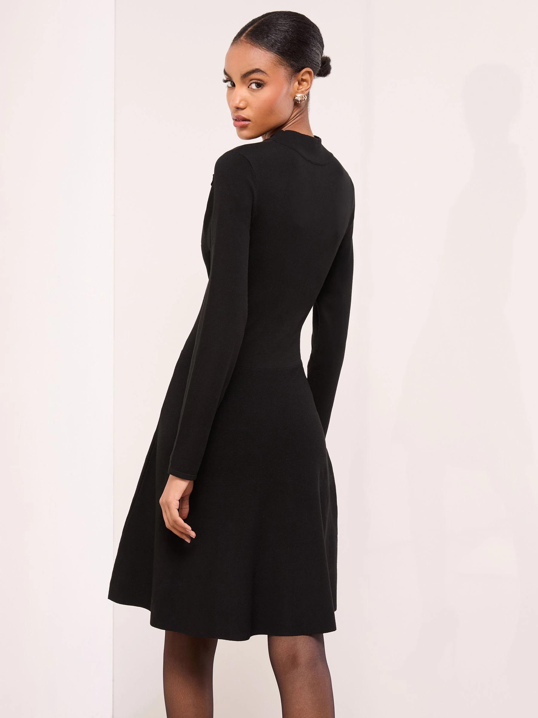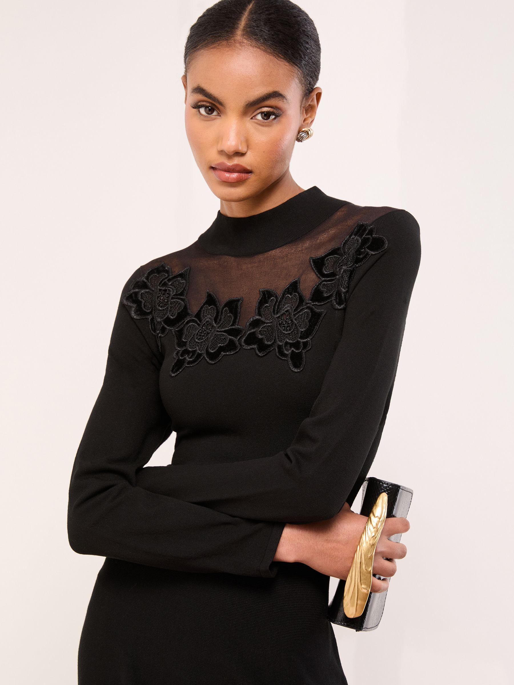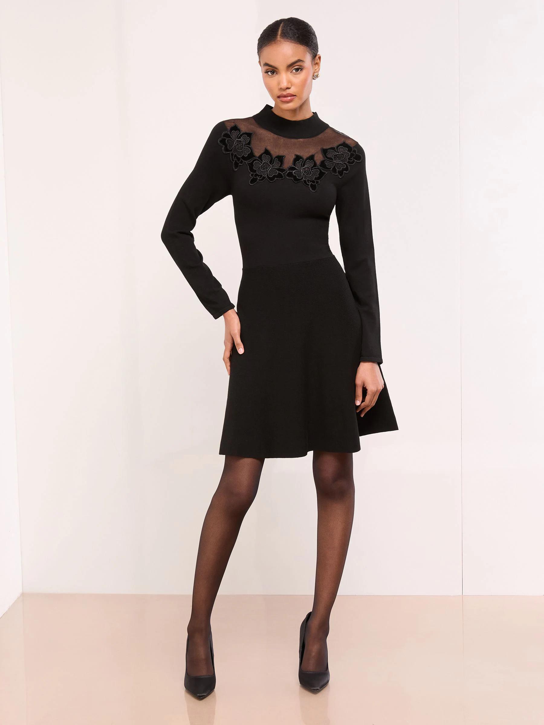 Lipsy Black Mini Mesh Yoke Appliqué Flower Skater Dress