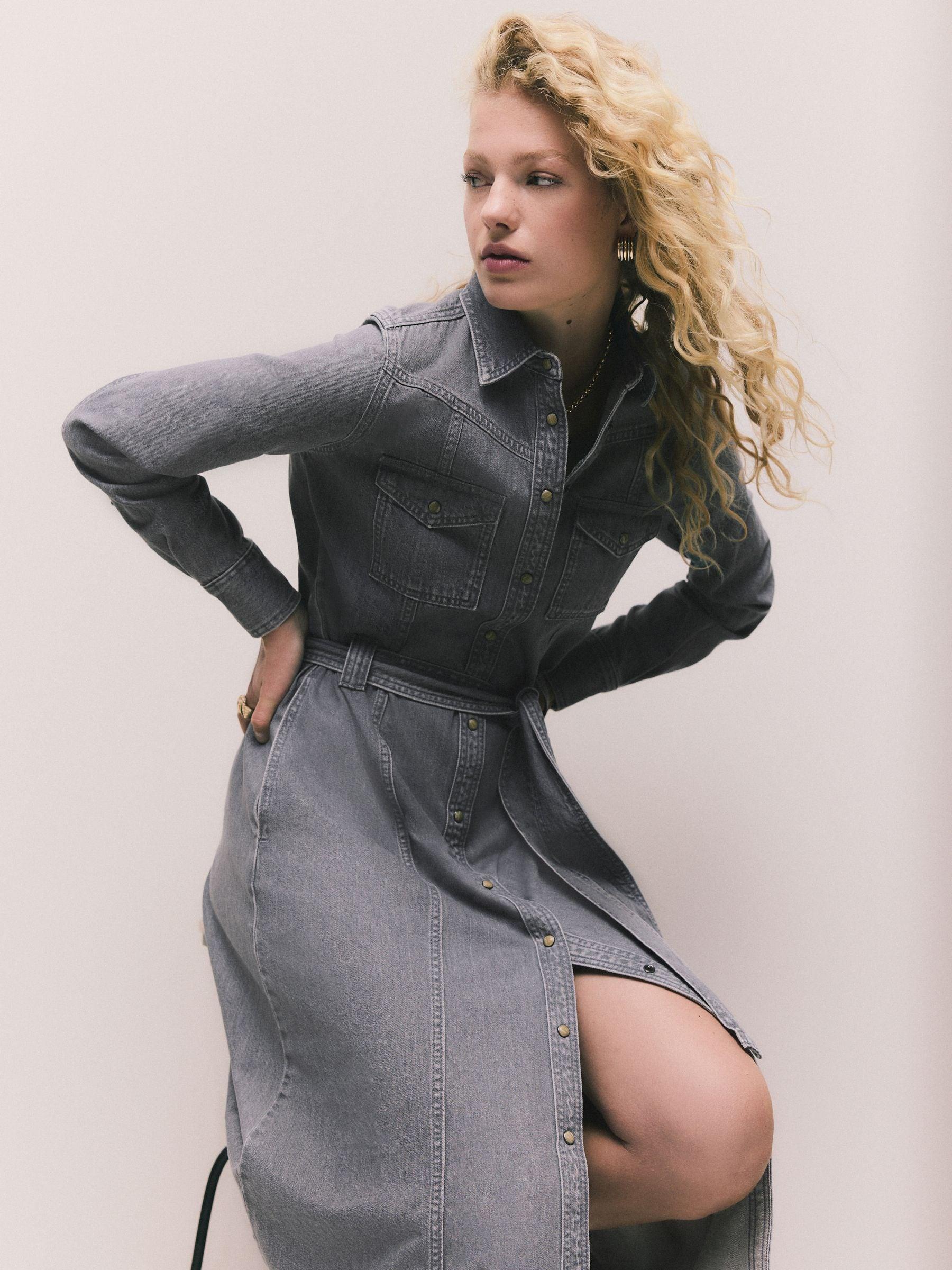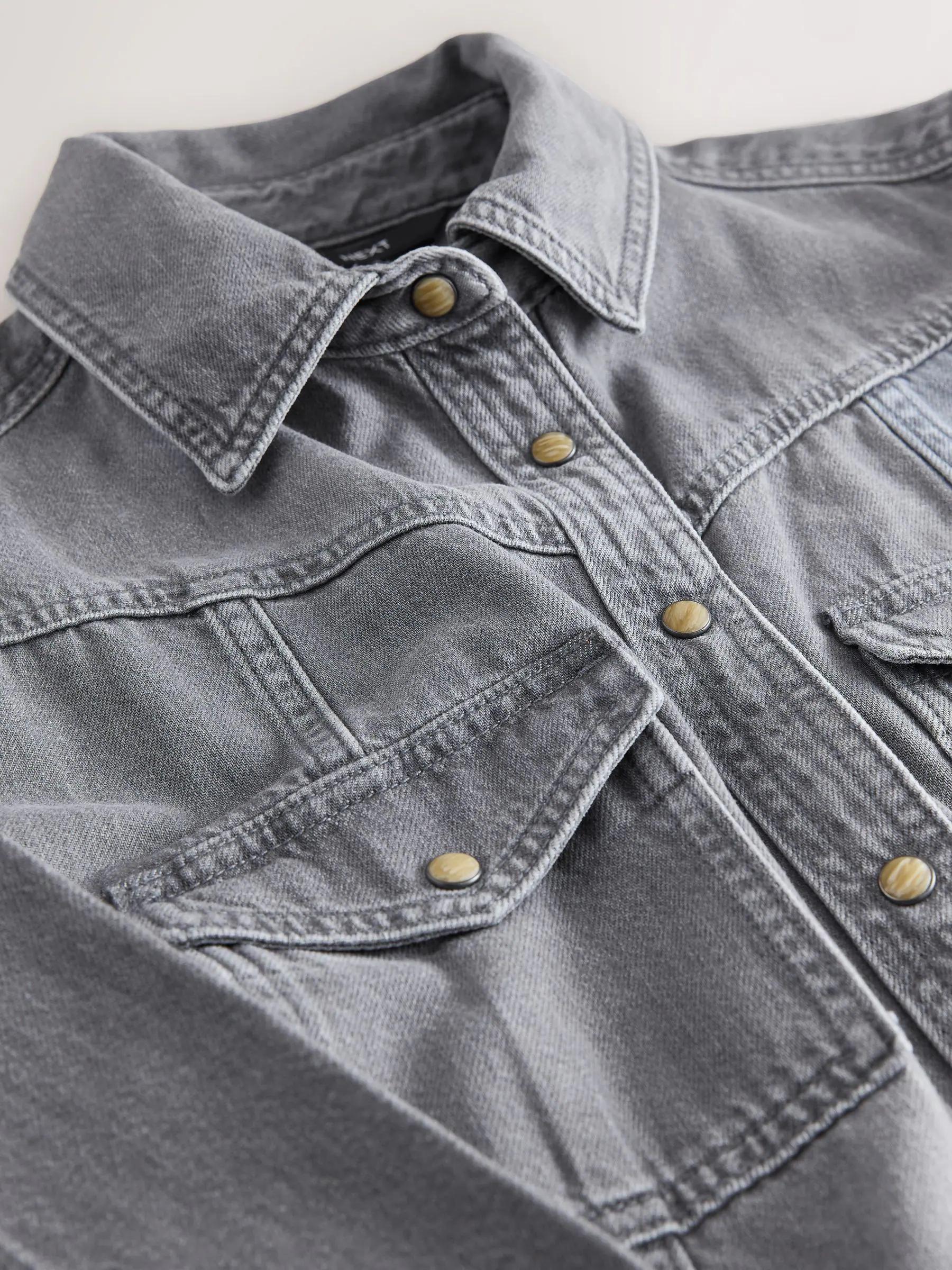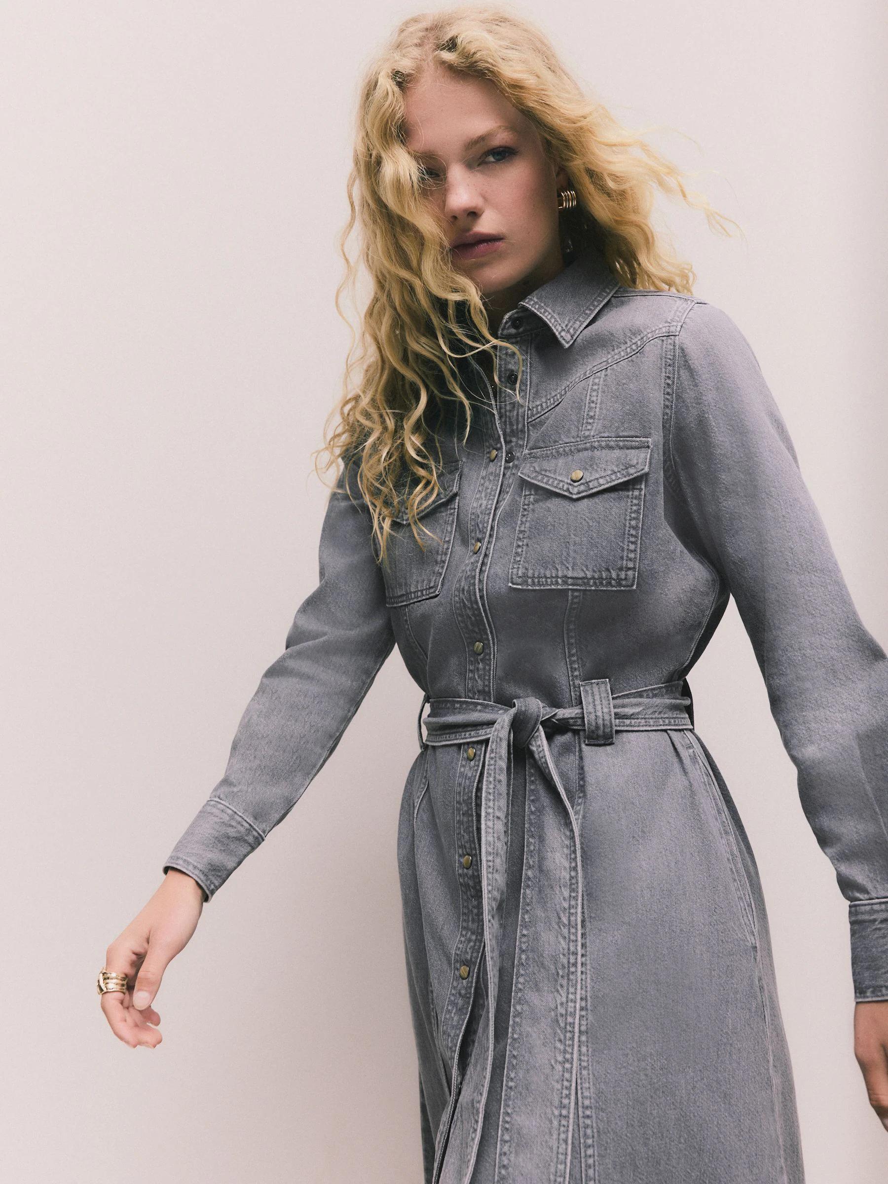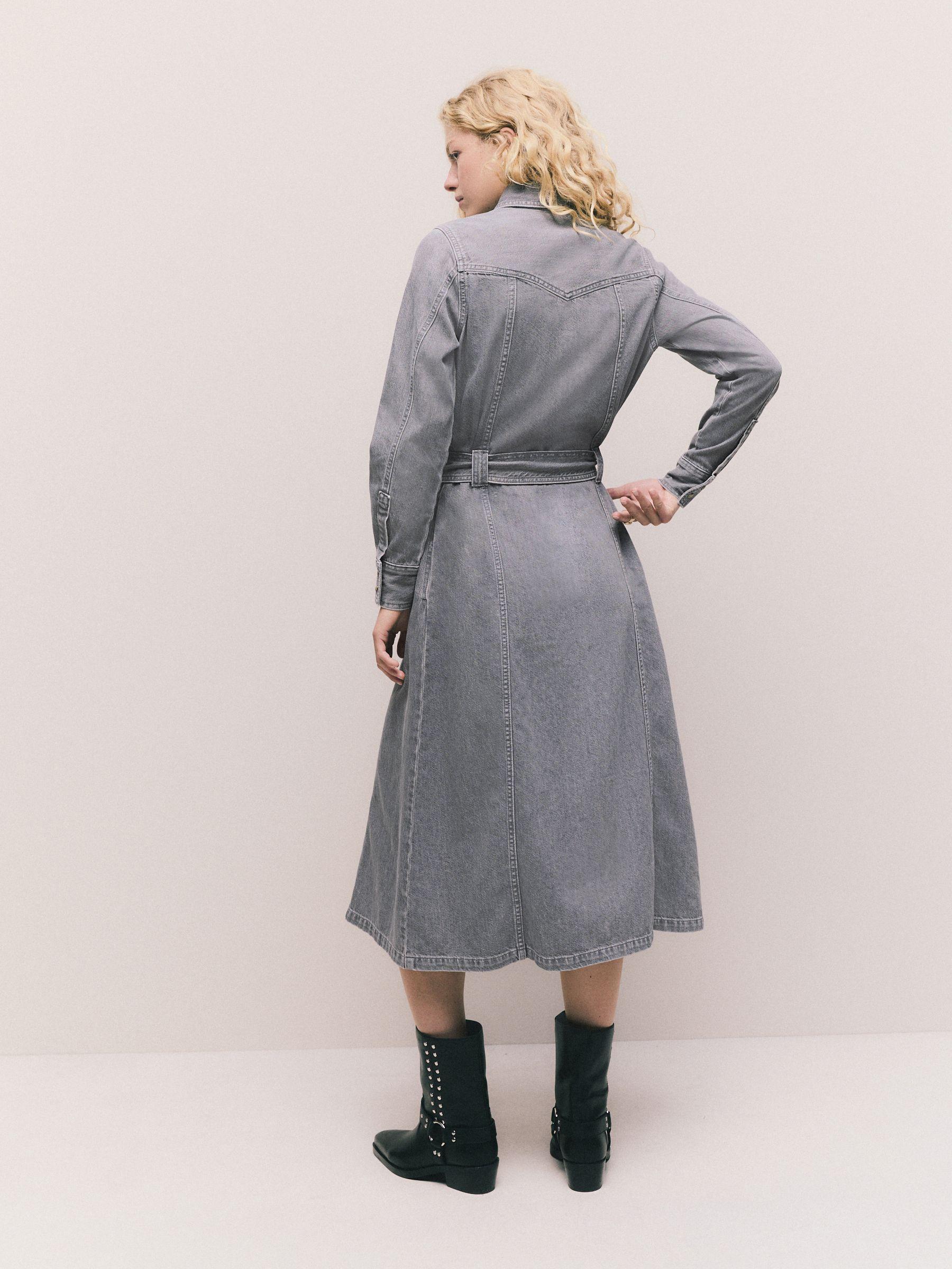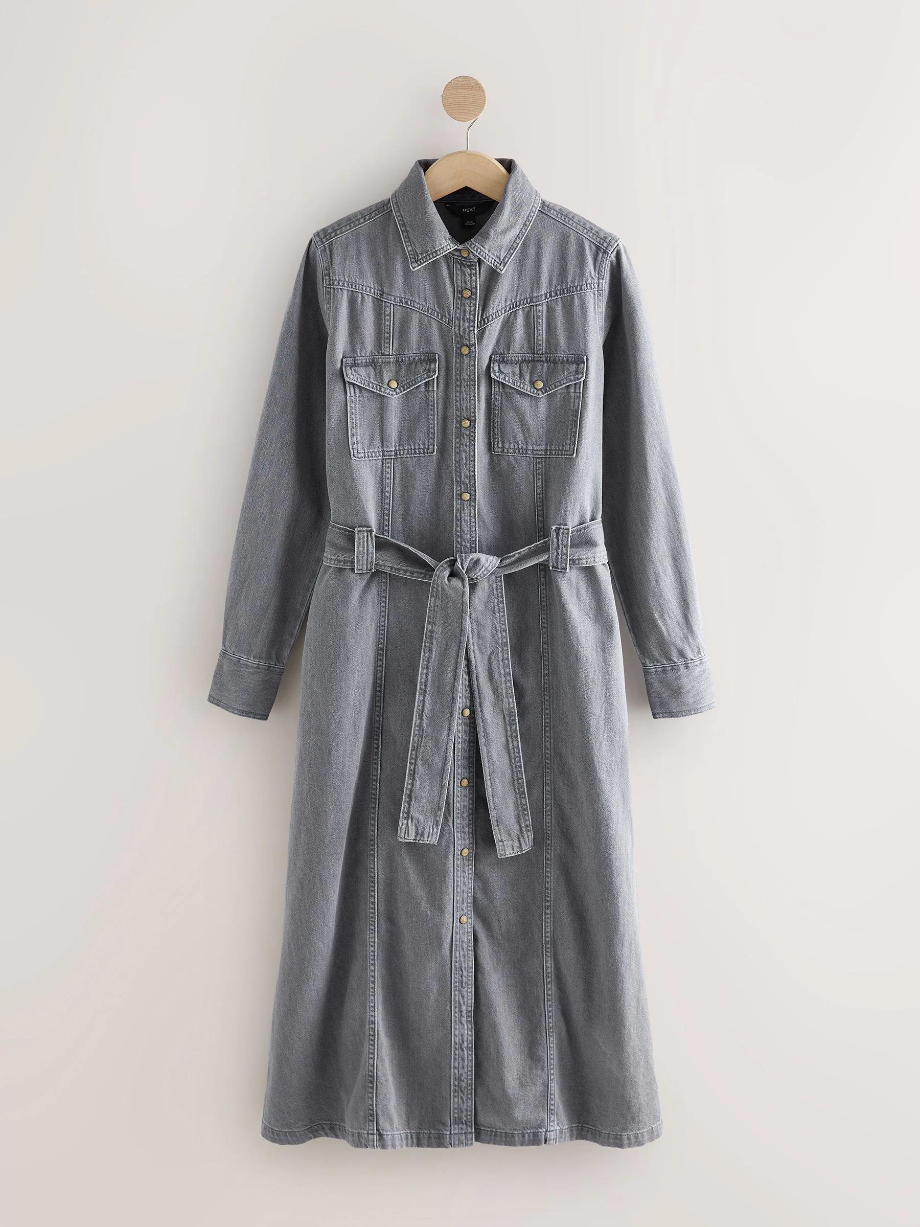 Grey Denim Midi Shirt Dress