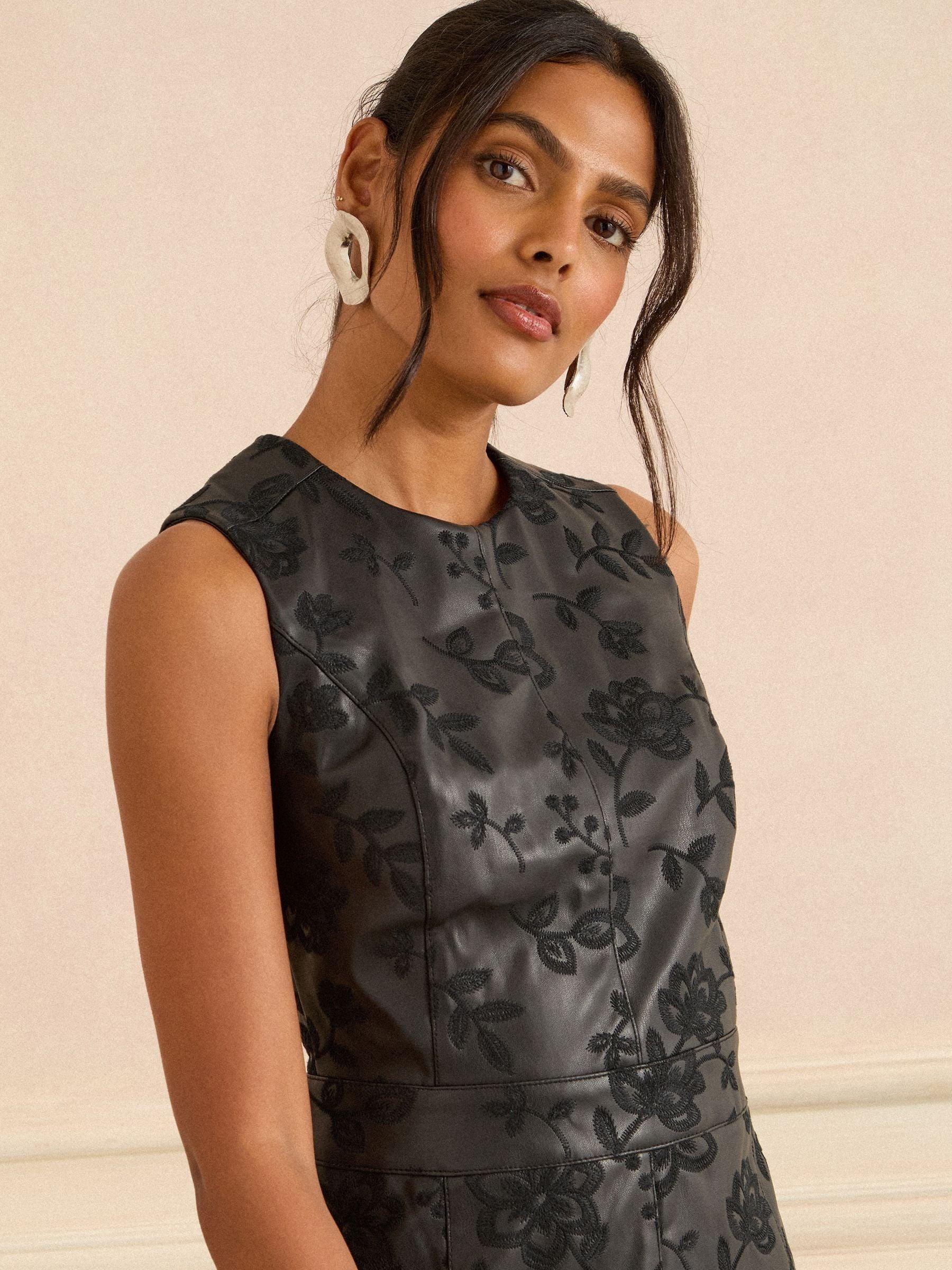 Love & Roses Black Floral Embroidered Faux Leather Mini Dress