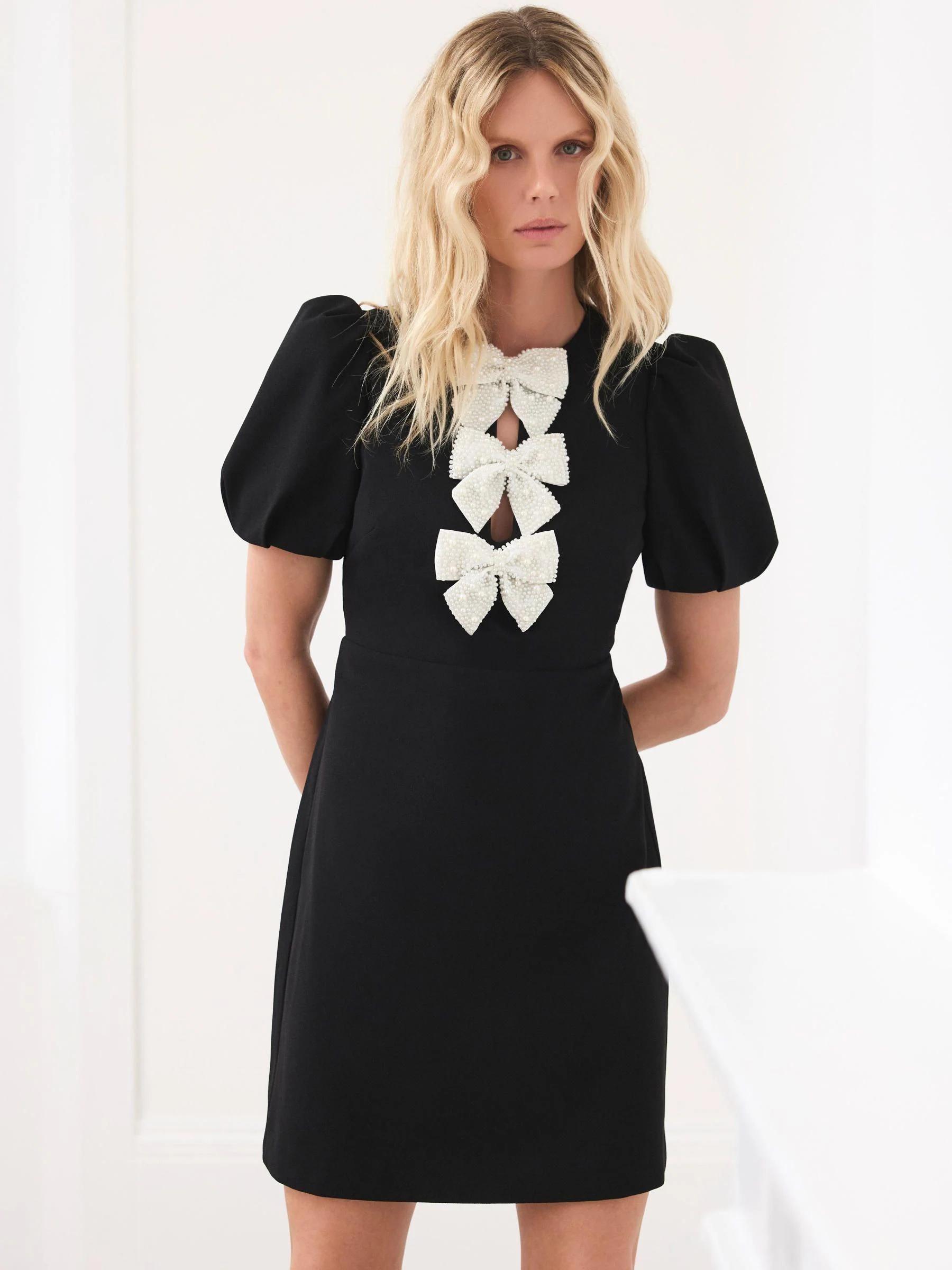 Mint Velvet Black Bow Detail Mini Dress