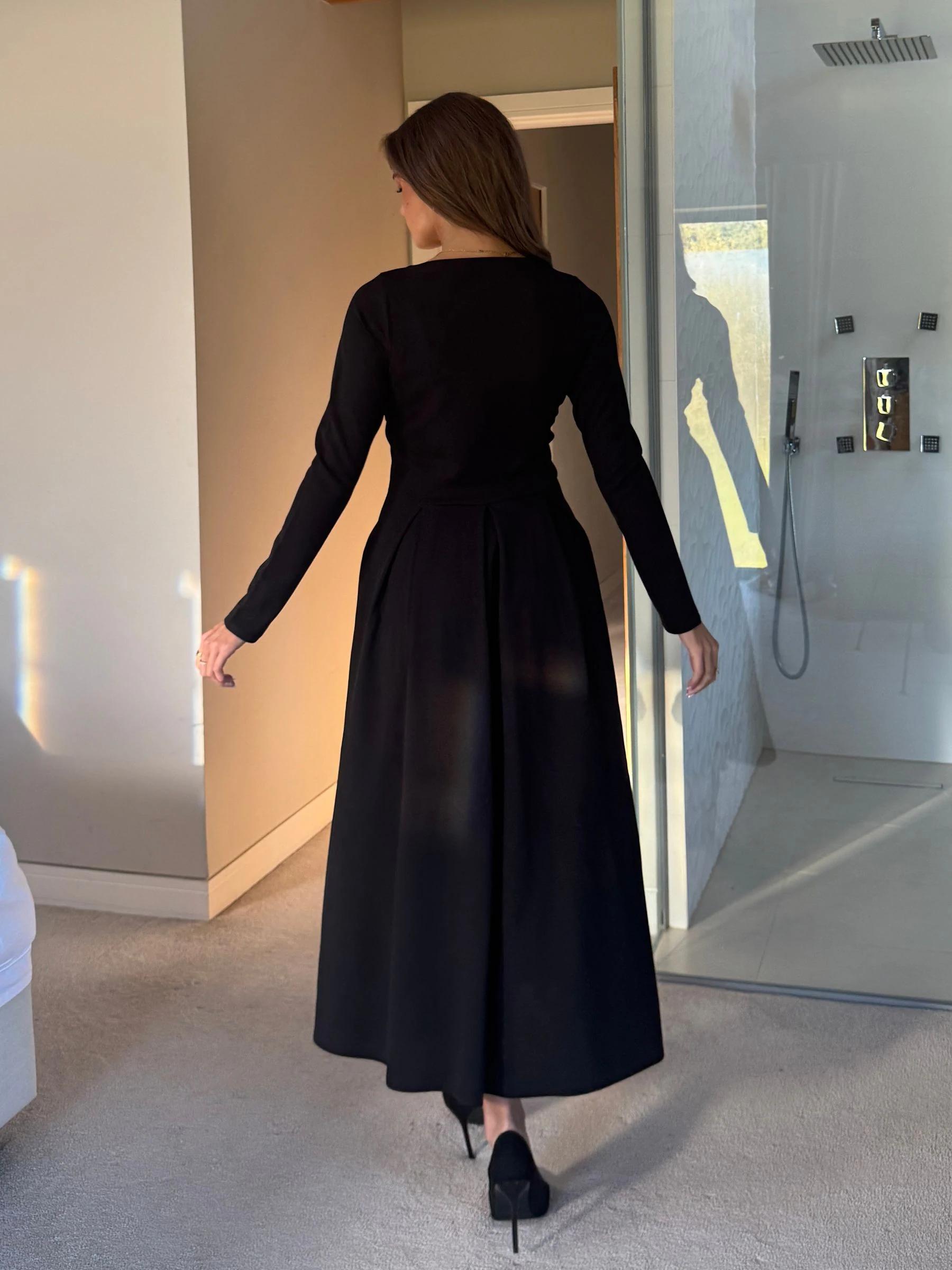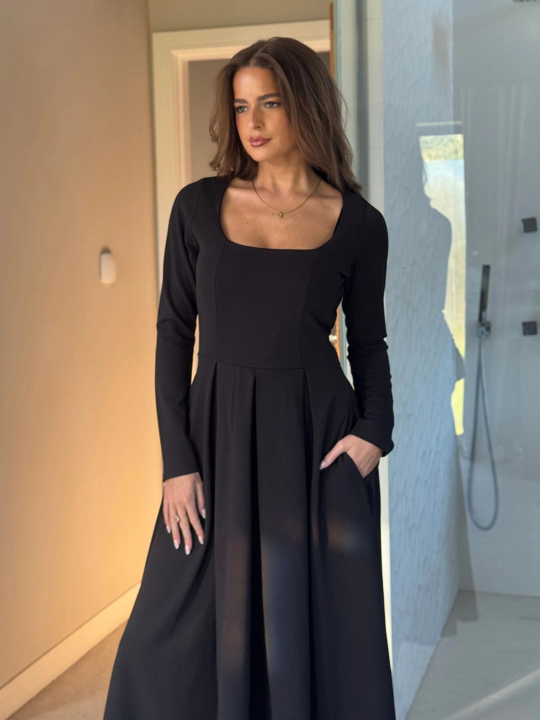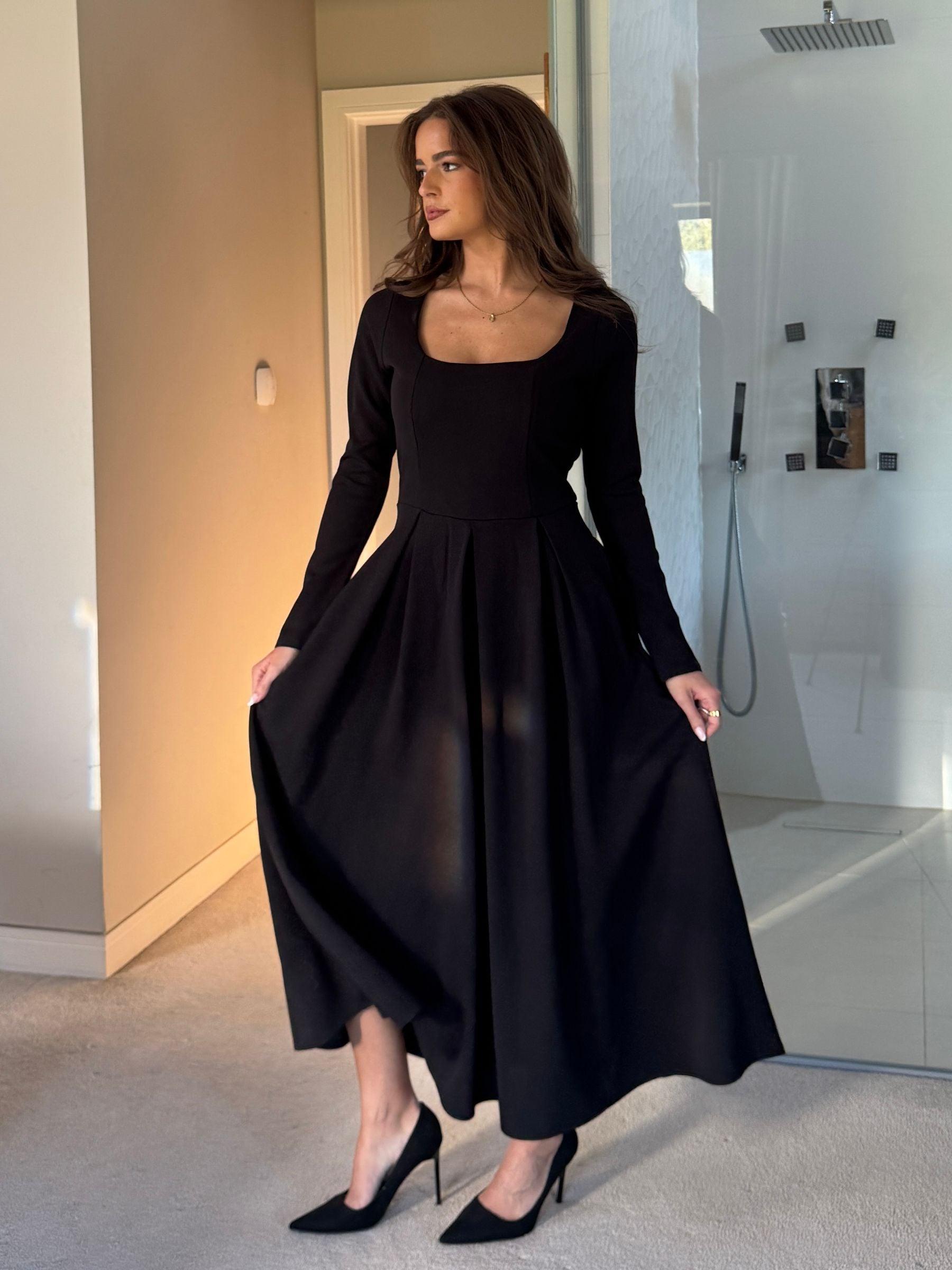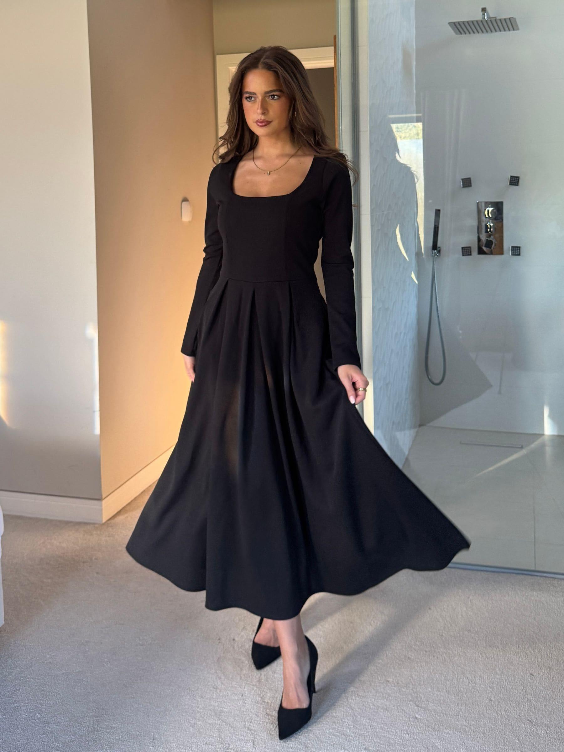 Girl In Mind Black Evie Square Neck Long Sleeve Midi Dress