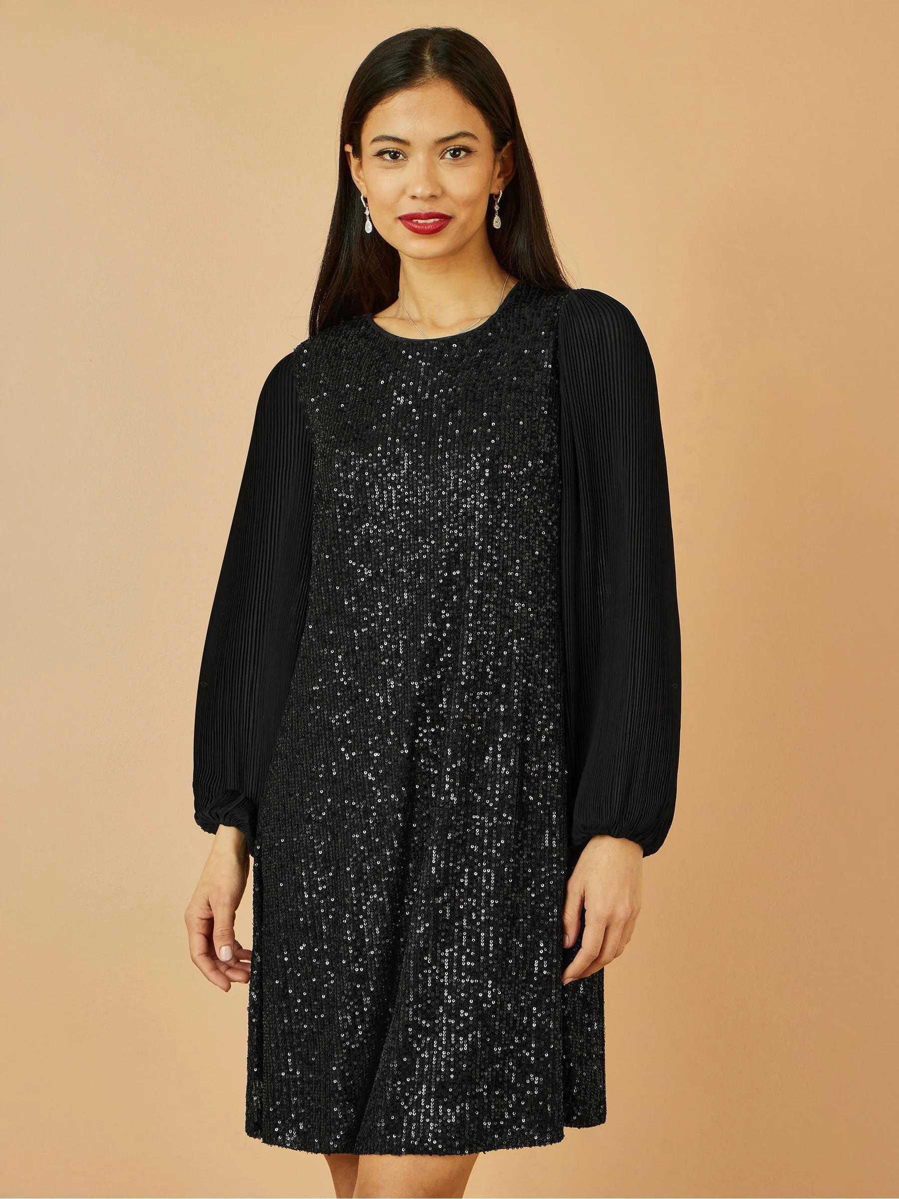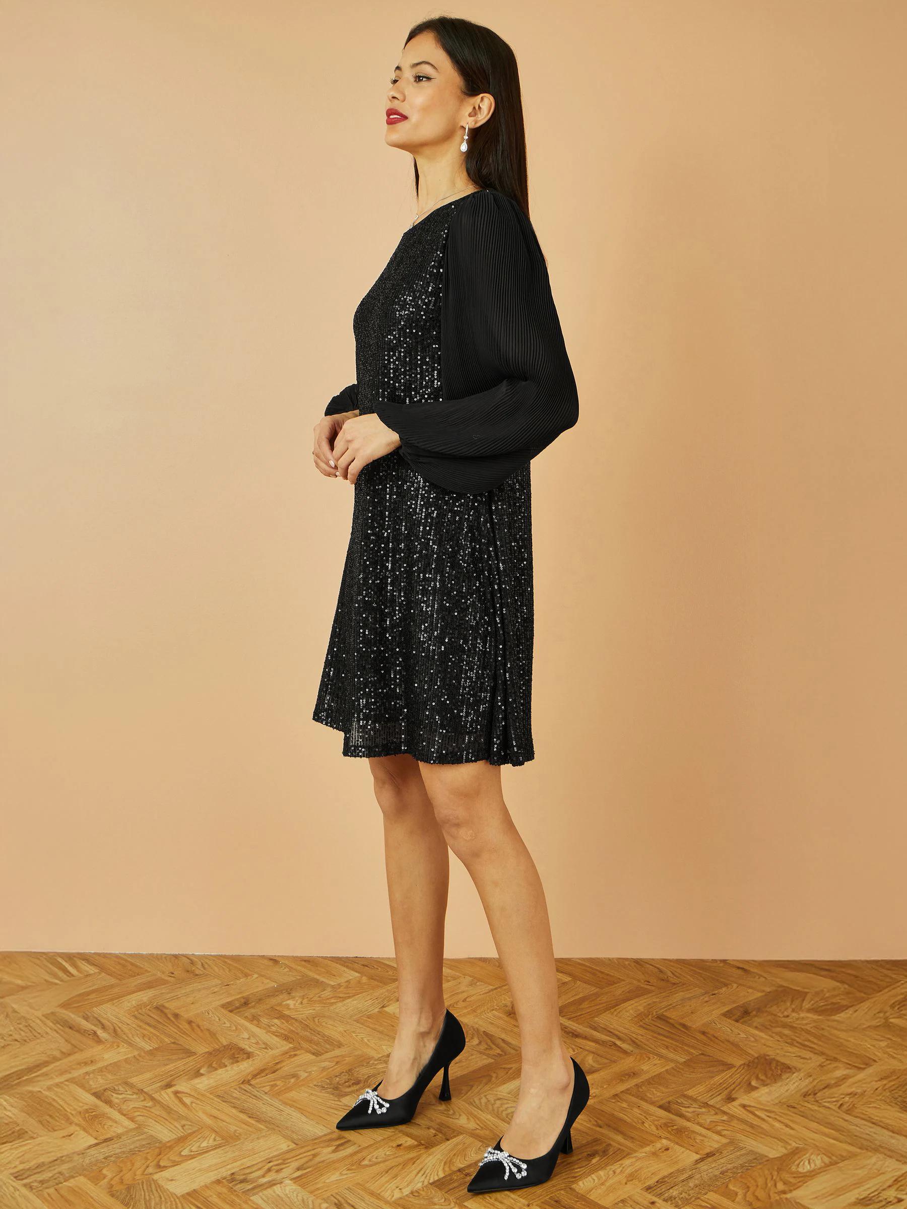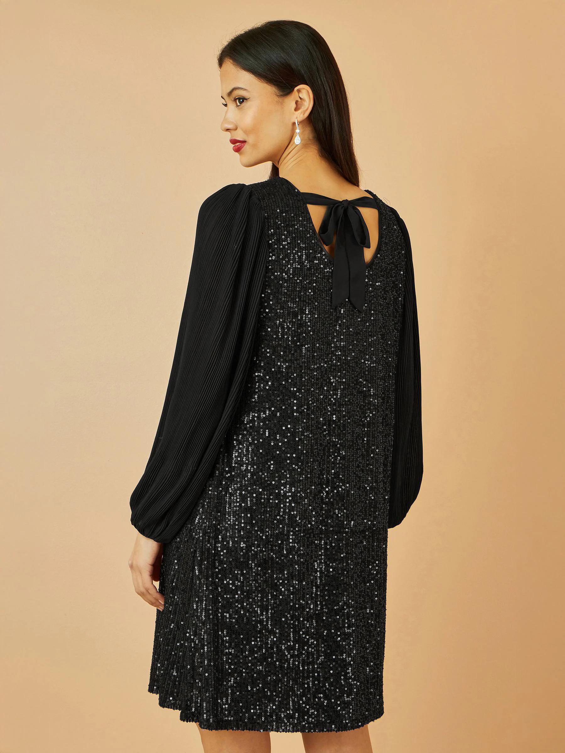 Yumi Black Velvet Sequin Tunic Dress With Long Pleated Sleeves
