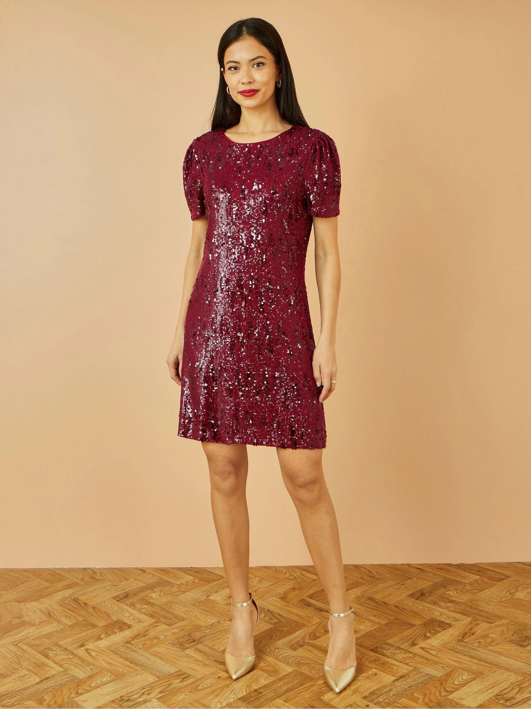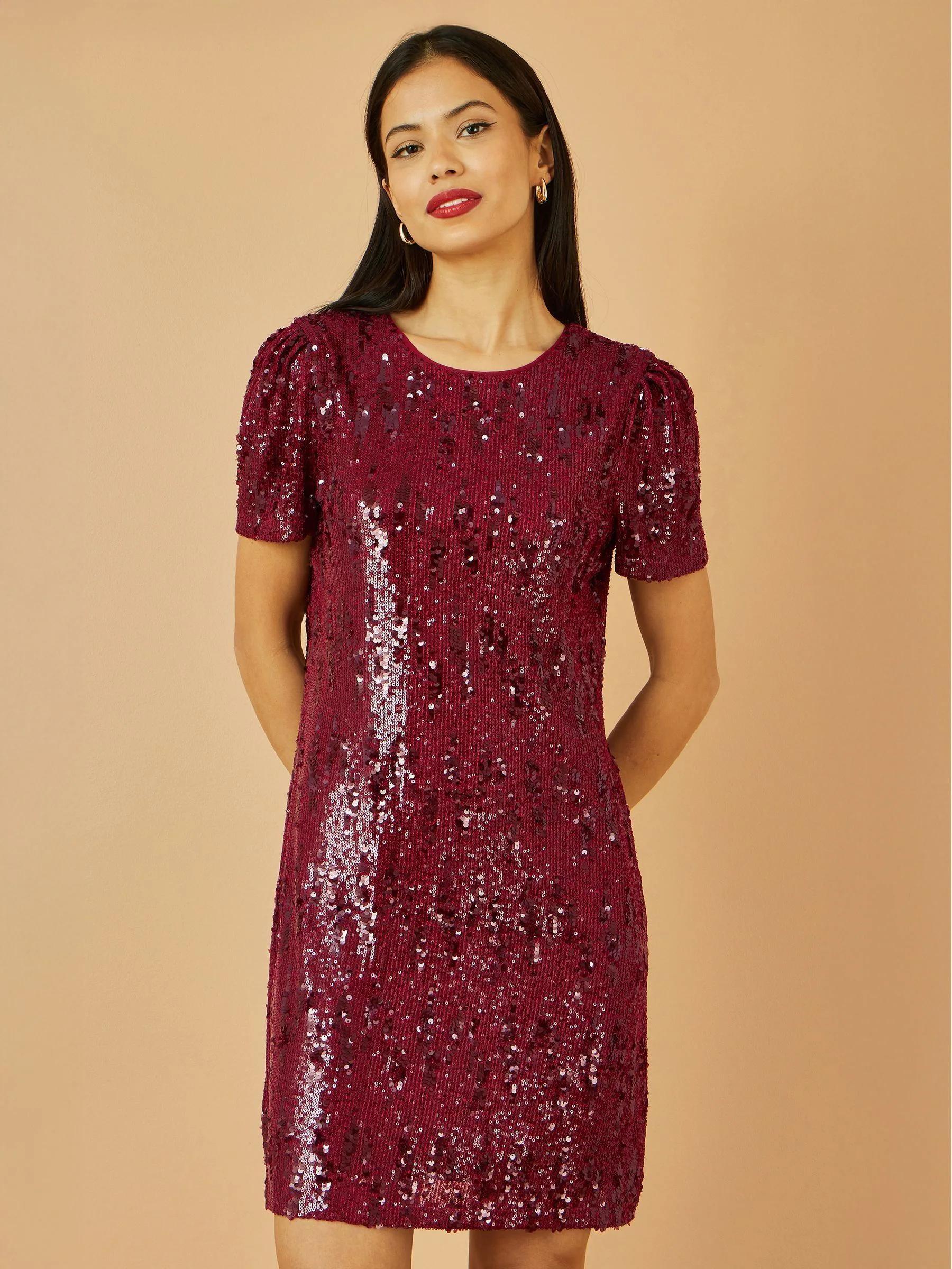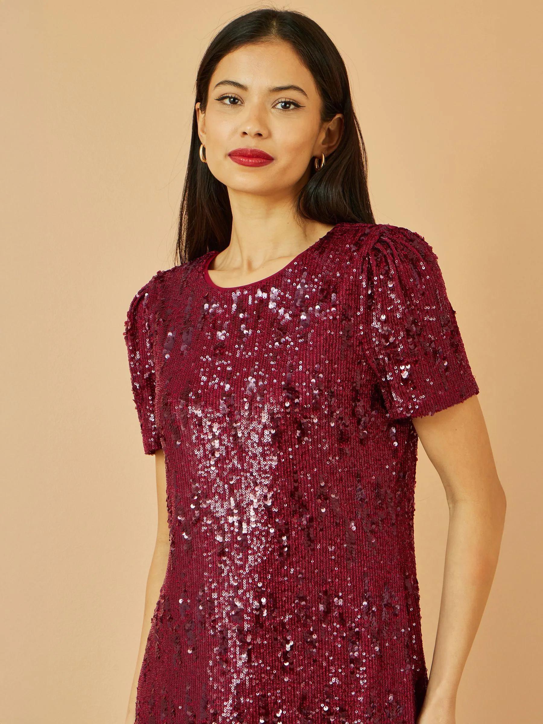 Yumi Red Sequin Stretch Tunic Dress