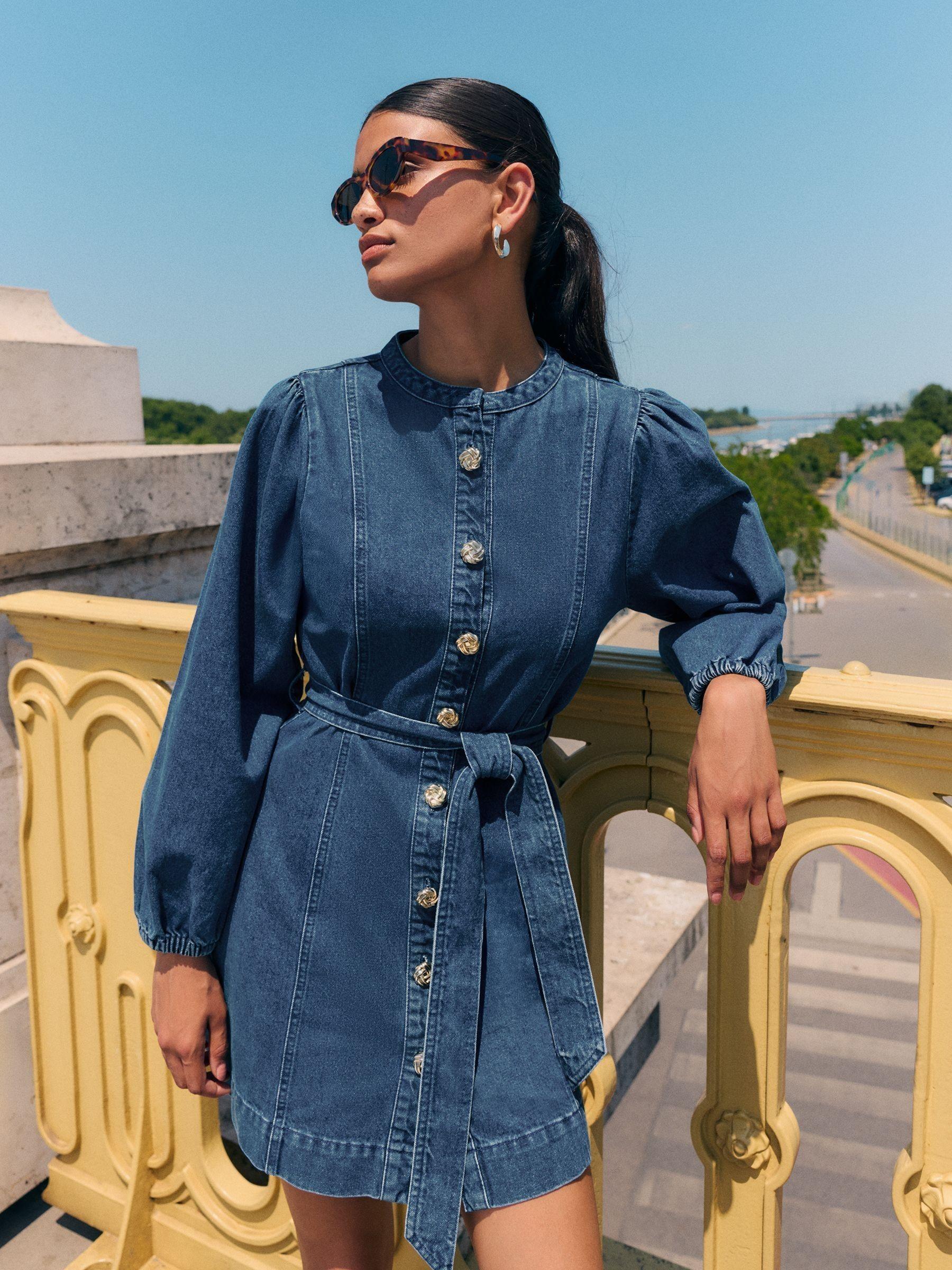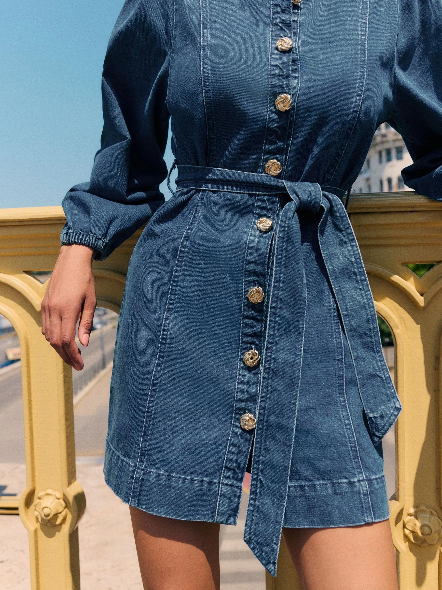Friends Like These Dark Blue Denim Belted Mini Dress