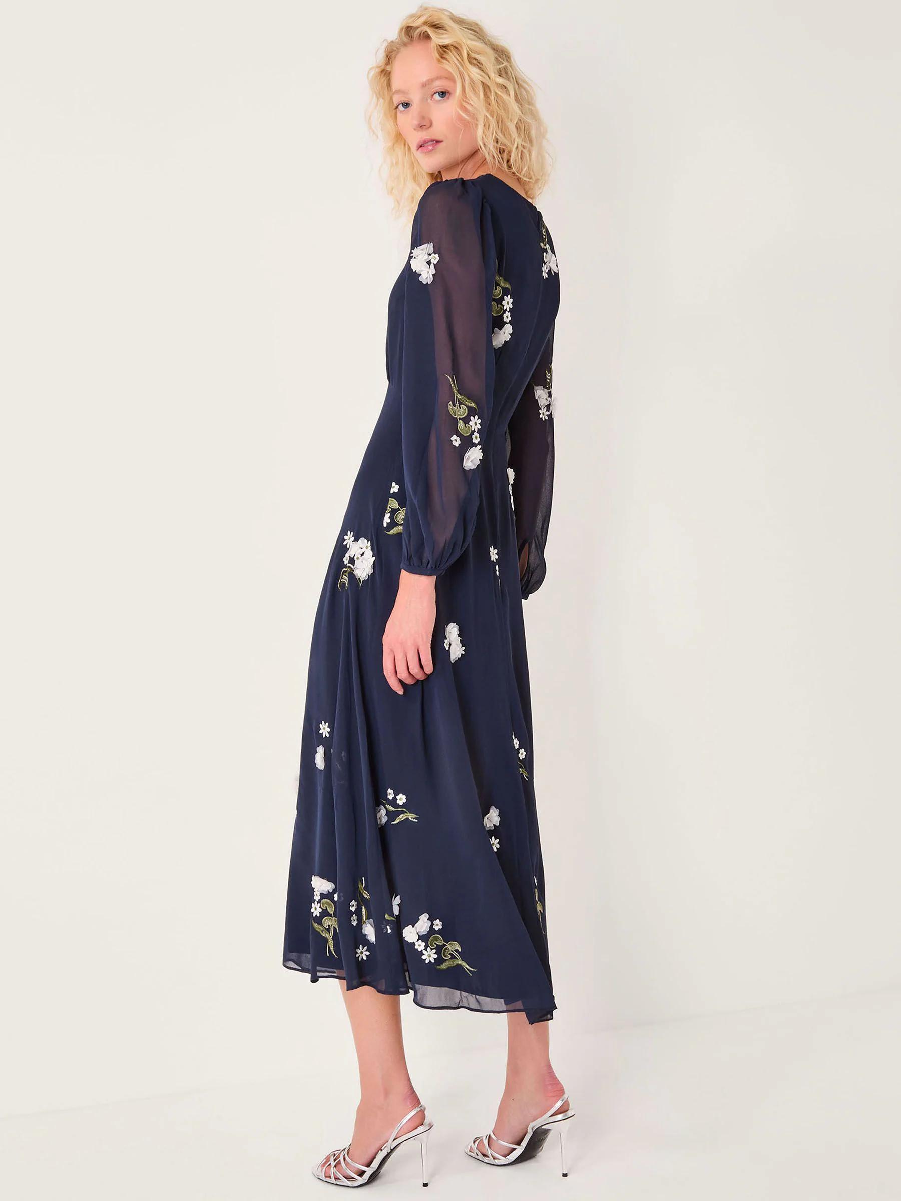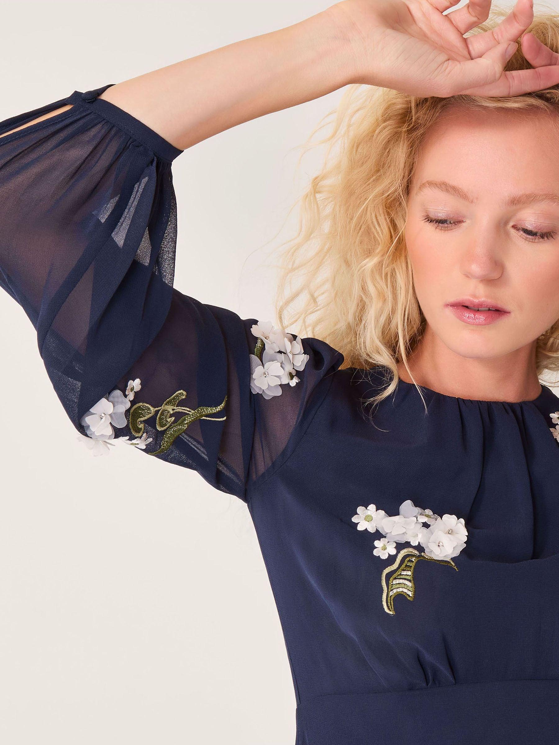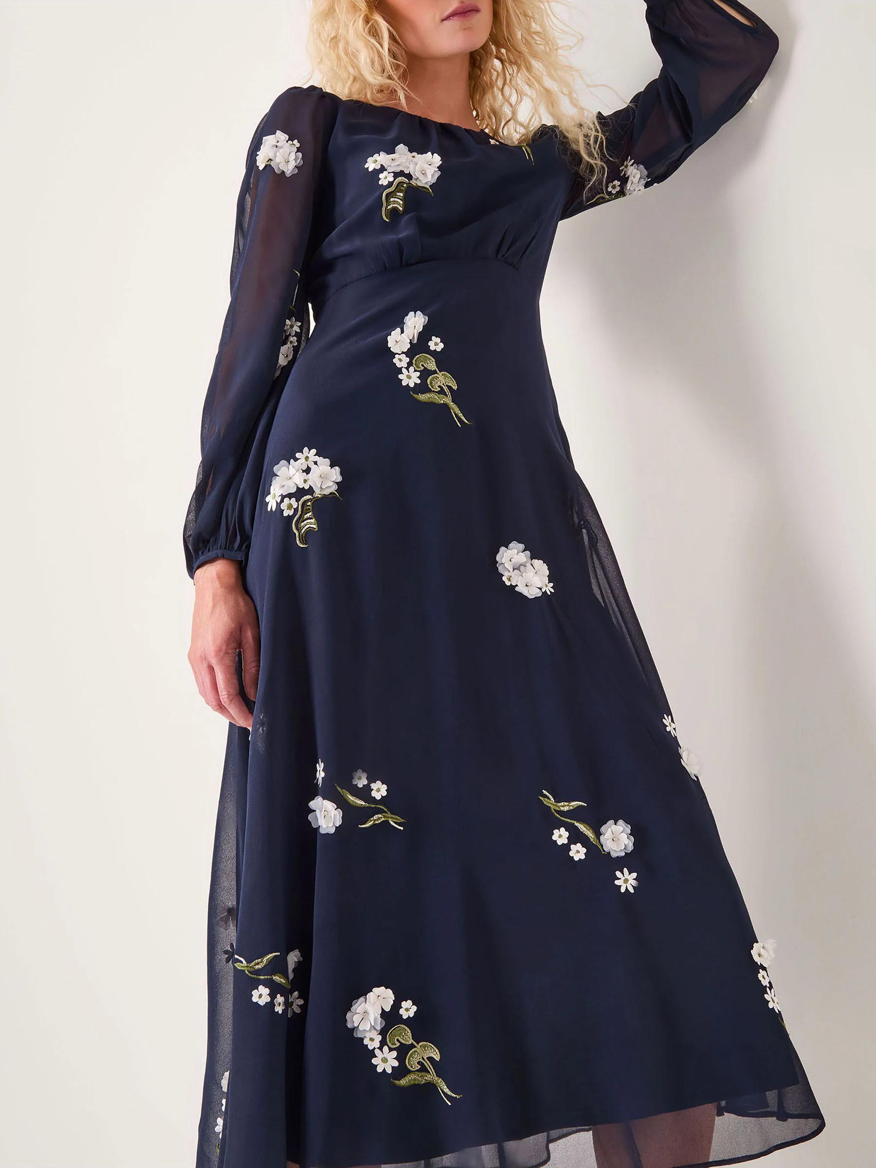 Monsoon Blue Delilah Floral Appliqué Midi Dress