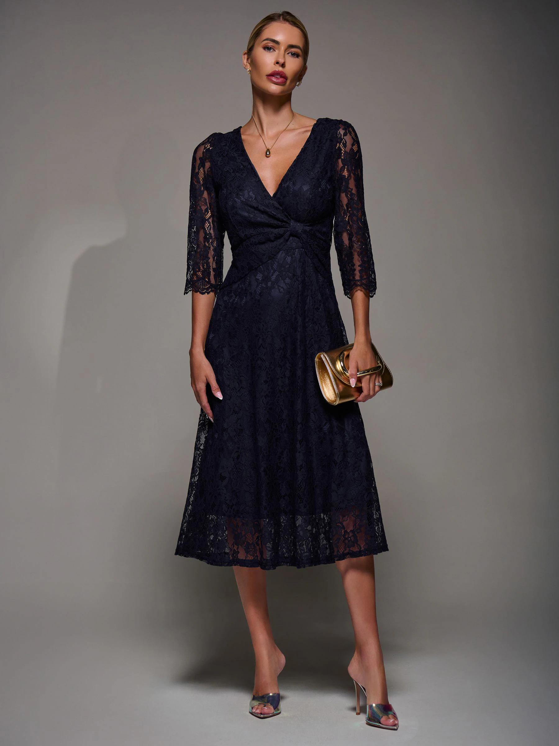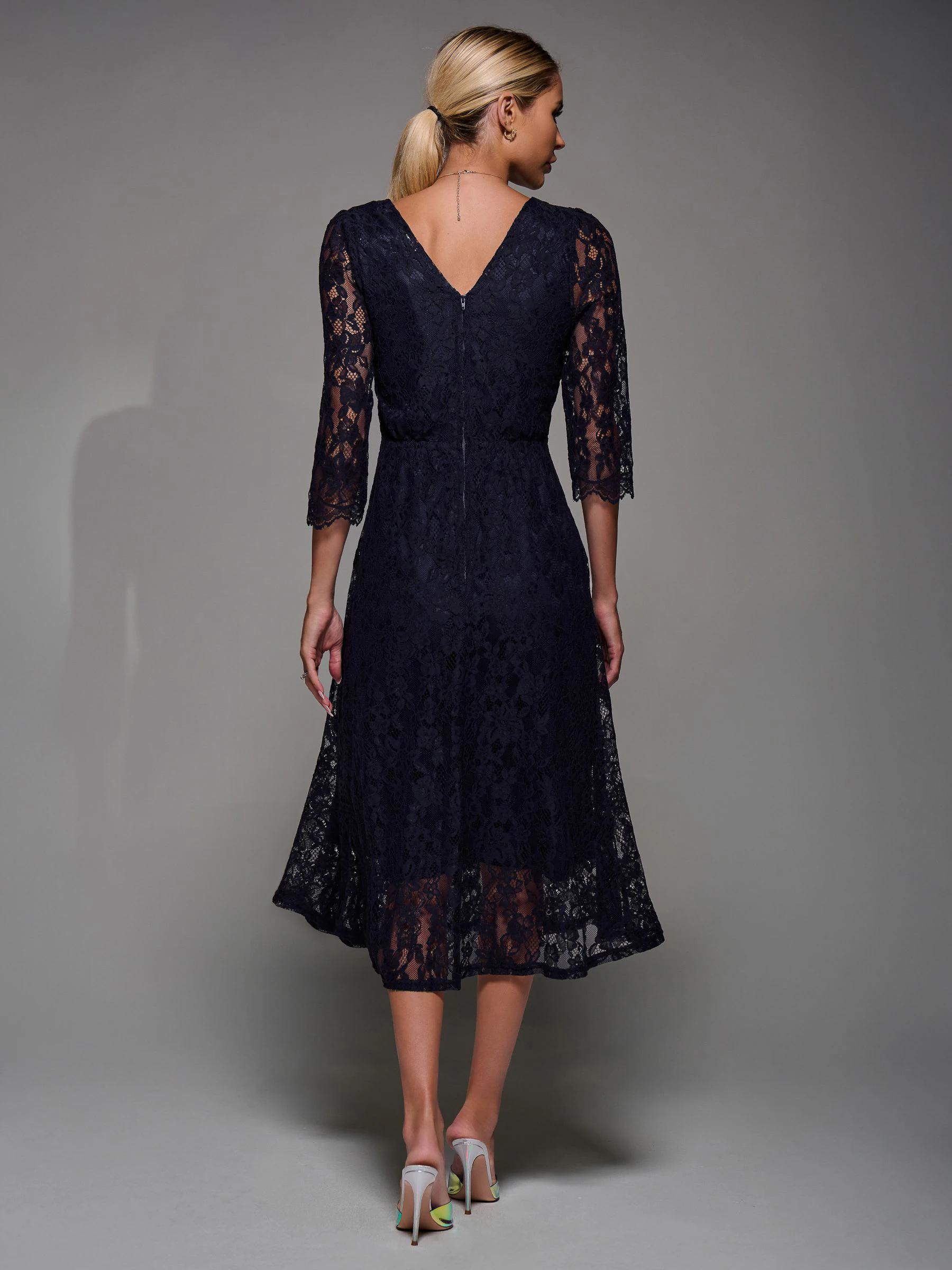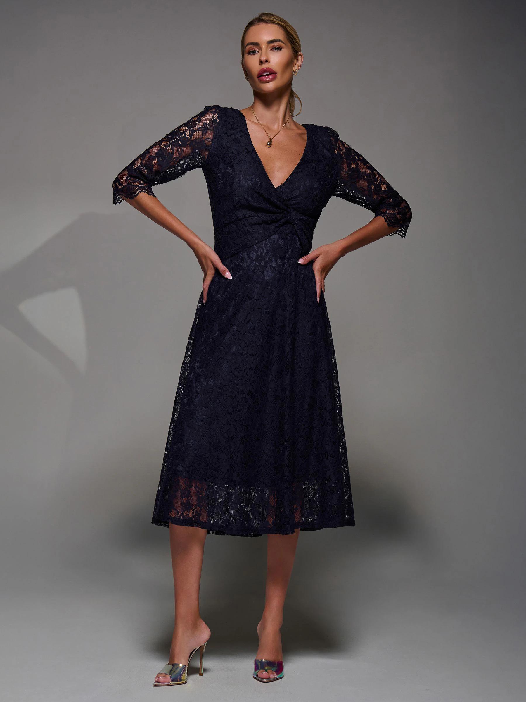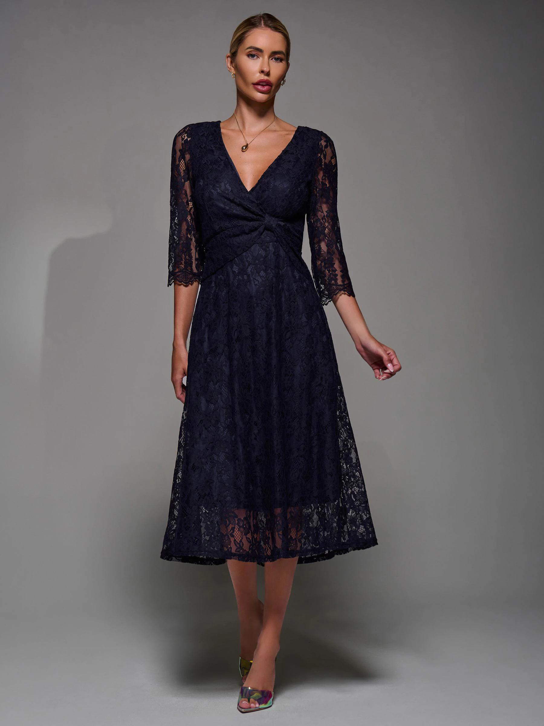Jolie Moi Blue Lace Long Sleeve Midi Dress