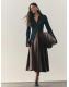 Nothing Ordinary Chocolate Brown Faux Leather Wrap Midi Kilt Skirt