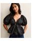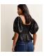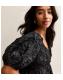 Petite Black Jacquard Twisted Front Puff Sleeve Top