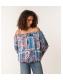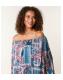 Blue Vanilla Teal Bardot Puffball Hem Paisley Print Blouse