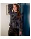 Blue Vanilla Silver Metallic Thread High Neck Snakeskin Pattern Blouse