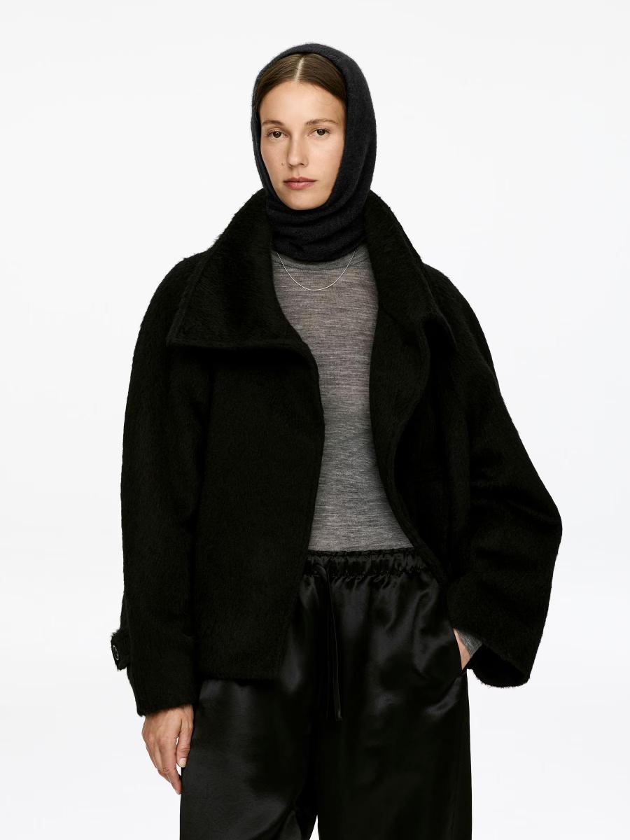 A hood with long ties, crafted from a blend of alpaca and wool. This style contains 31% RAS Alpaca and 31% RWS wool (TE-00047206). Products certified to the Responsible Wool Standard (RWS) and the Responsible Alpaca Standard (RAS) contain wool and alpaca fiber from farms independently certified to animal welfare and land management requirements.ARKET/Women's clothes/Women's accessories/Women's beanies and gloves