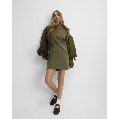 Khaki Long Sleeve Sweatshirt Dress