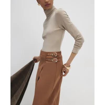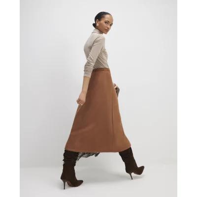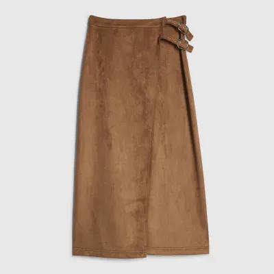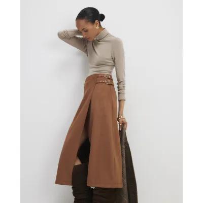 Brown Buckle Detail Wrap Midi Skirt
