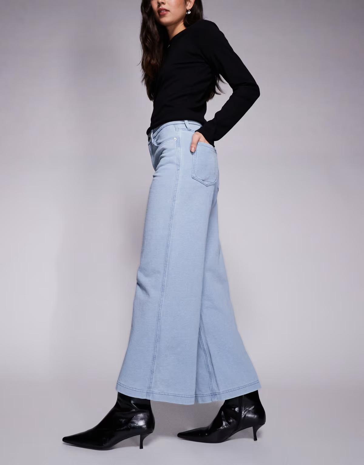 Good American cotton cropped hoodie and jeans co-ord in light blue wash