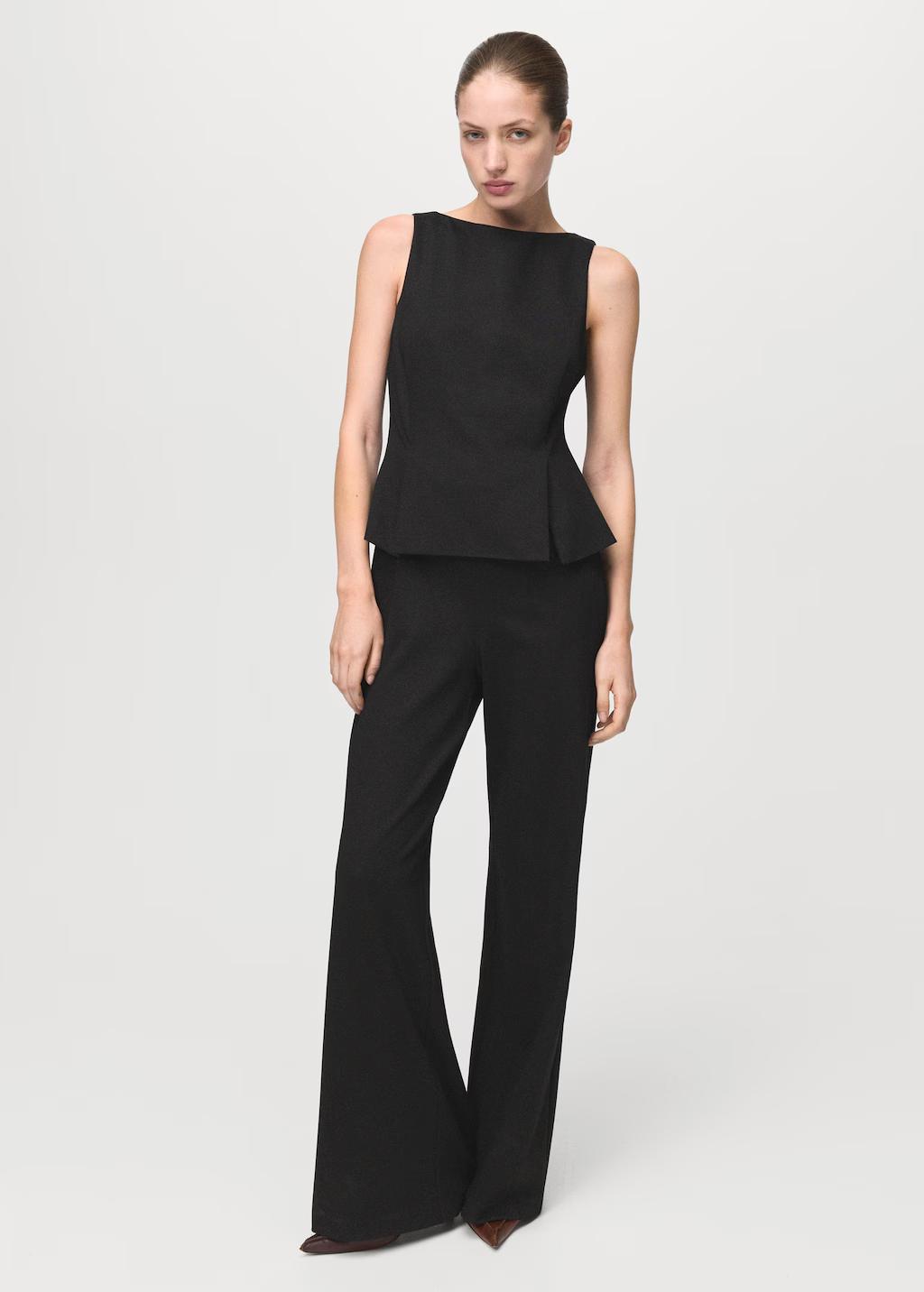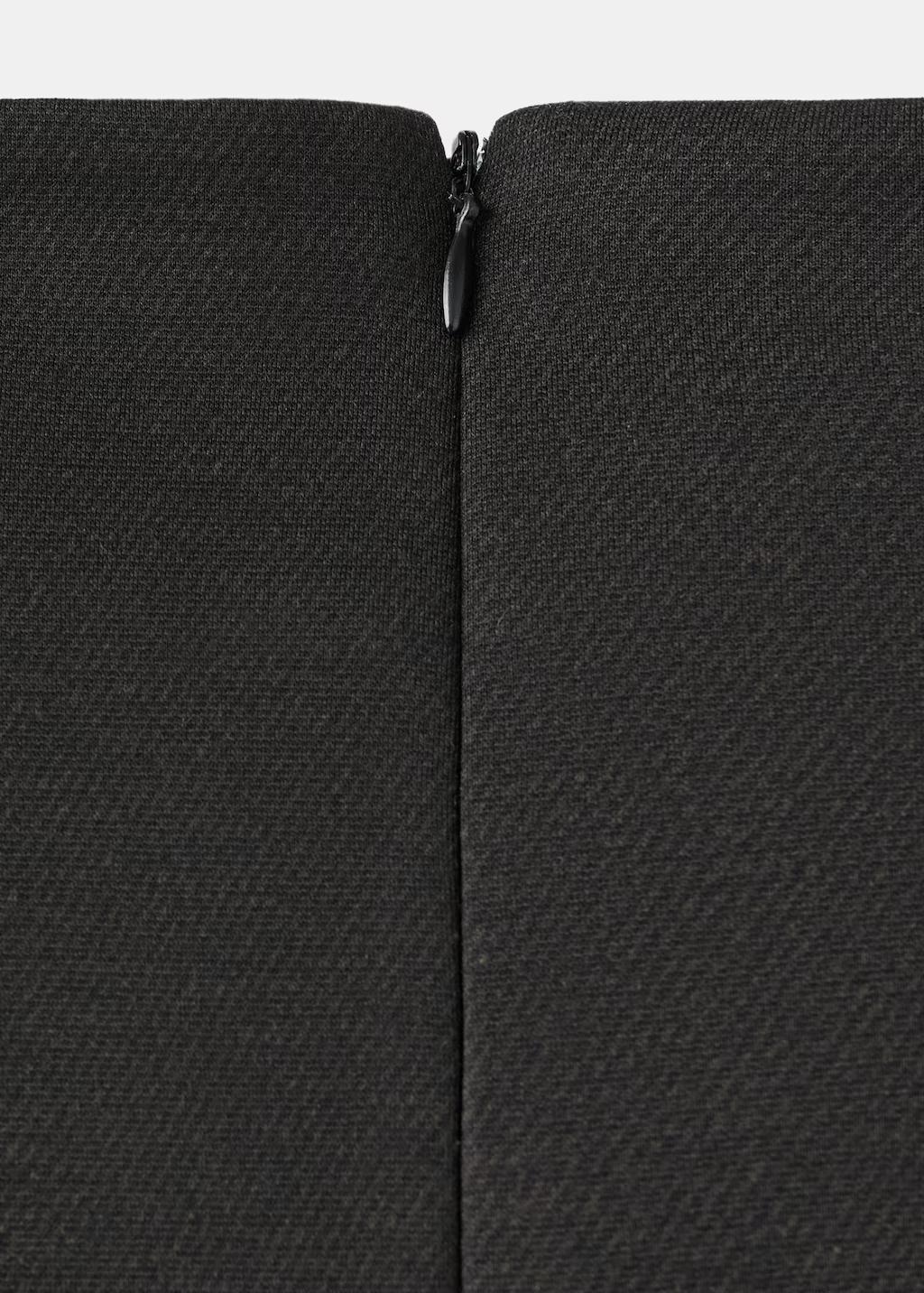 Diseño combinado. Diseño largo. Diseño recto. Cuello barco. Sin mangas. Tirantes anchos. Detalle de pinzas en la cintura. Cierre de cremallera en la parte posterior. Forro interior