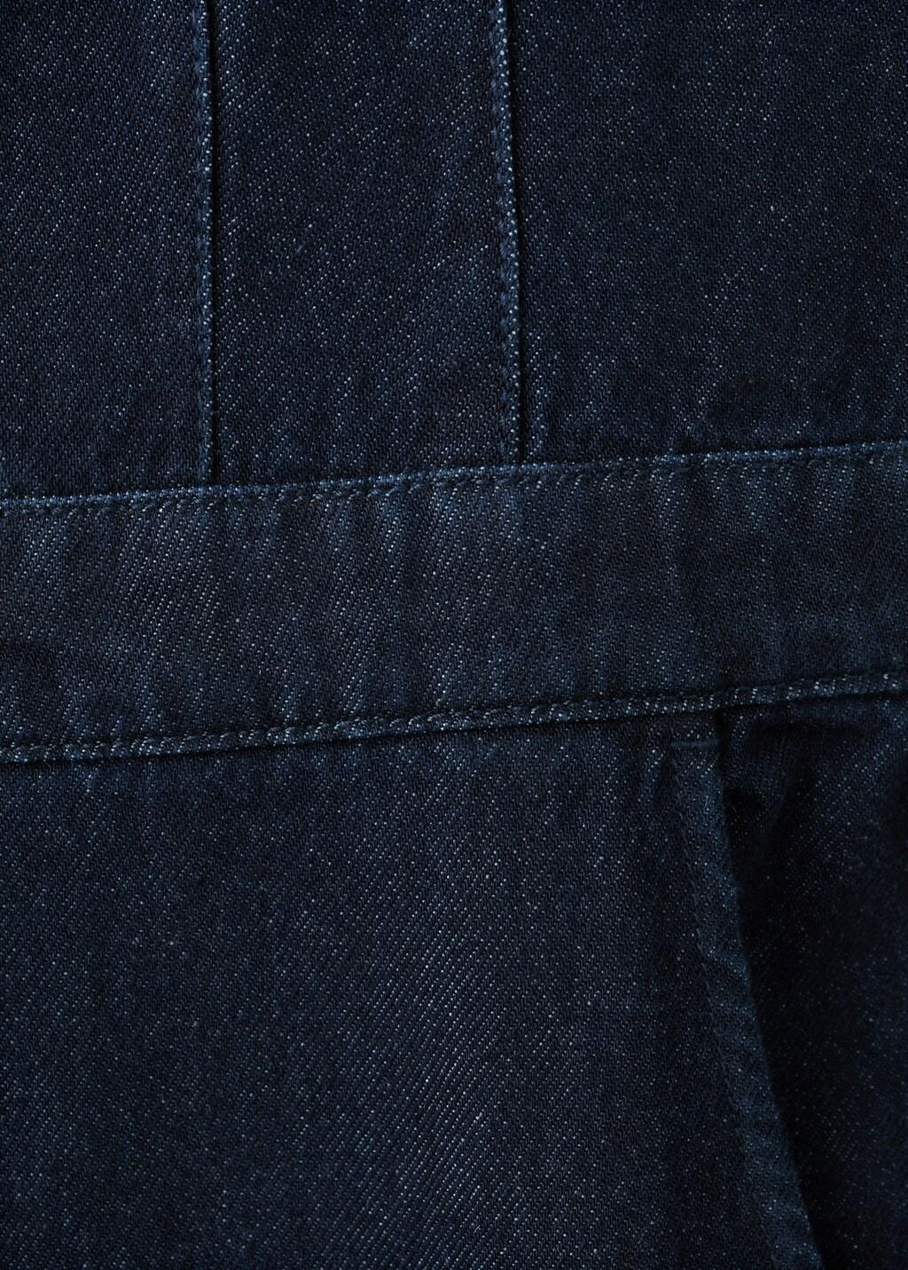 Tejido de algodón estilo tejano vaquero. Diseño largo. Diseño recto. Cuello redondo. Manga larga con puños abotonados. Dos bolsillos laterales. Cierre delantero con botones