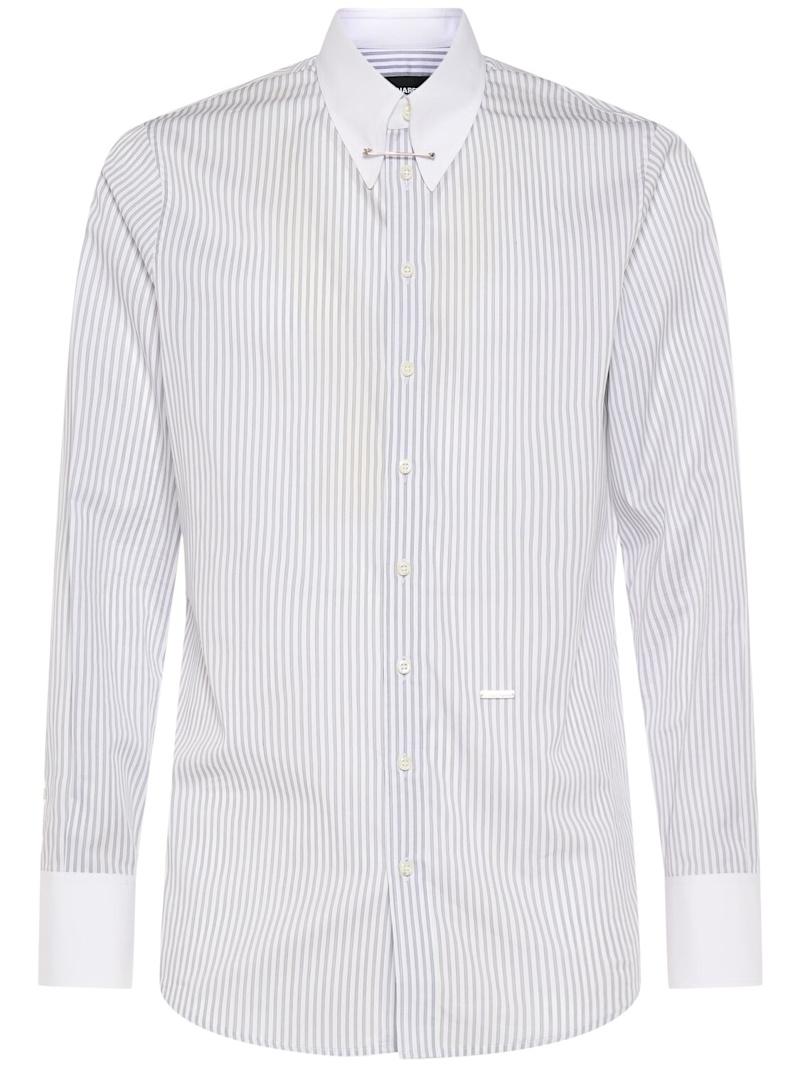 Business Man棉质衬衫 - 白色/灰色 - 男士 - Dsquared2 - 领口安全别针开合.
