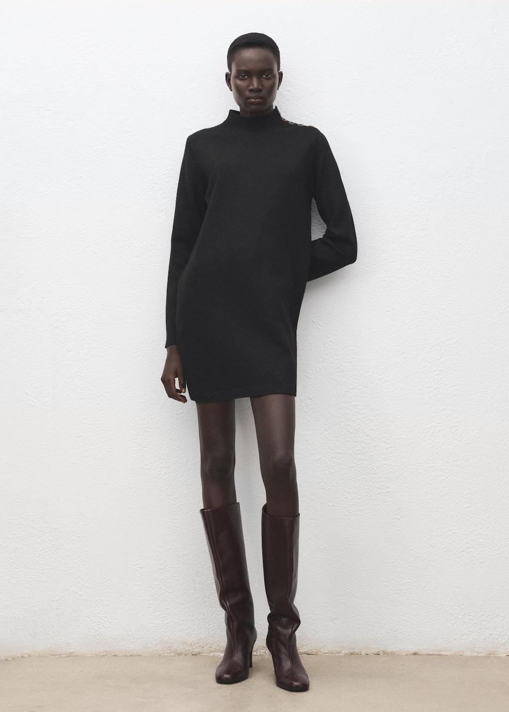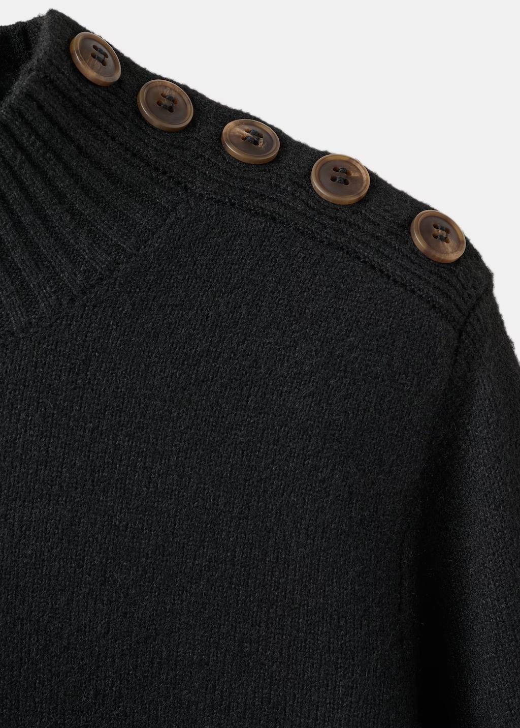 Tejido de punto. Diseño corto. Cuello perkins. Manga larga. Detalle de botones en el hombro