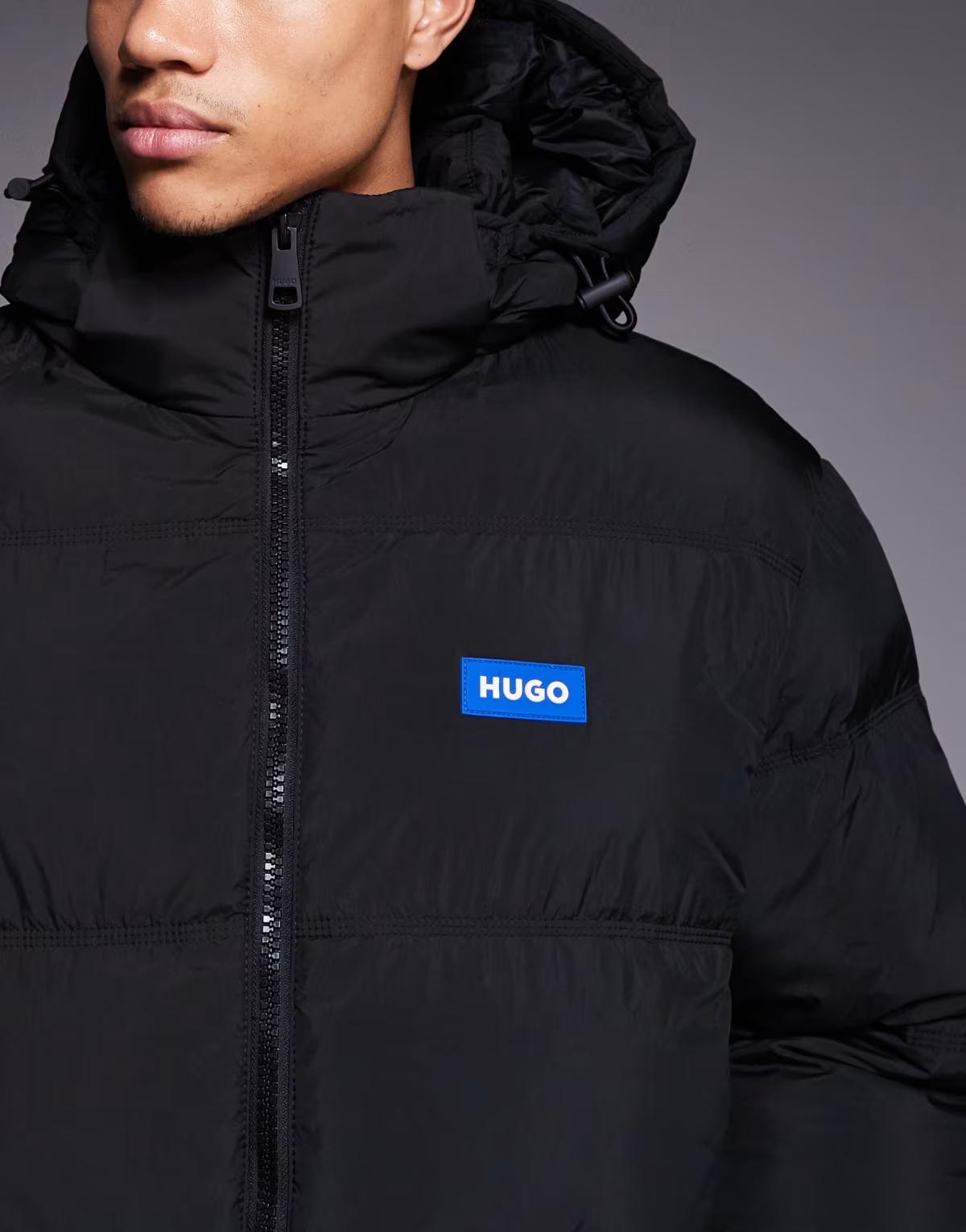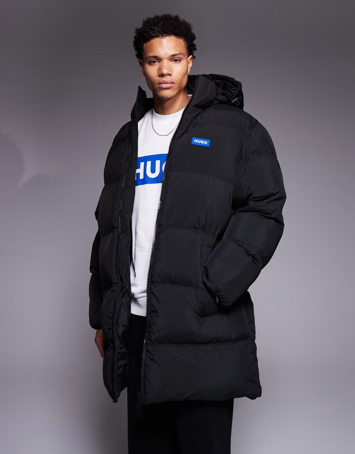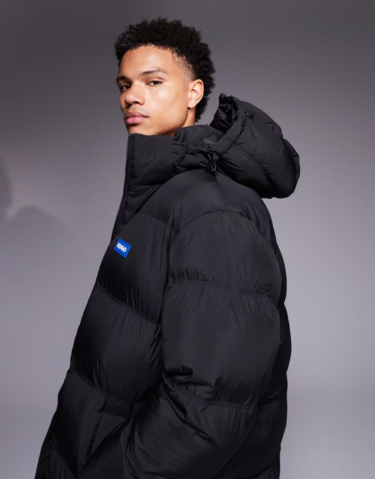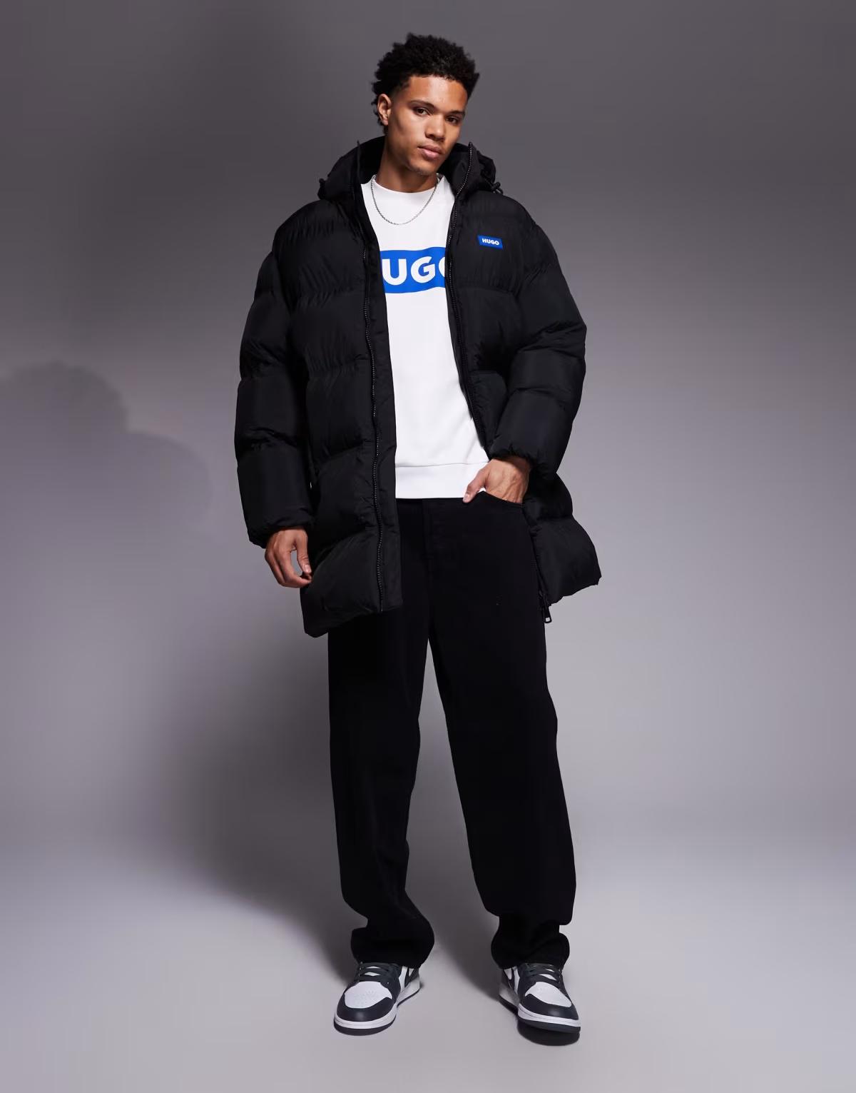 HUGO BLUE Bodi relaxed fit longline chunky puffer in black