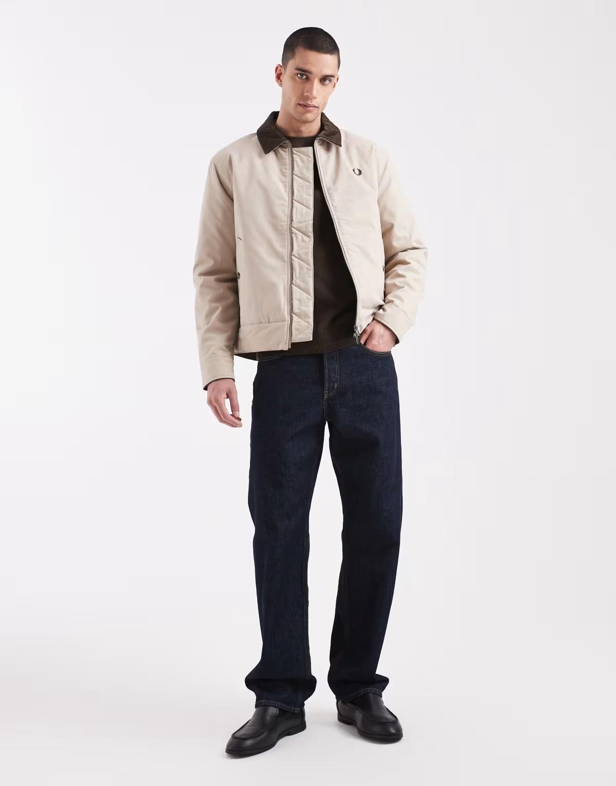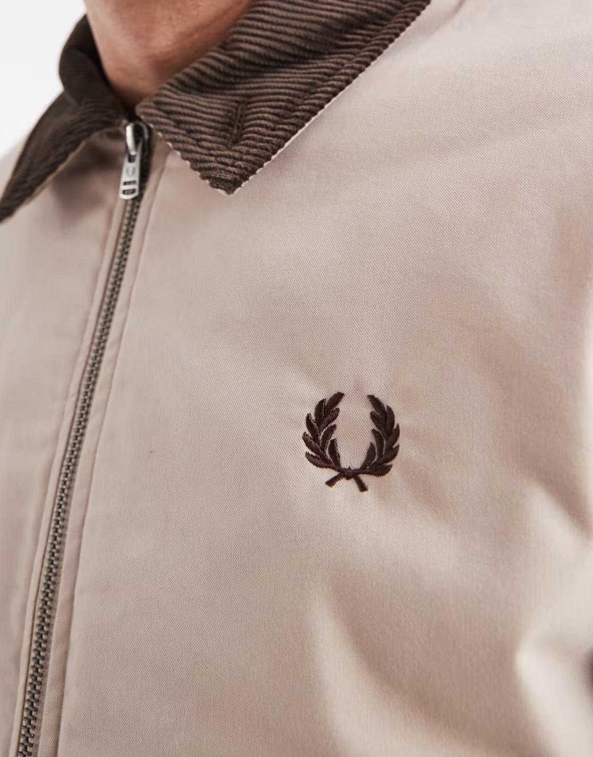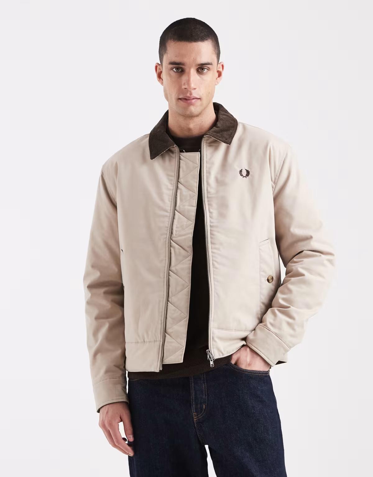 Fred Perry oversized jacket with cord contrast collar in ecru