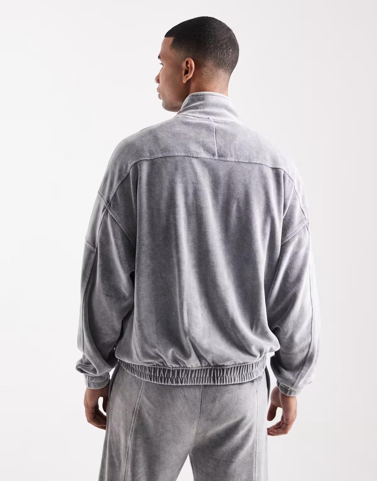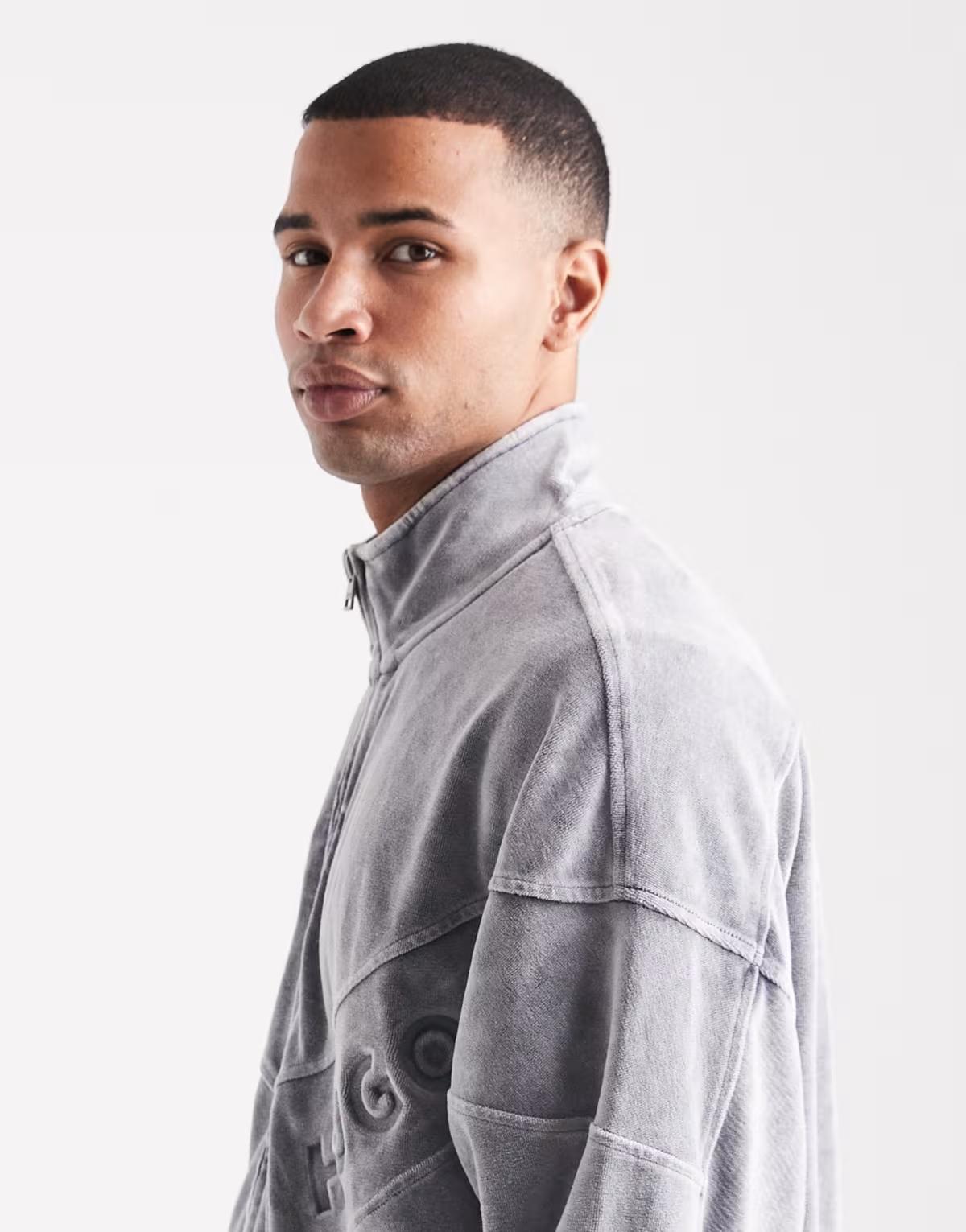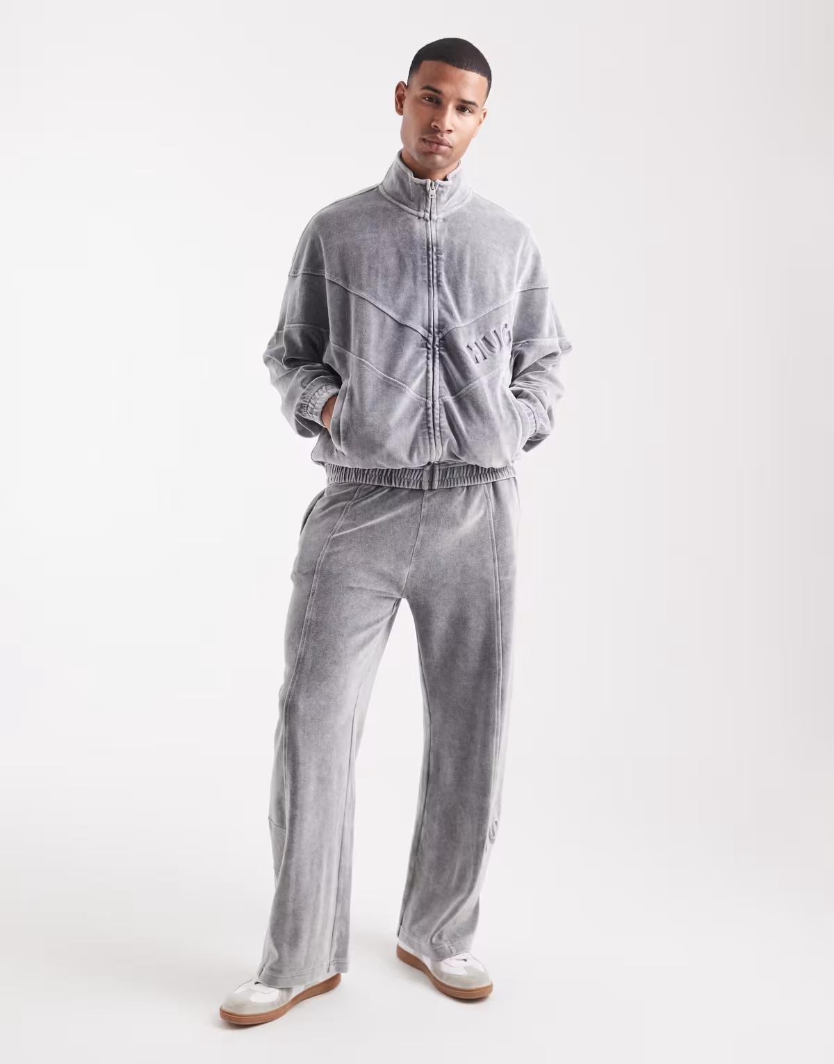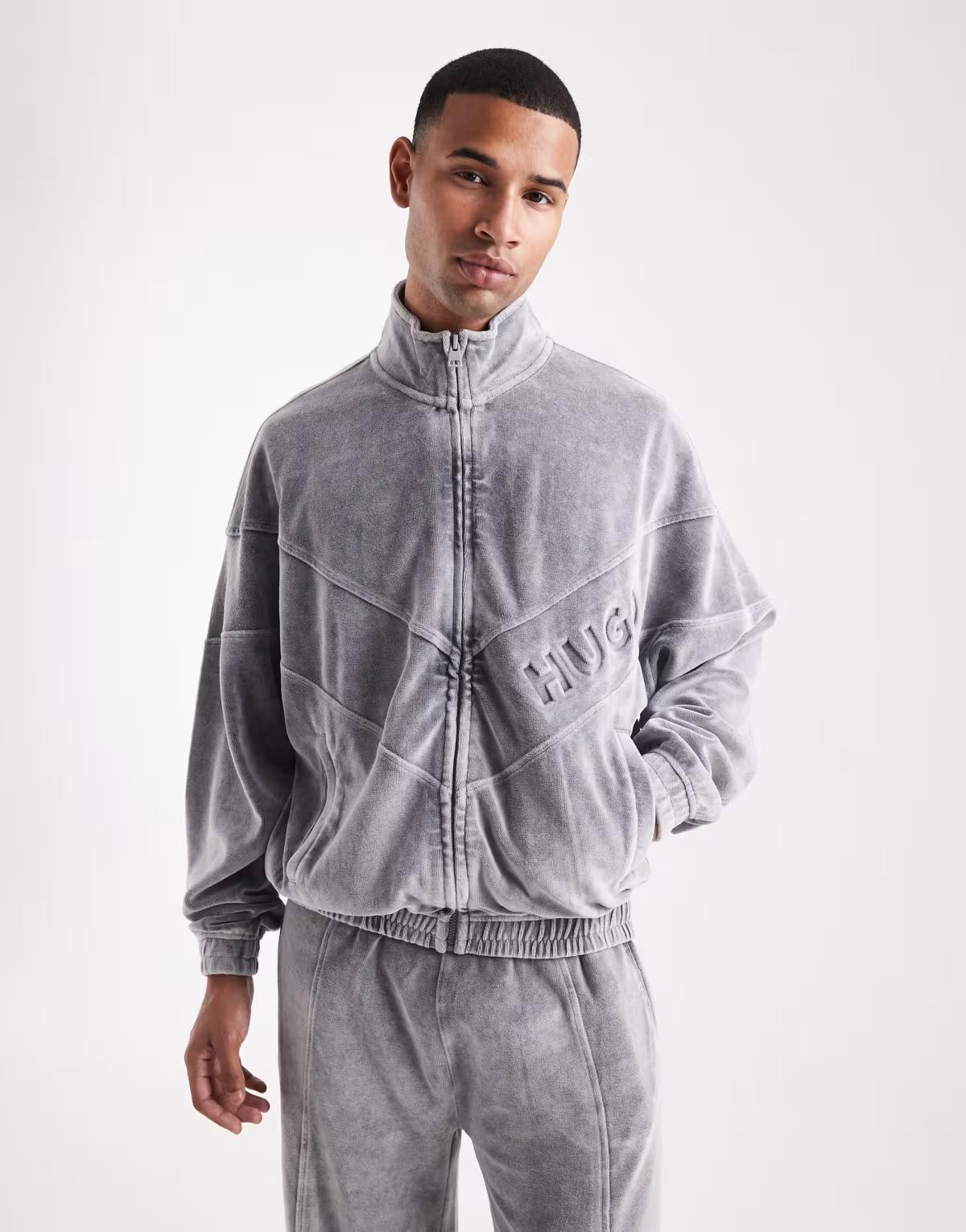 HUGO RED co-ord Delso logo acid wash oversized track jacket in charcoal