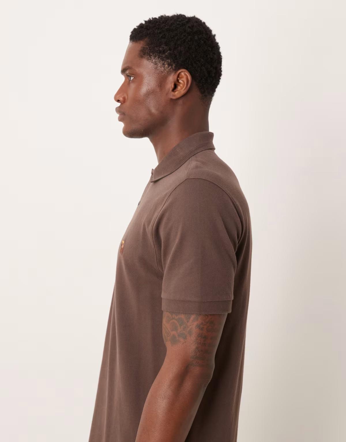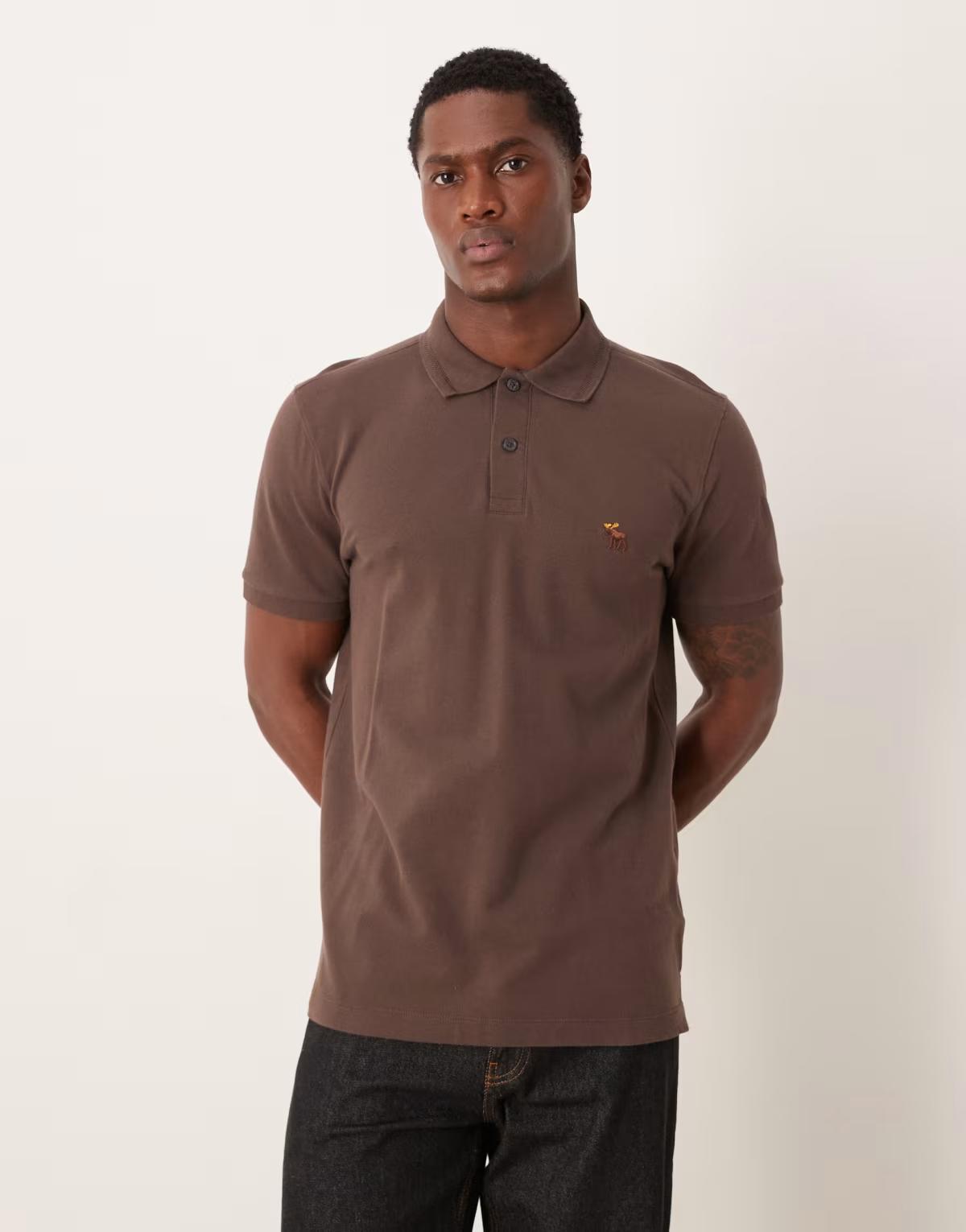 Abercrombie & Fitch short sleeve chest logo polo t-shirt in brown