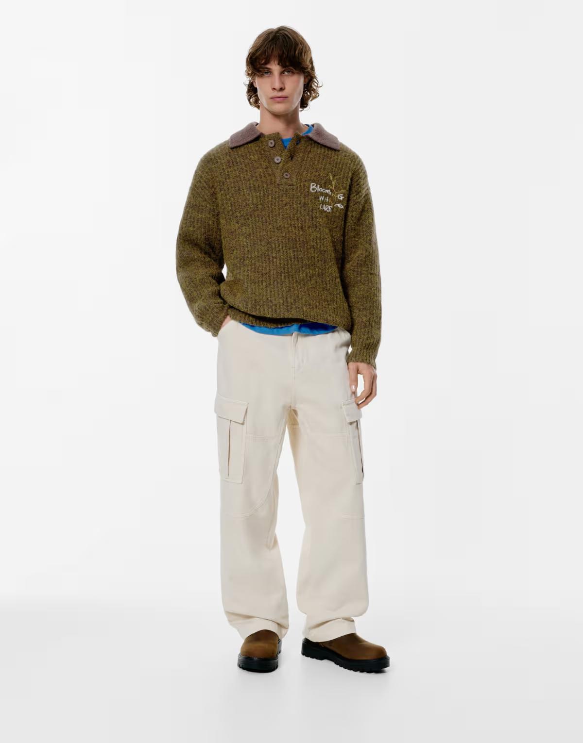 Main: 81% Polyester, 9% Polyamide, 5% Wool, 3% Acrylic, 2% Elastane.Champions of the casual capsule wardrobe, make Pull&Bear your new must-scroll brand. With a focus on laid-back Californian style, the brand mixes grunge, sports and streetwear references to build its collections. Expect sweatshirts, T-shirts and jeans in our Pull&Bear at ASOS edit, alongside a line of accessories, shirts and jackets. Ready-to-wear trends delivered straight to your wardrobe? Enough said.