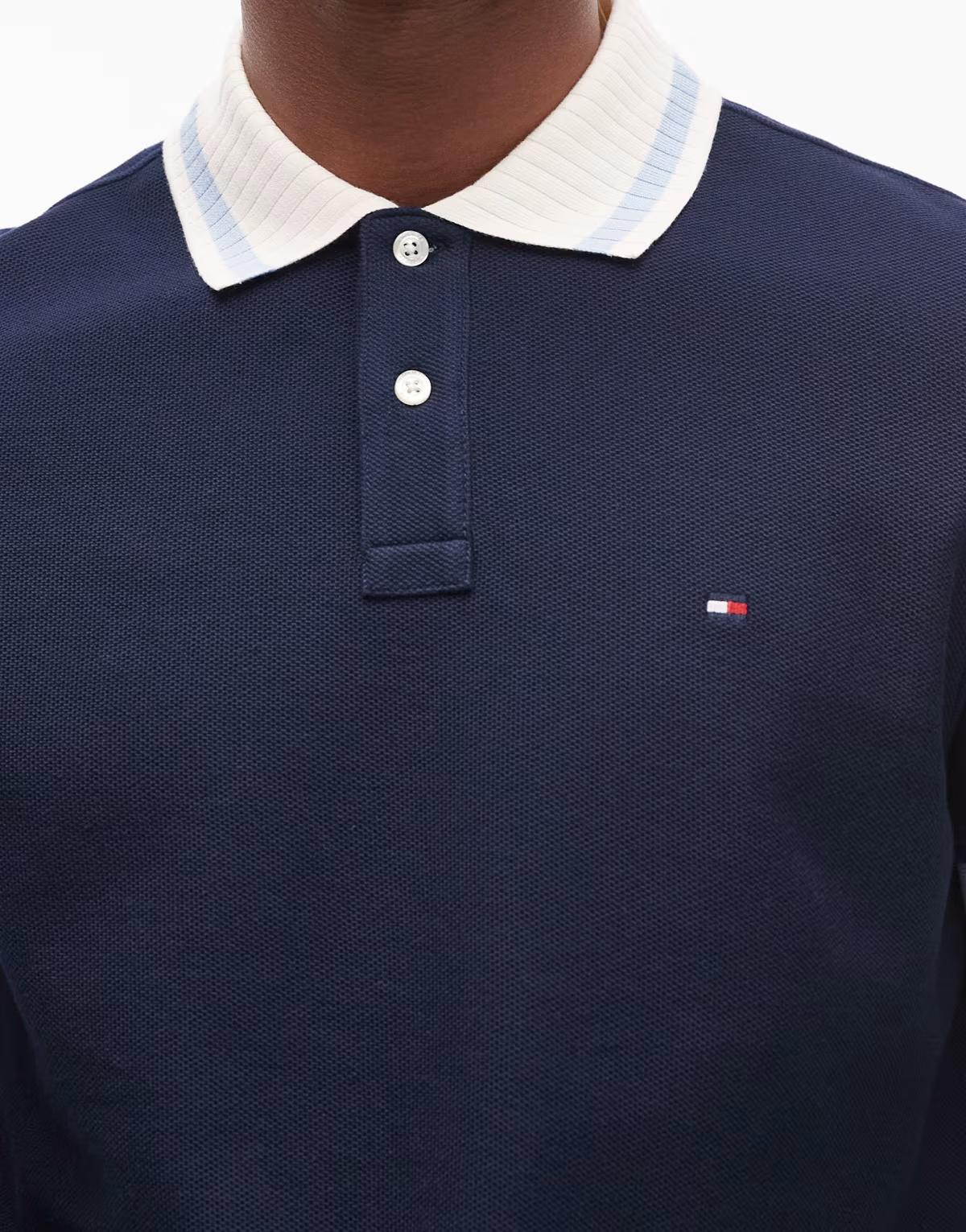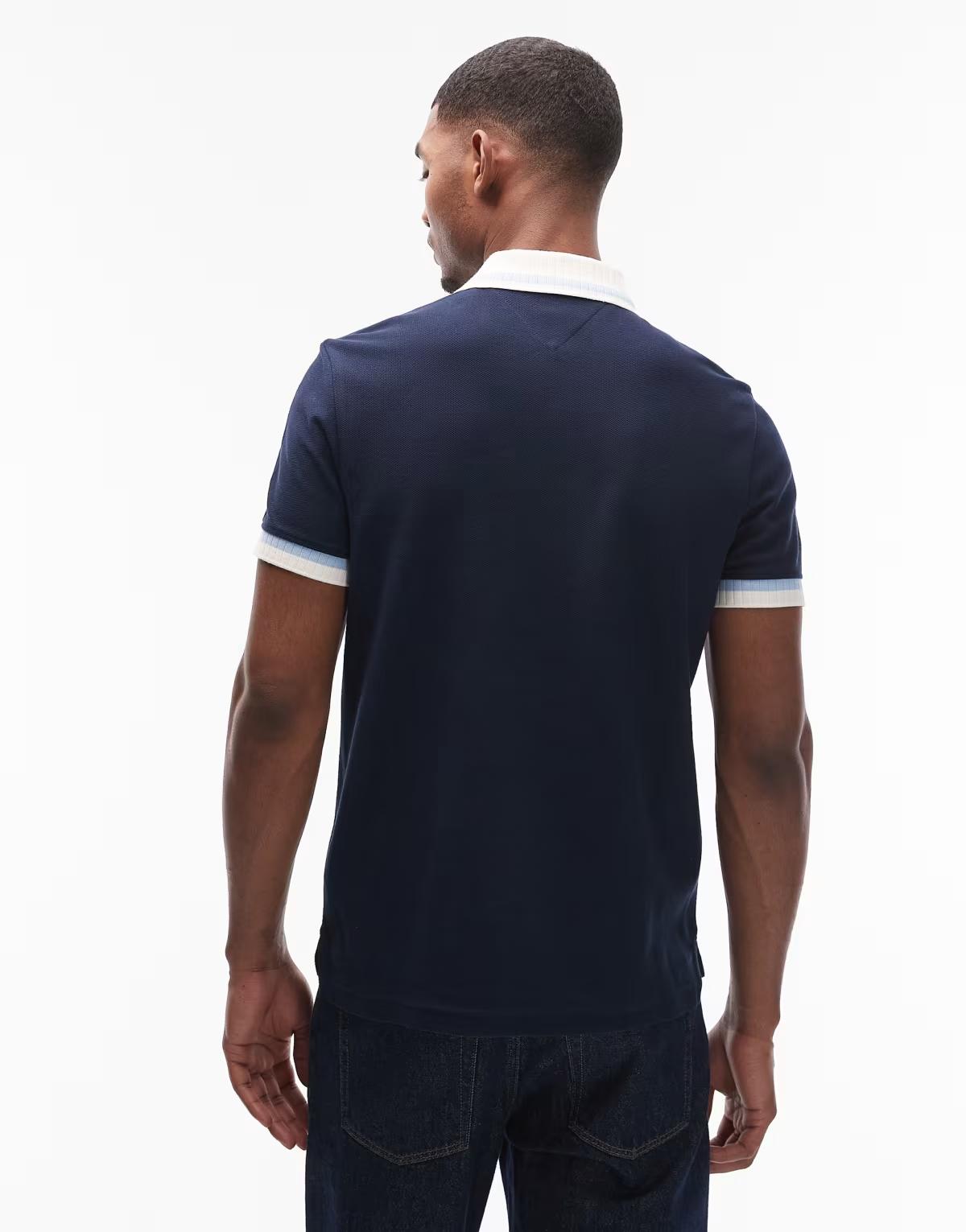 Tommy Hilfiger contrast collar regular polo shirt in navy and white