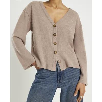 Brown Long Sleeve Cosy Button up Cardigan