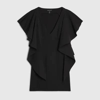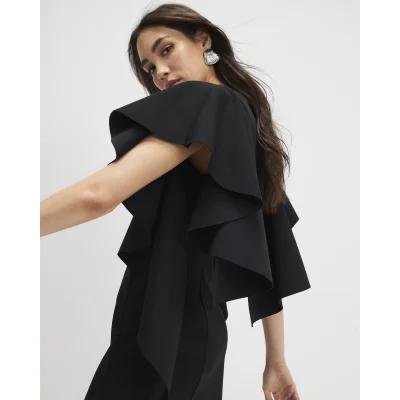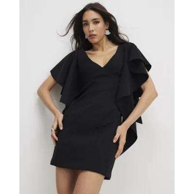Black Sleeveless Ruffle Shoulder Mini Dress