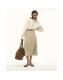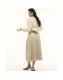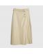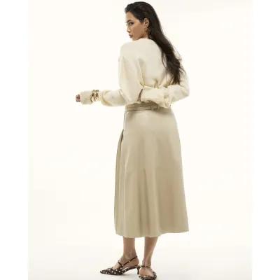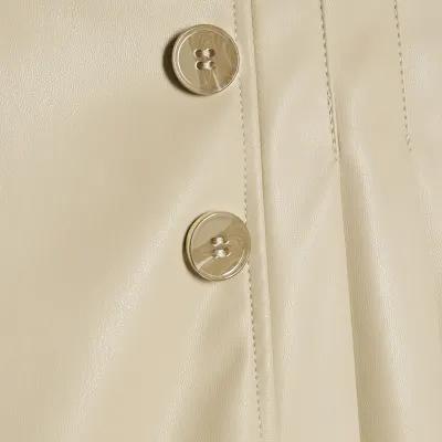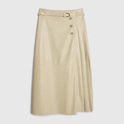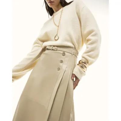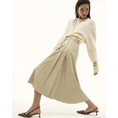 Cream Faux Leather Belted Pleated Midi Skirt