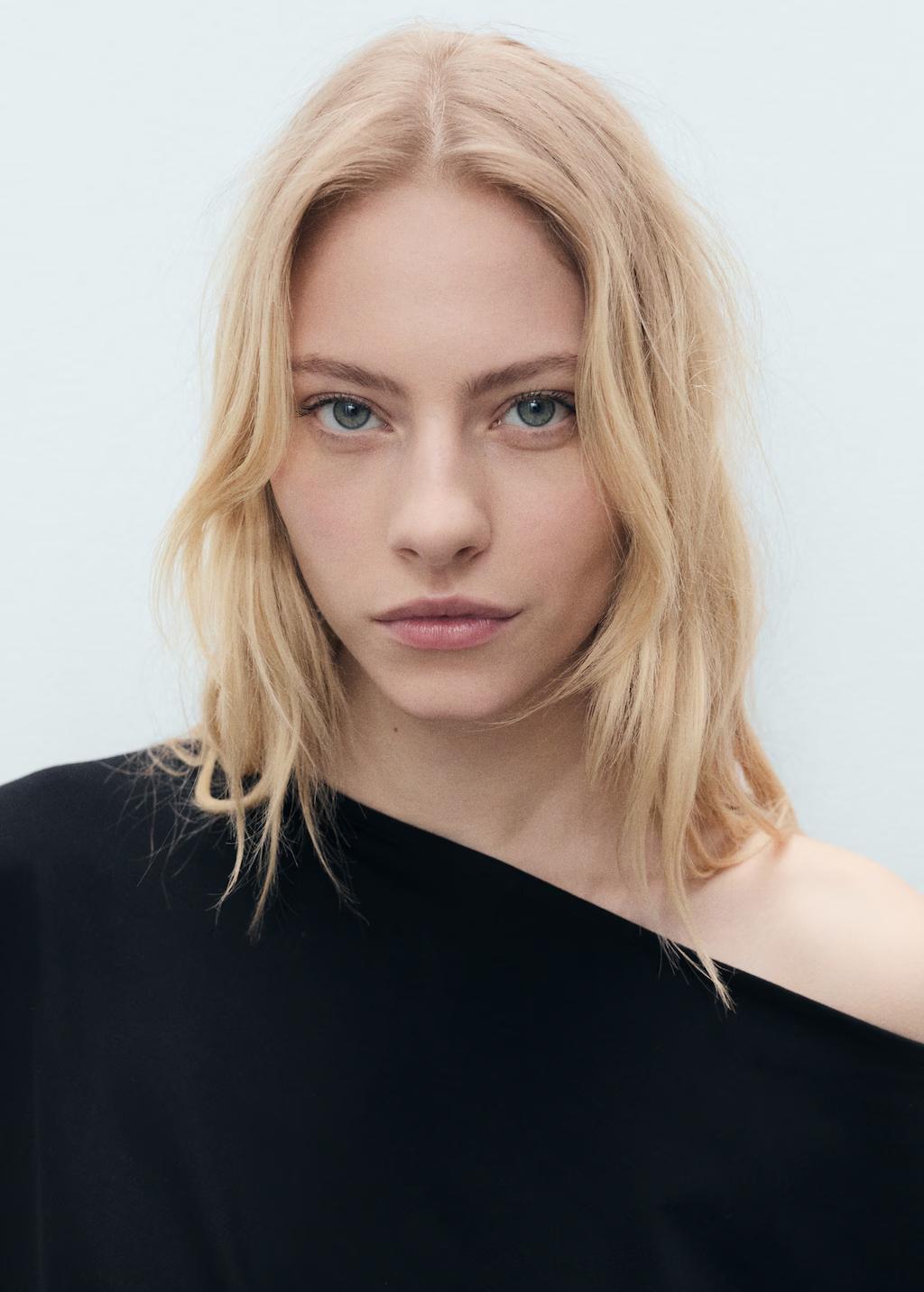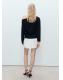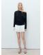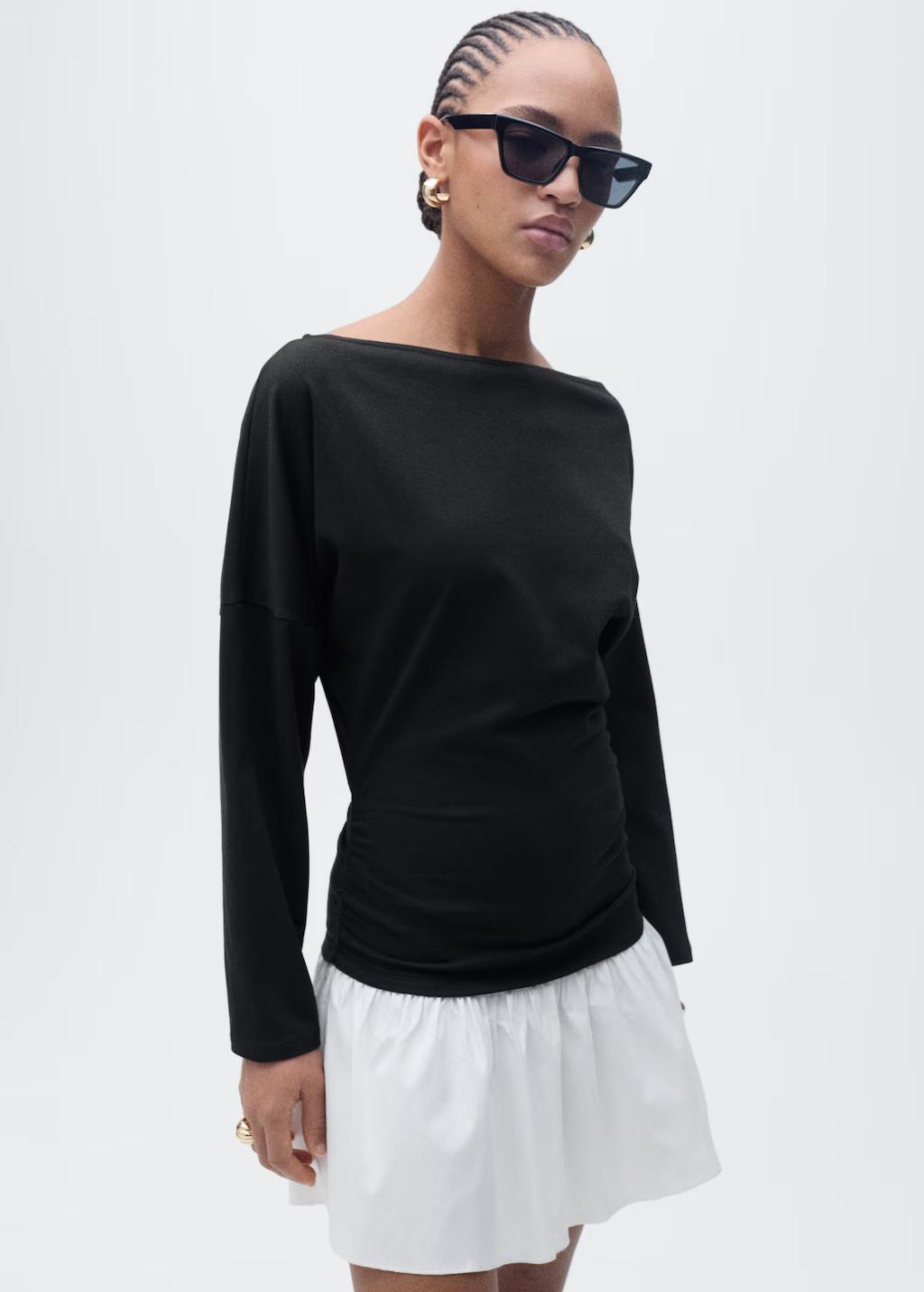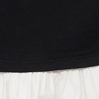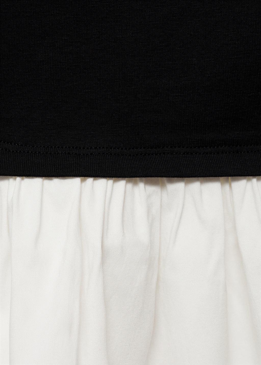 Tejido de algodón. Diseño corto. Diseño combinado. Diseño entallado. Cuello asimétrico. Manga larga. Cintura drapeada. Bajo con volante