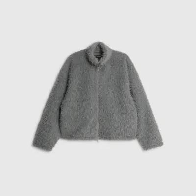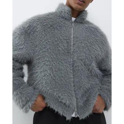 Grey Oversized Fit Fuzzy Zip Sweatshirt