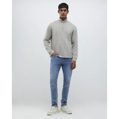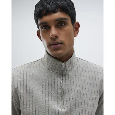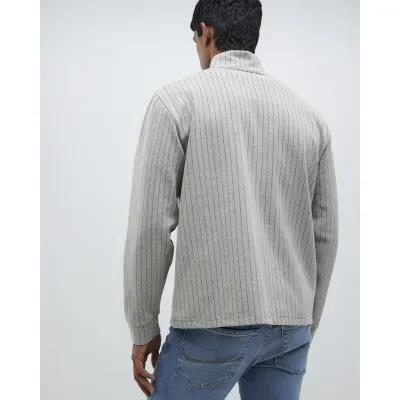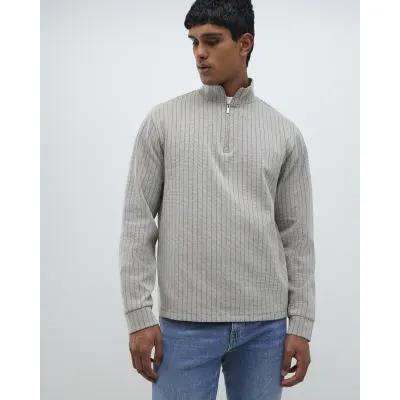 Beige Regular Fit Stripe Half Zip Sweatshirt