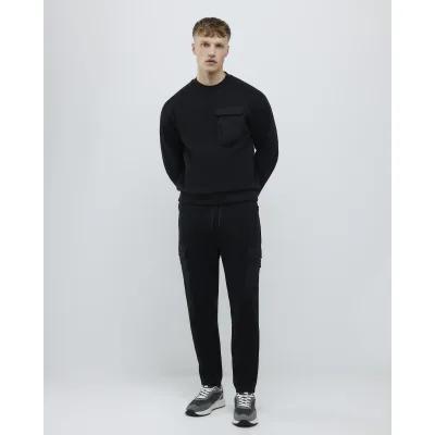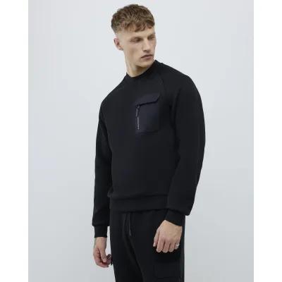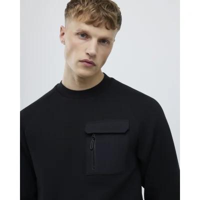 Black Slim Fit Nylon Hybrid Sweatshirt