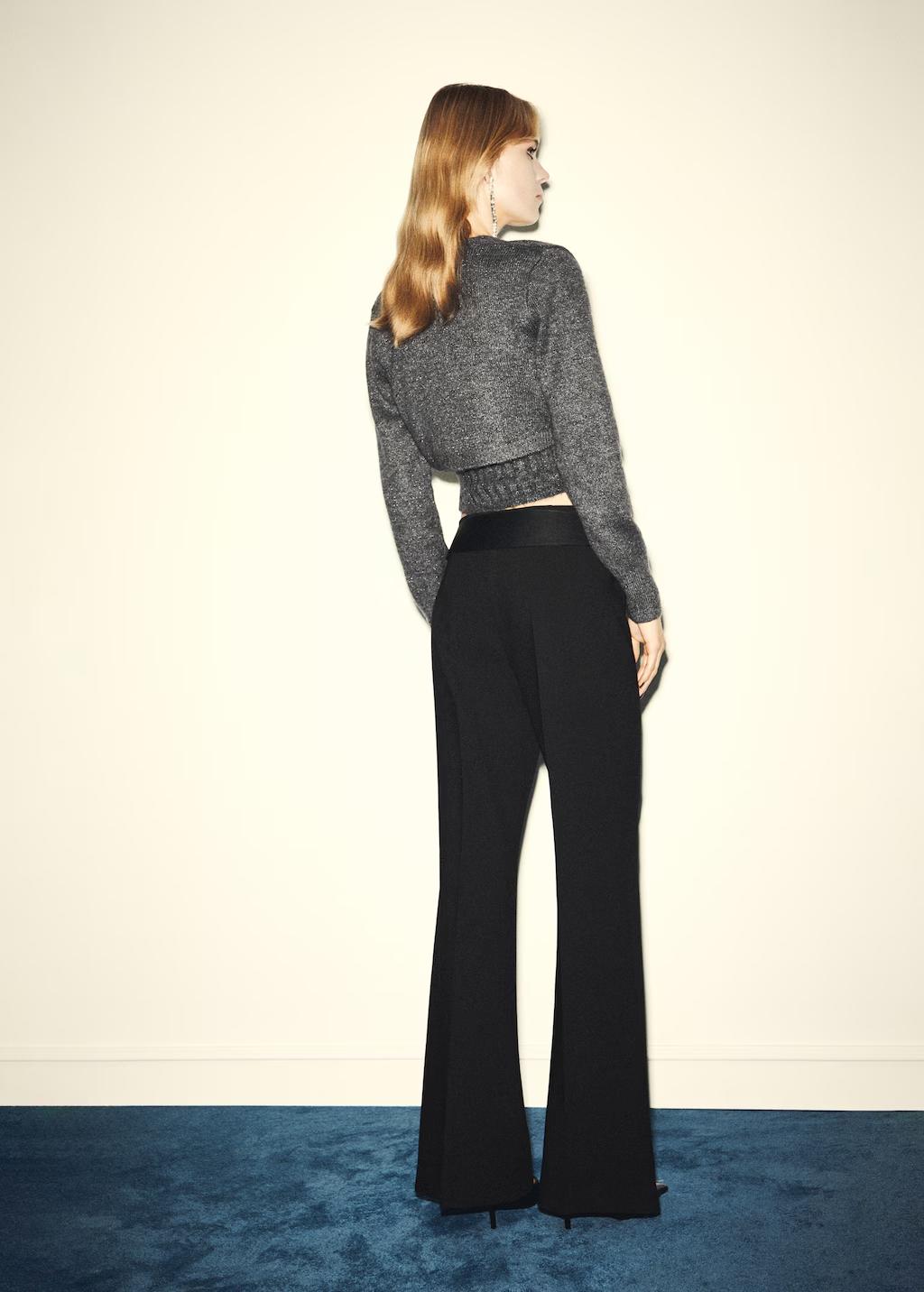Confeccionado en tejido de punto con lúrex, este diseño crop y entallado presenta cuello pico y manga larga. Sin cierre, ofrece un estilo moderno y versátil