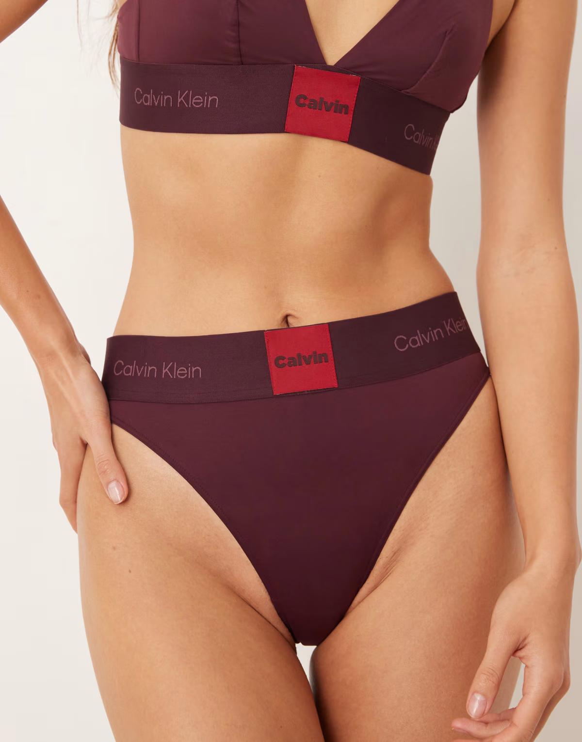 Calvin Klein Modern Logo patch bikini brief in burgundy