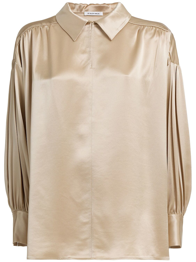 Leonora绸缎衬衫 - 米黄色 - 女士 - V领.