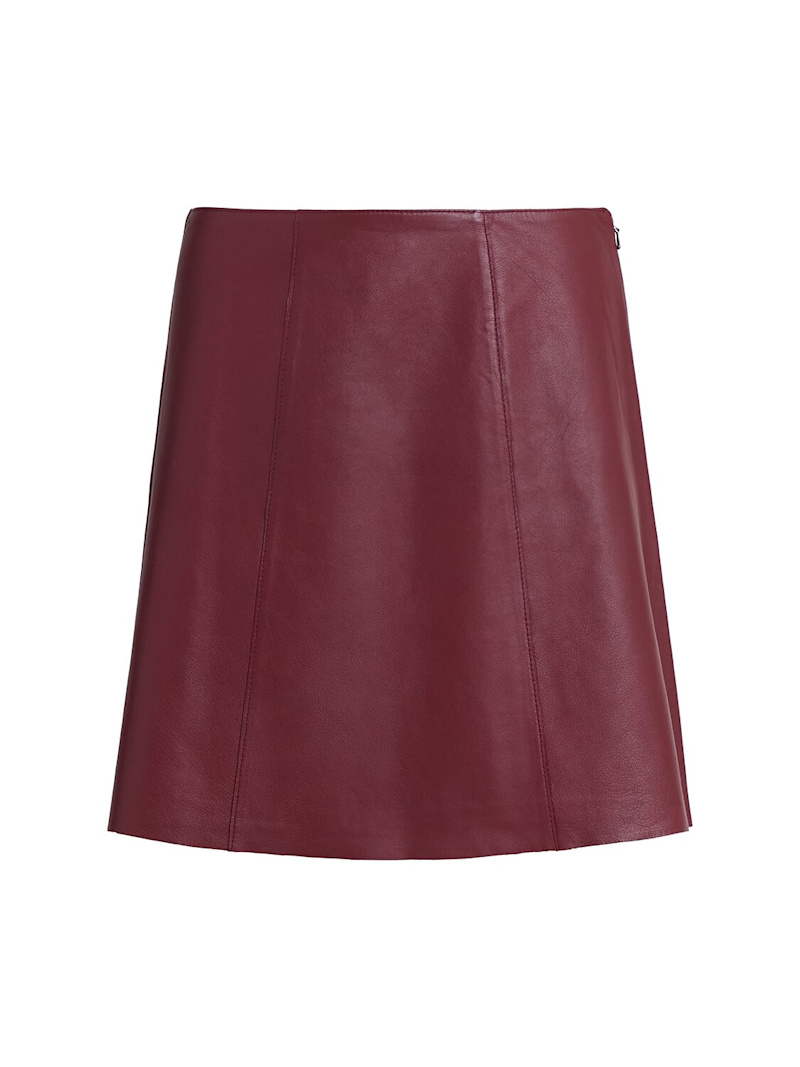 Namia皮革迷你短裙 - 酒红色 - 女士 - 侧边拉链开合