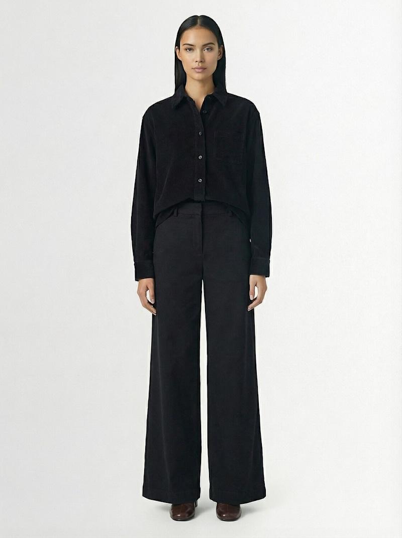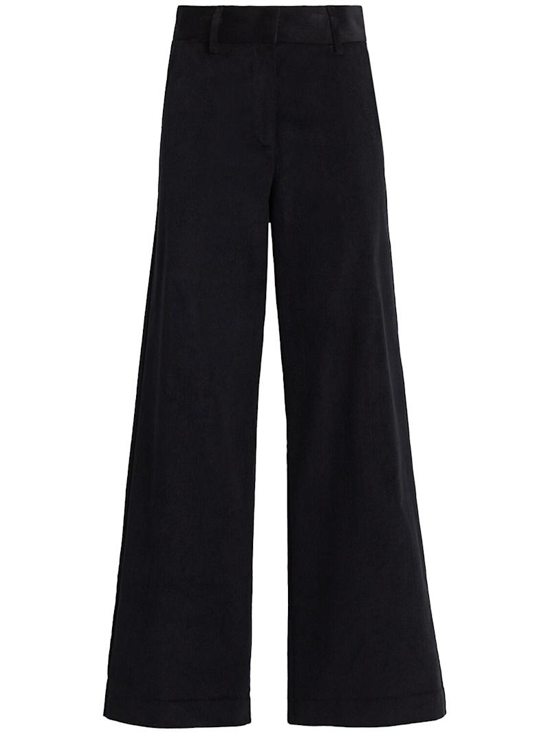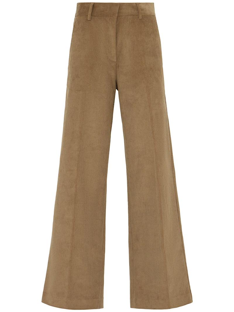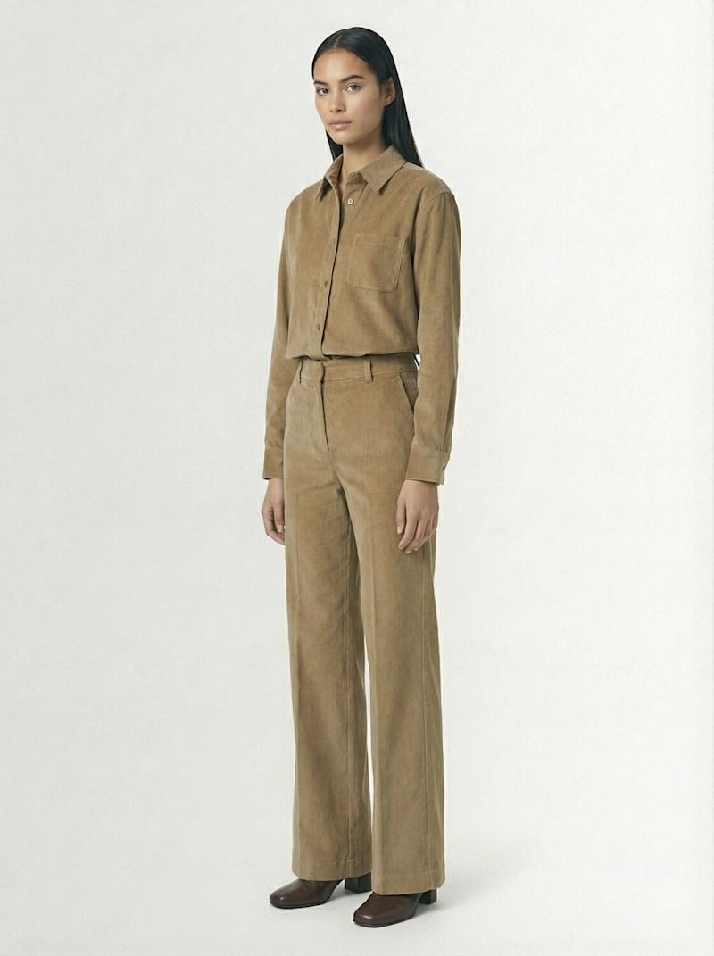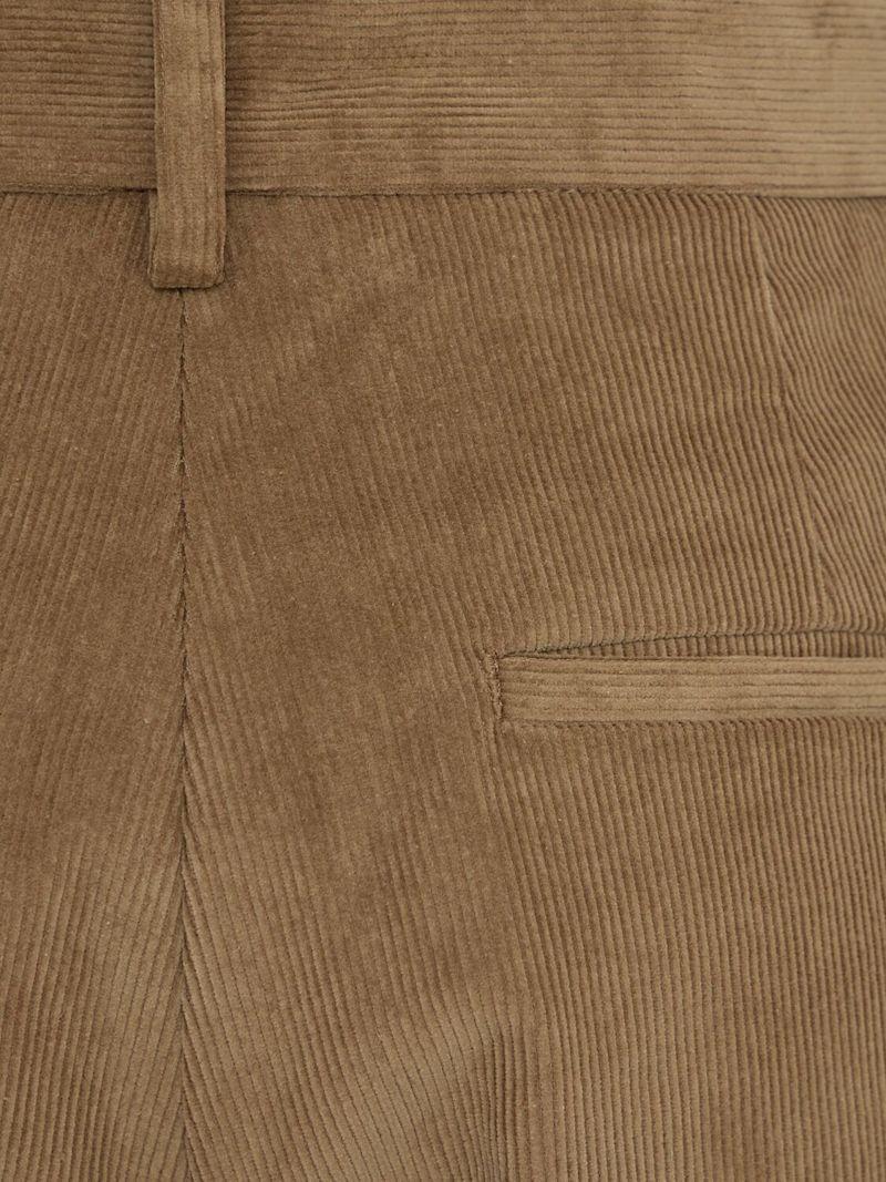 Tea棉质灯芯绒裤子 - 卡其色 - 女士 - Annagreta - 正面纽扣和隐藏式拉链开合.